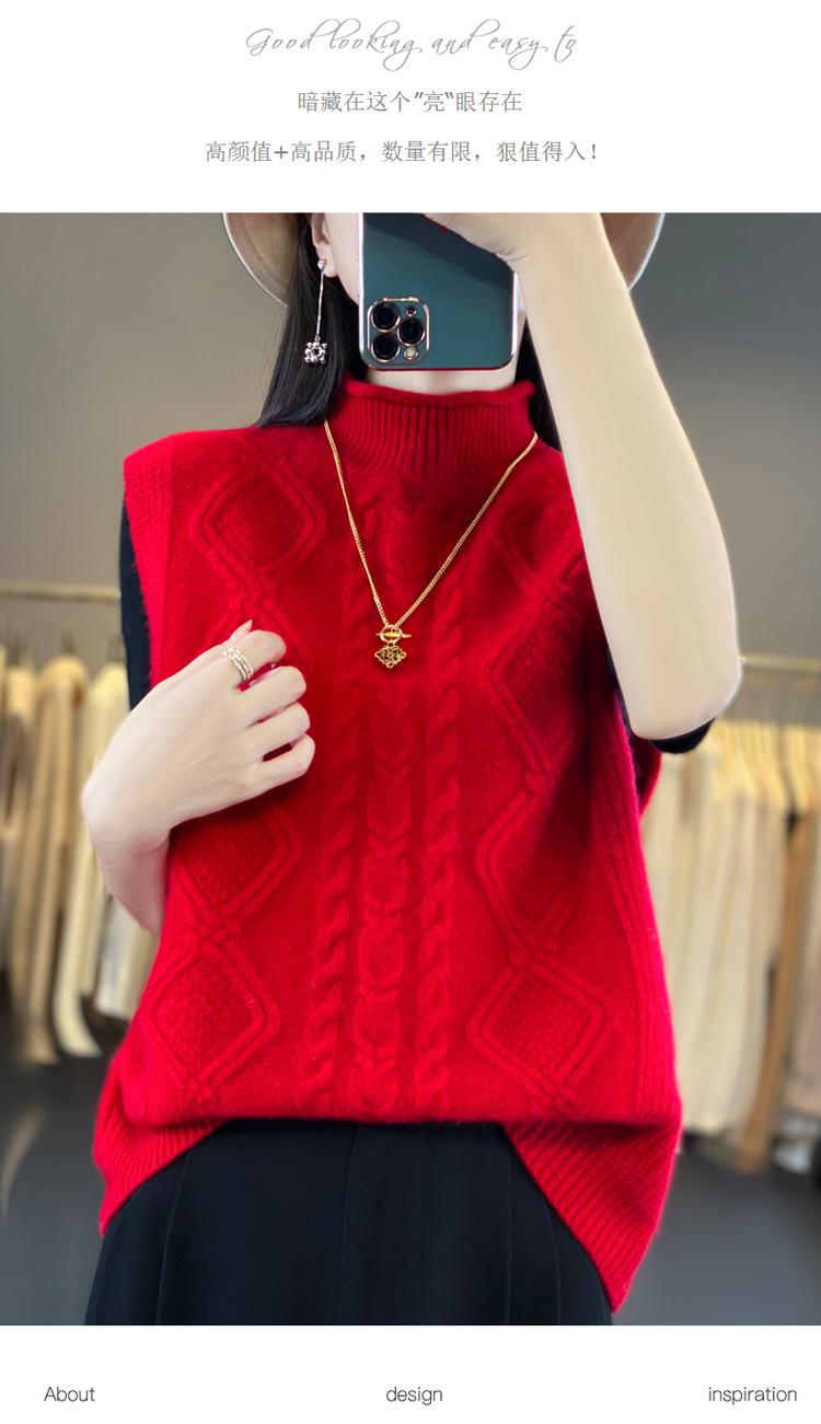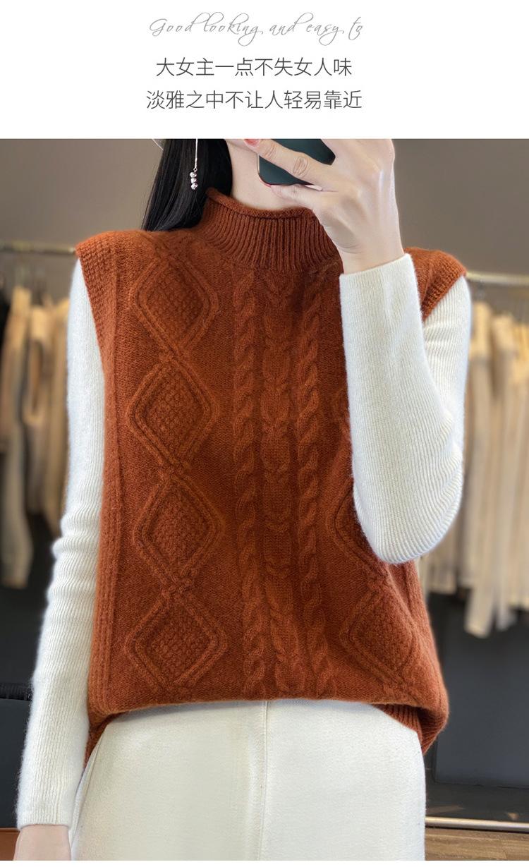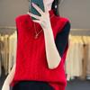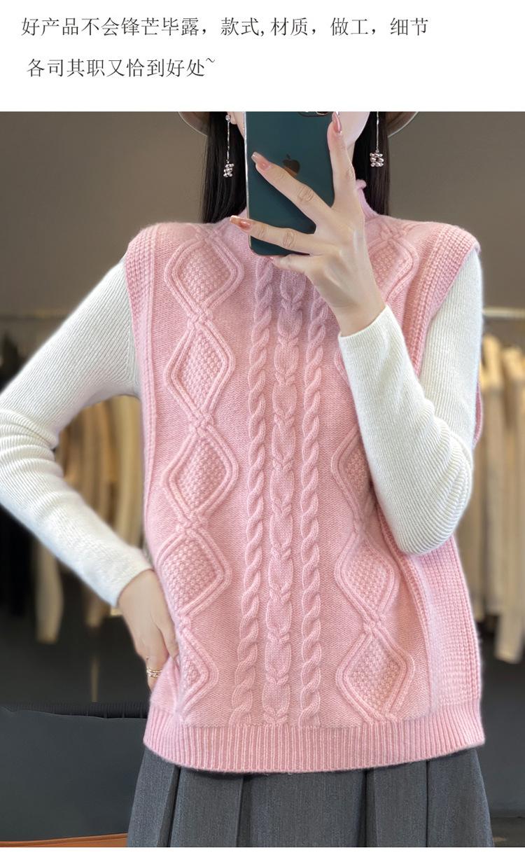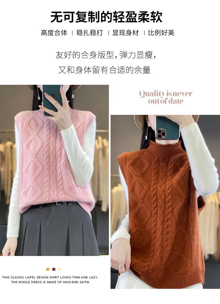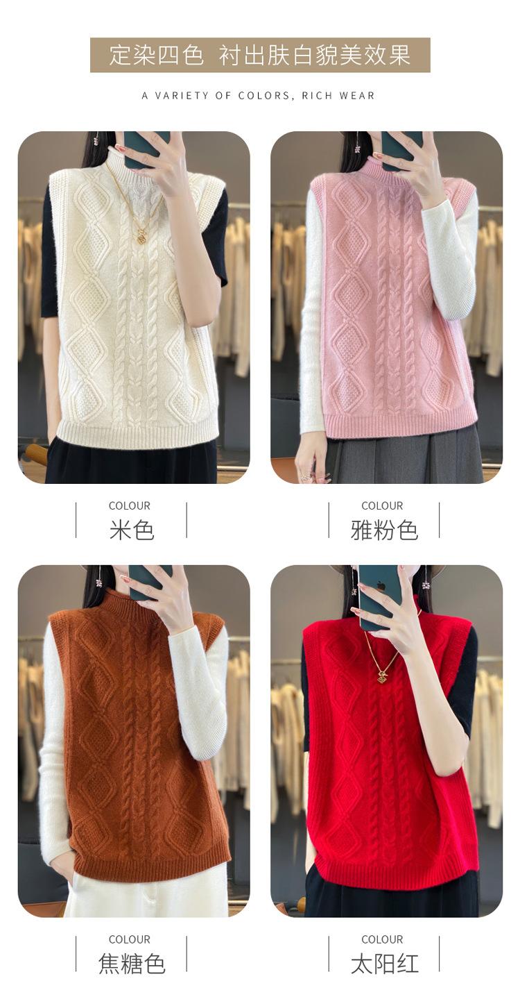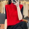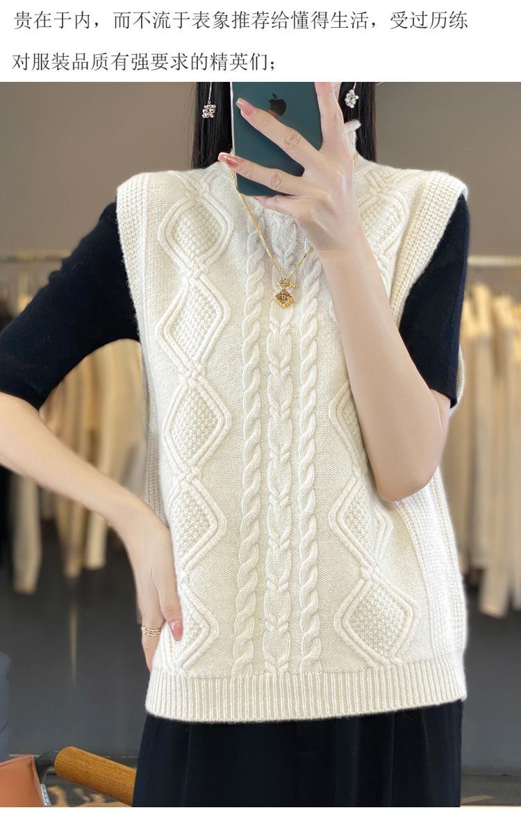 Otoño e Invierno 2024 Nuevo Chaleco Tejido de Lana Pura Pesado Jacquard Diamante Cuello Semialto Redondo Apilado Sin Mangas