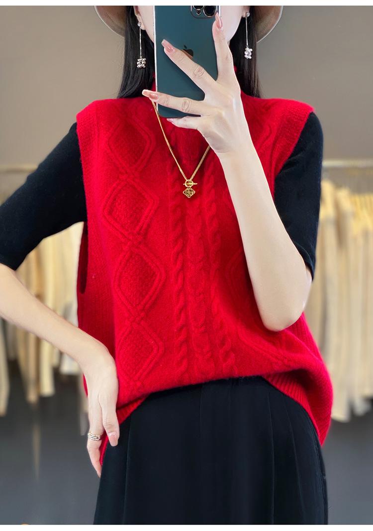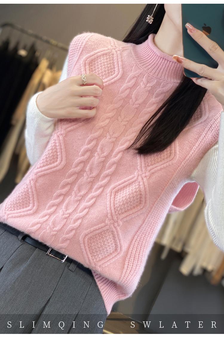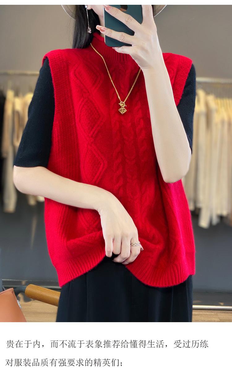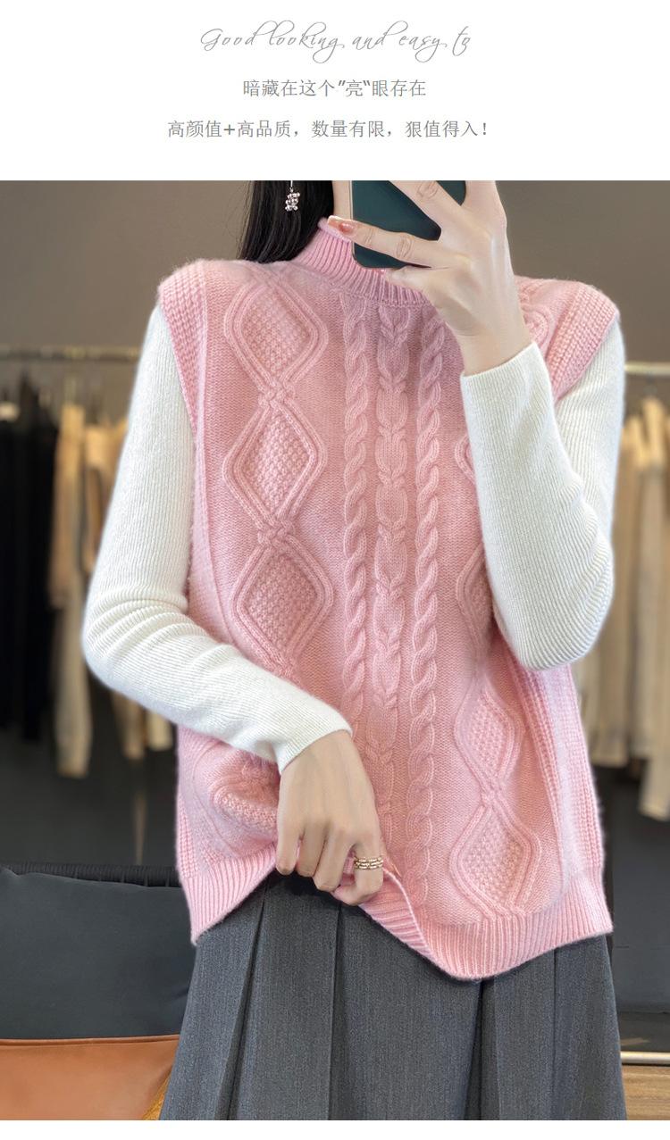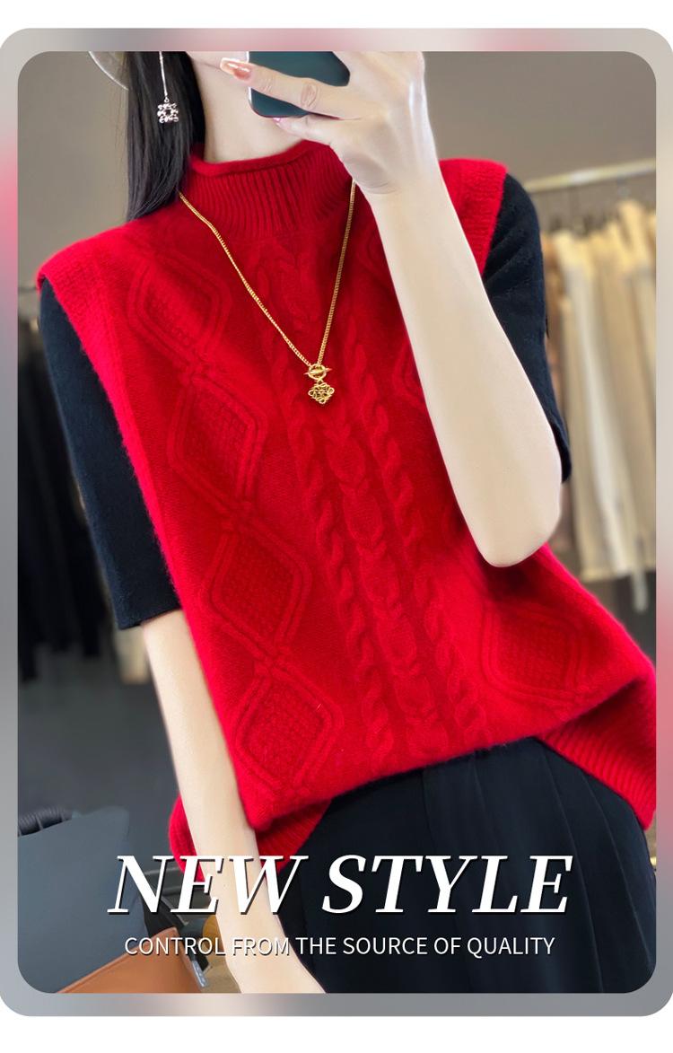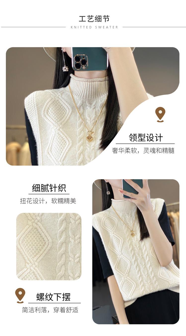 Otoño e Invierno 2024 Nuevo Chaleco Tejido de Lana Pura Pesado Jacquard Diamante Cuello Semialto Redondo Apilado Sin Mangas
