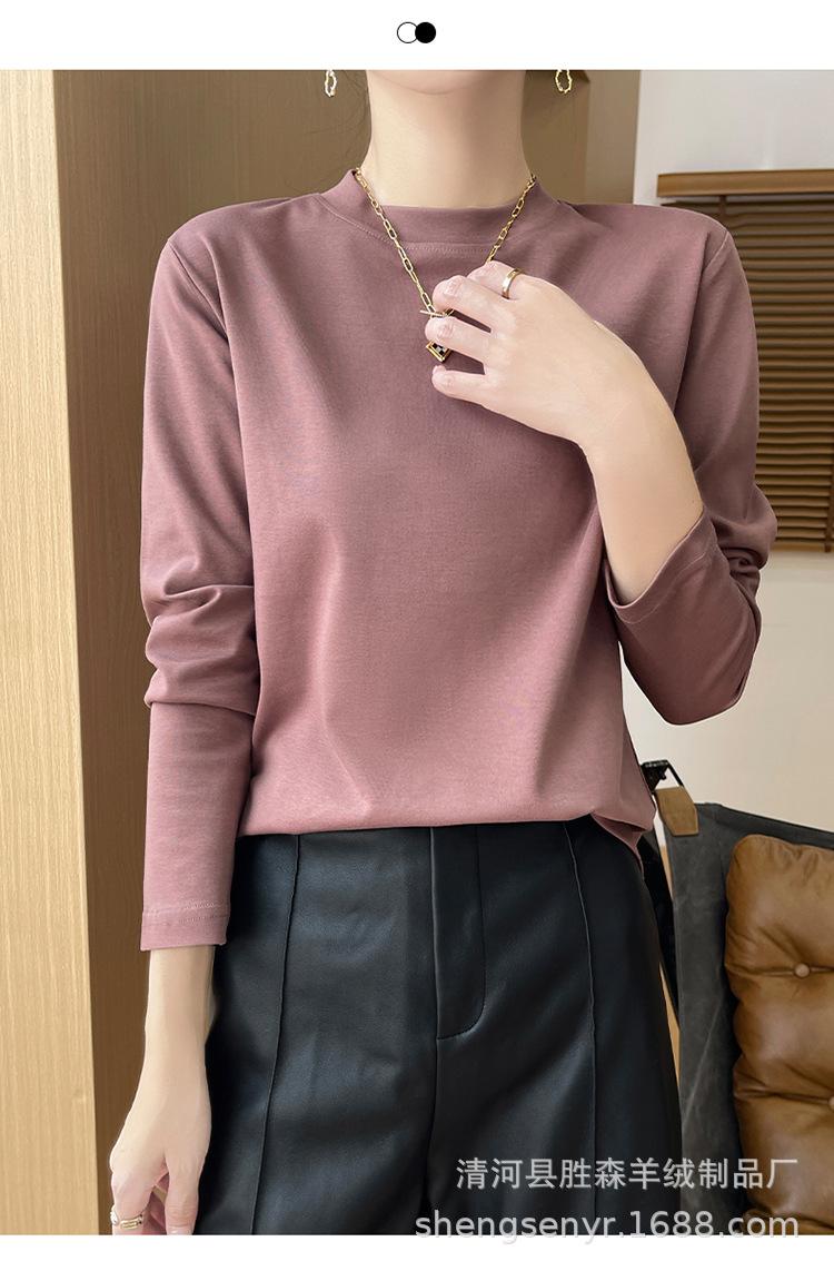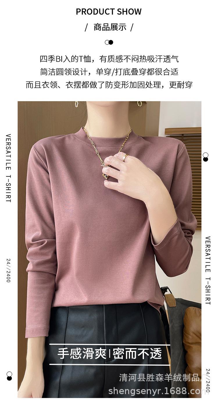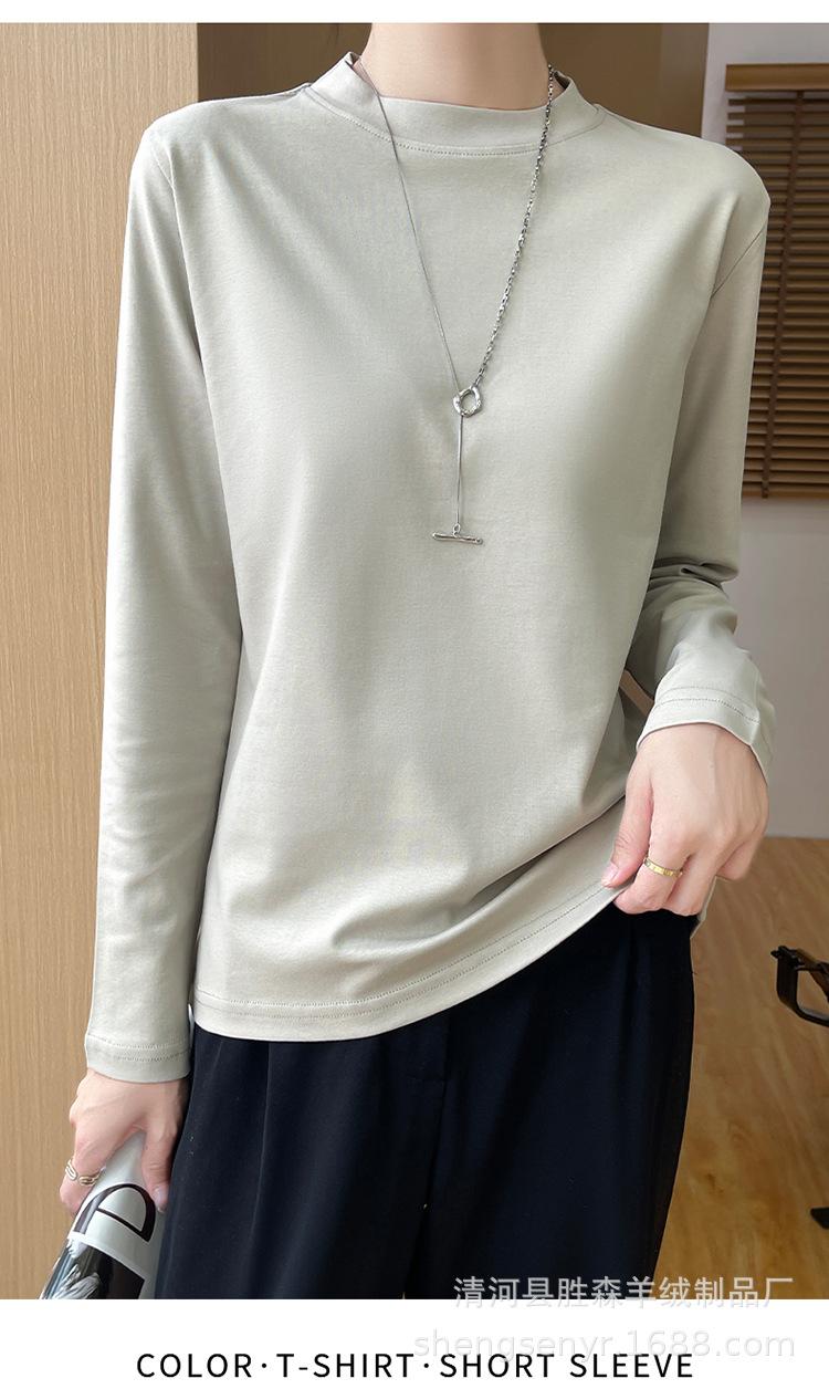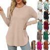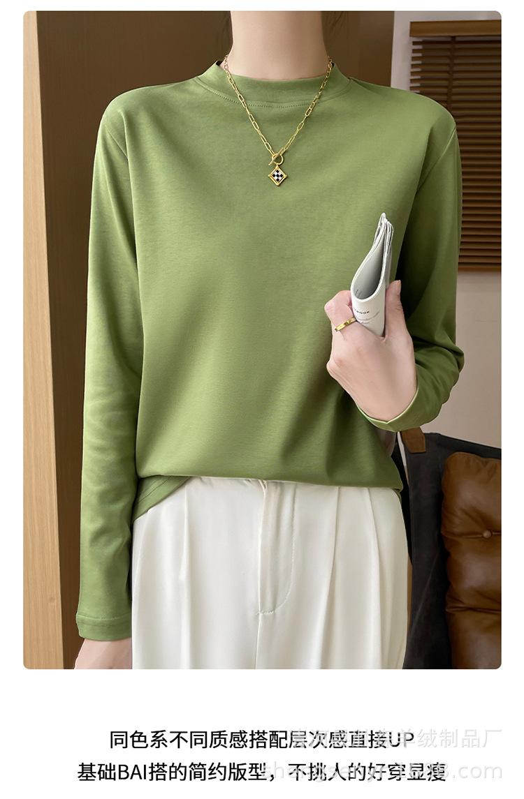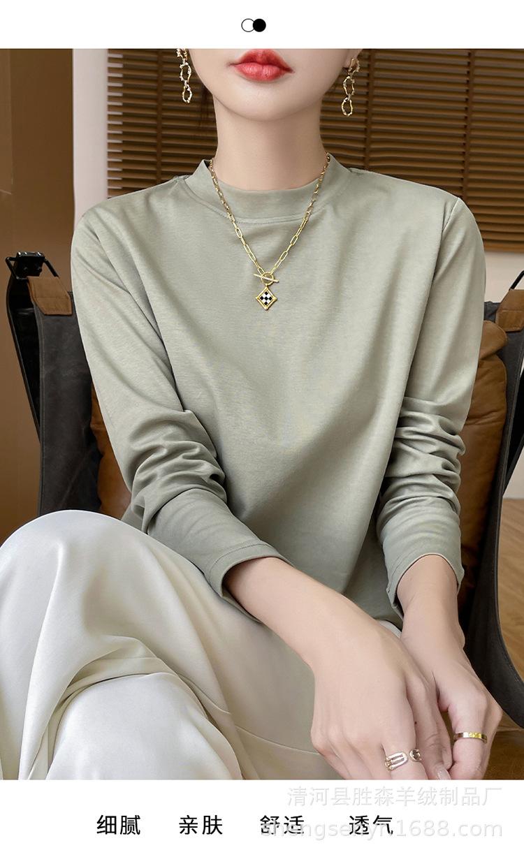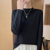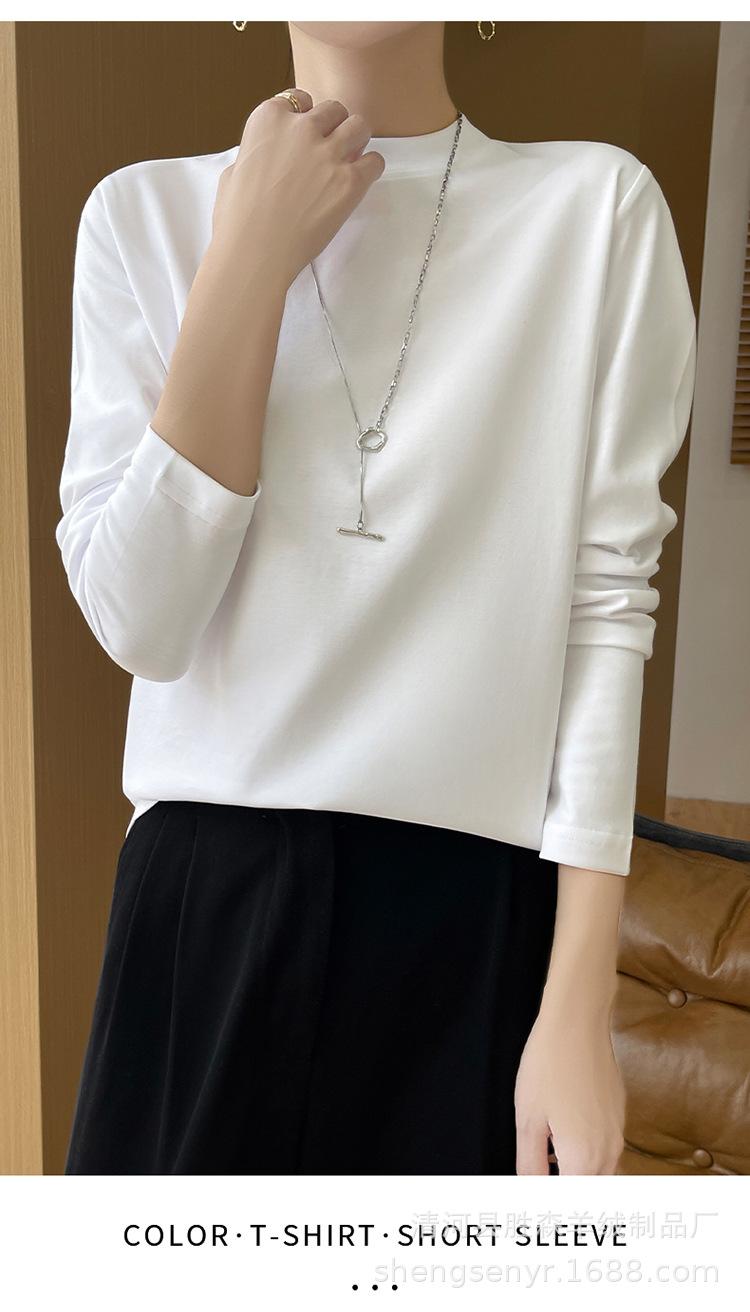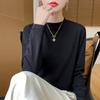 2024 Verano Nuevo Algodón Cuello Redondo Manga Larga Camiseta de Mujer Suelta Combinable Color Sólido Elegante Camiseta Top Base