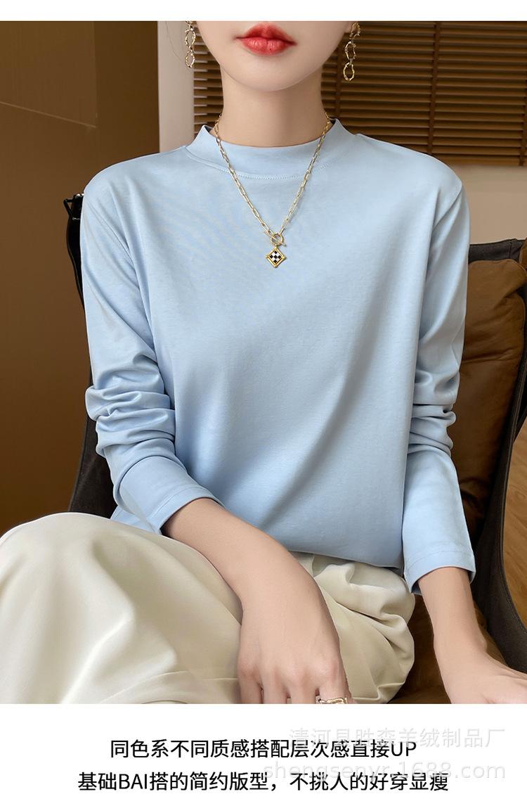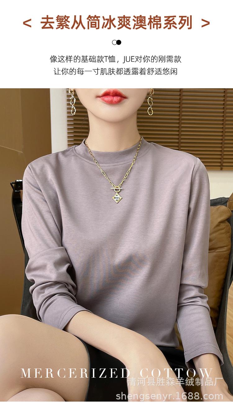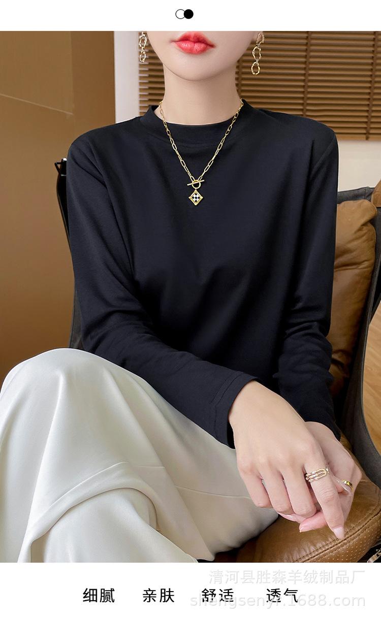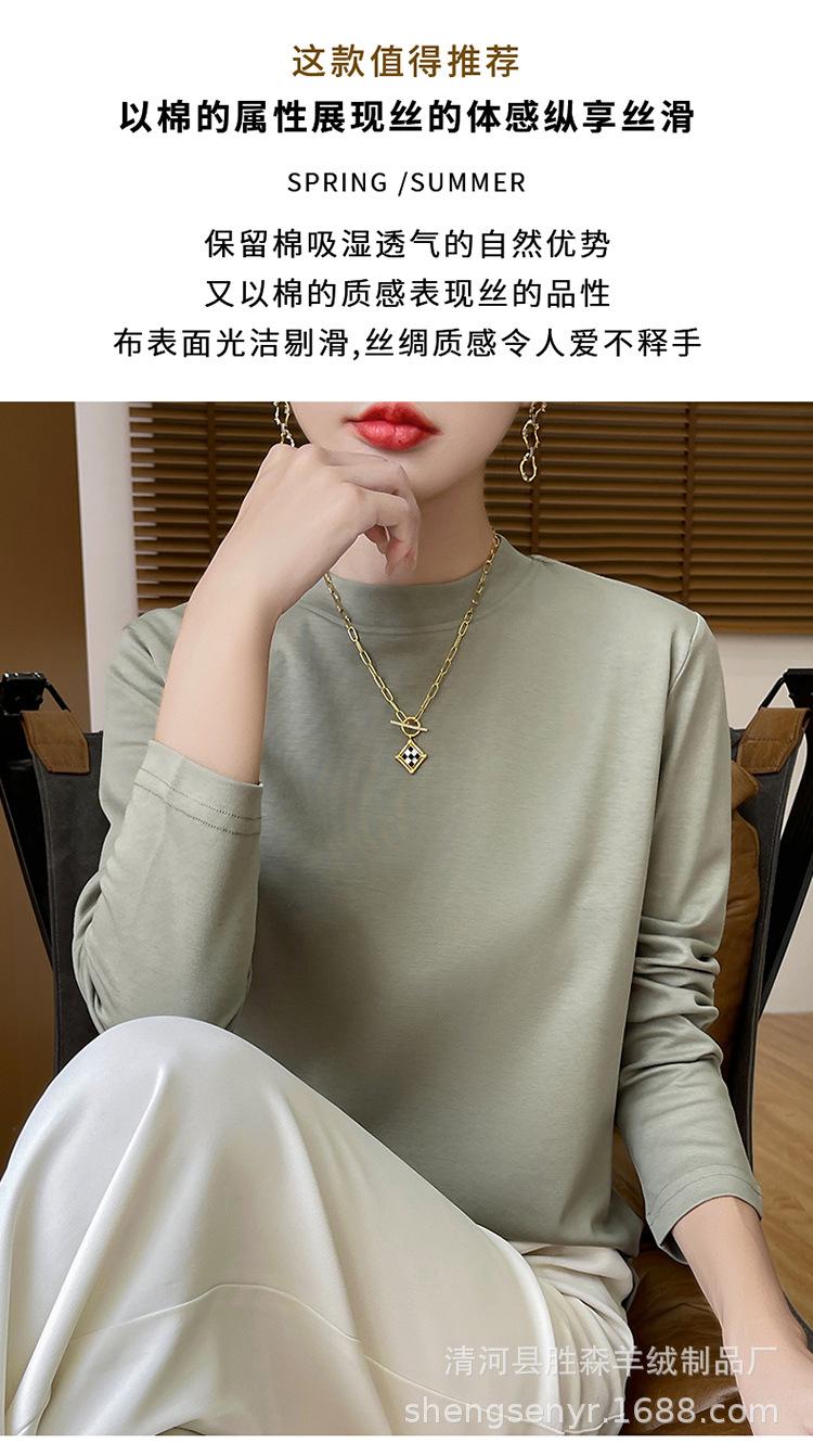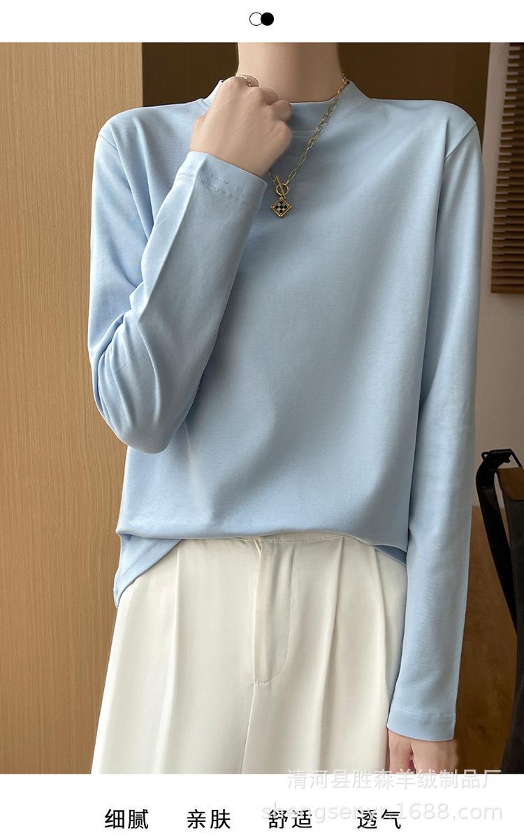 2024 Verano Nuevo Algodón Cuello Redondo Manga Larga Camiseta de Mujer Suelta Combinable Color Sólido Elegante Camiseta Top Base