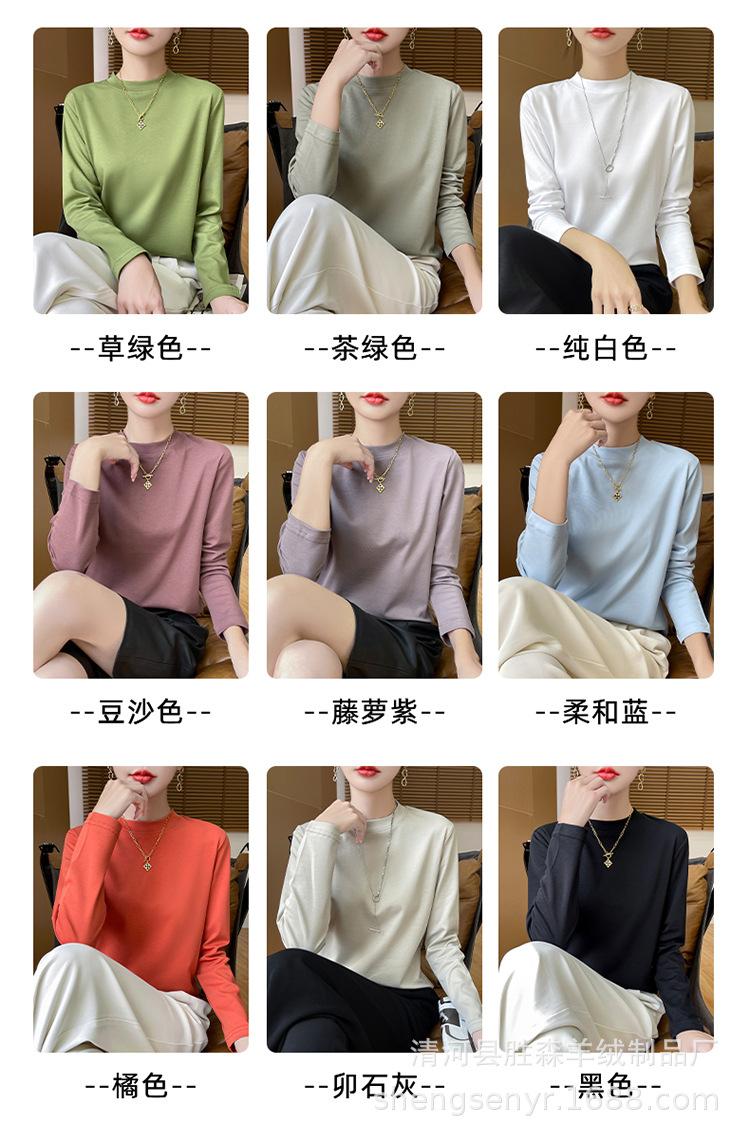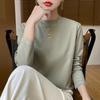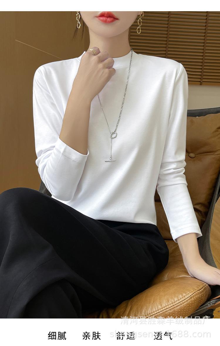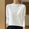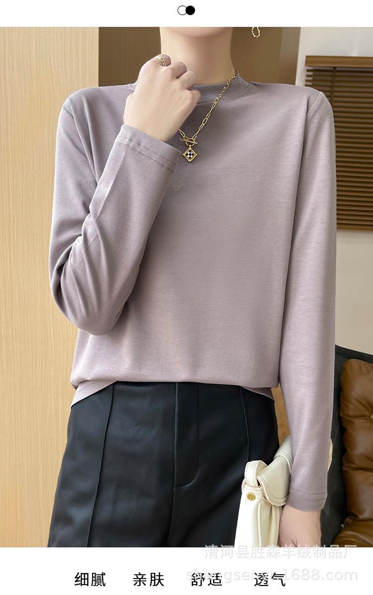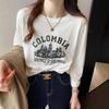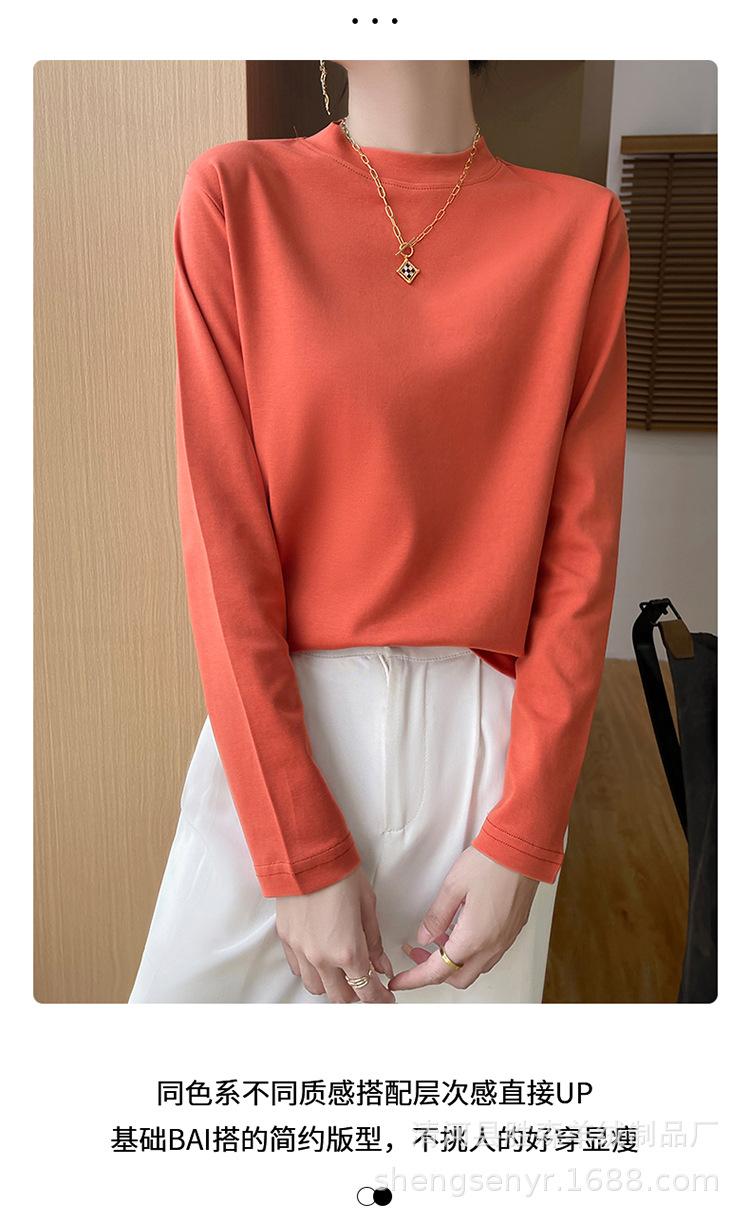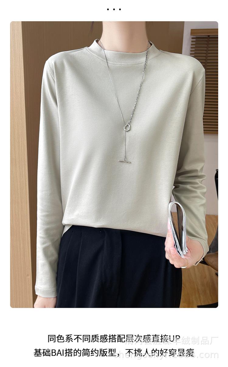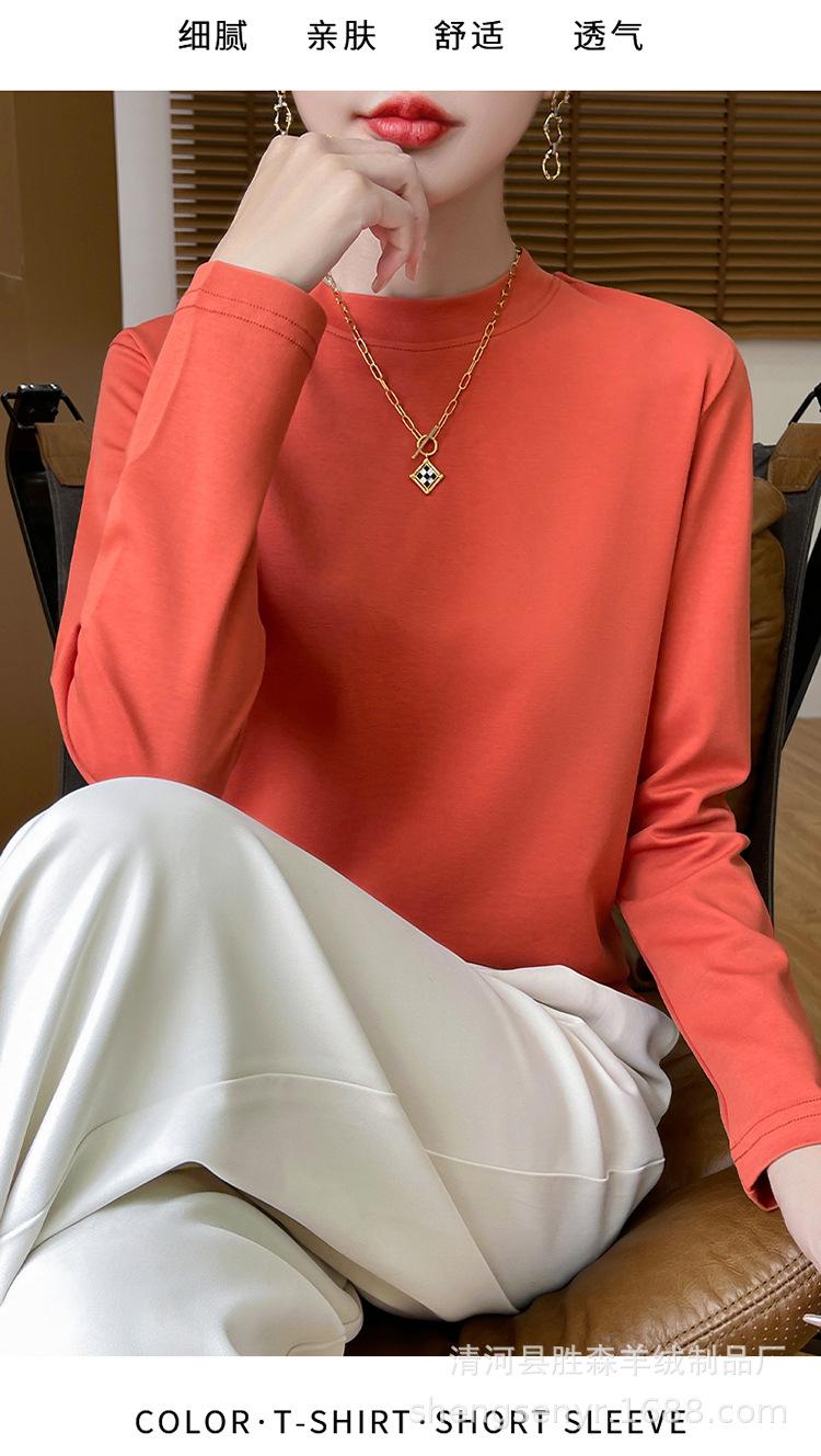 2024 Verano Nuevo Algodón Cuello Redondo Manga Larga Camiseta de Mujer Suelta Combinable Color Sólido Elegante Camiseta Top Base