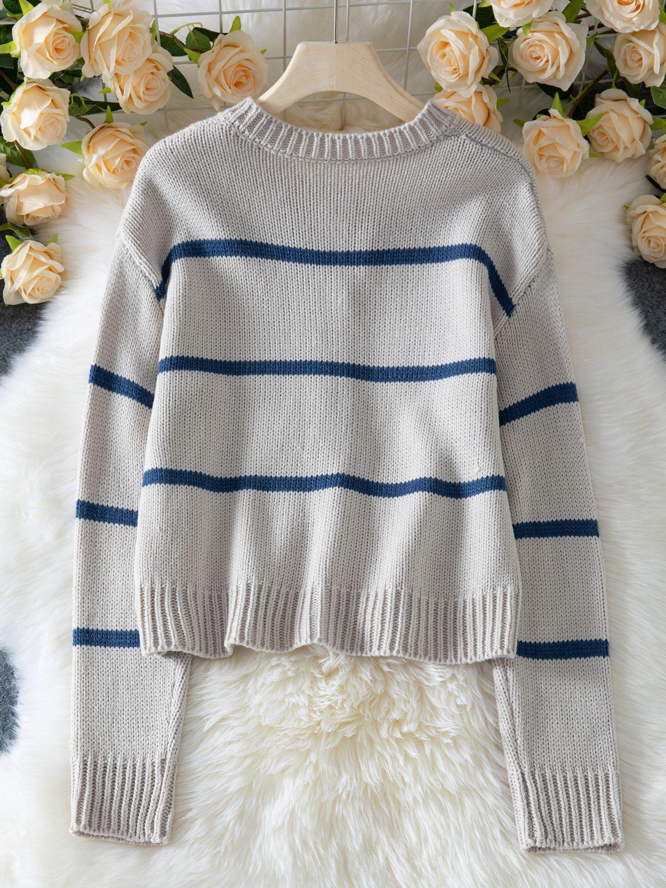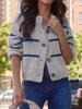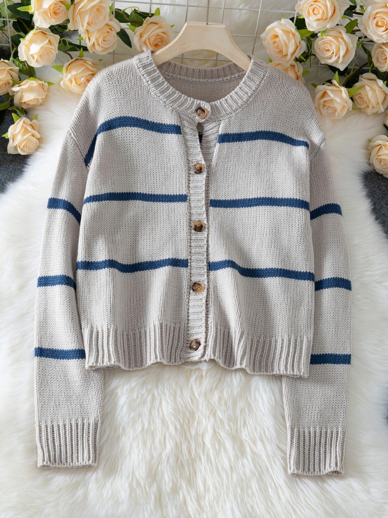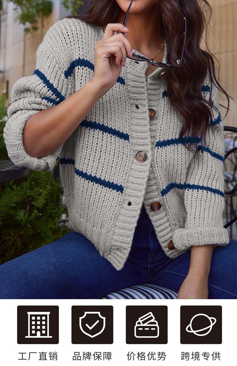 Suéter de Manga Larga para Mujer para Exportación Transfronteriza 2025 Otoño e Invierno Nueva Moda Rayado Suelto Chaqueta Cárdigan de Punto Top