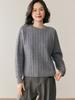Nueva Camiseta Básica de Punto de Cachemira para Otoño e Invierno, Color Sólido Cuello Redondo, Manga Larga, Versátil para Ir al Trabajo, Punto de Cable Suave y Cómodo para Mujer