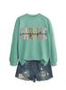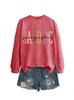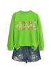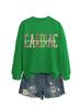 Bright red sweatshirt (black color chart), Bright red sweatshirt (white color chart), Grass green sweatshirt (...