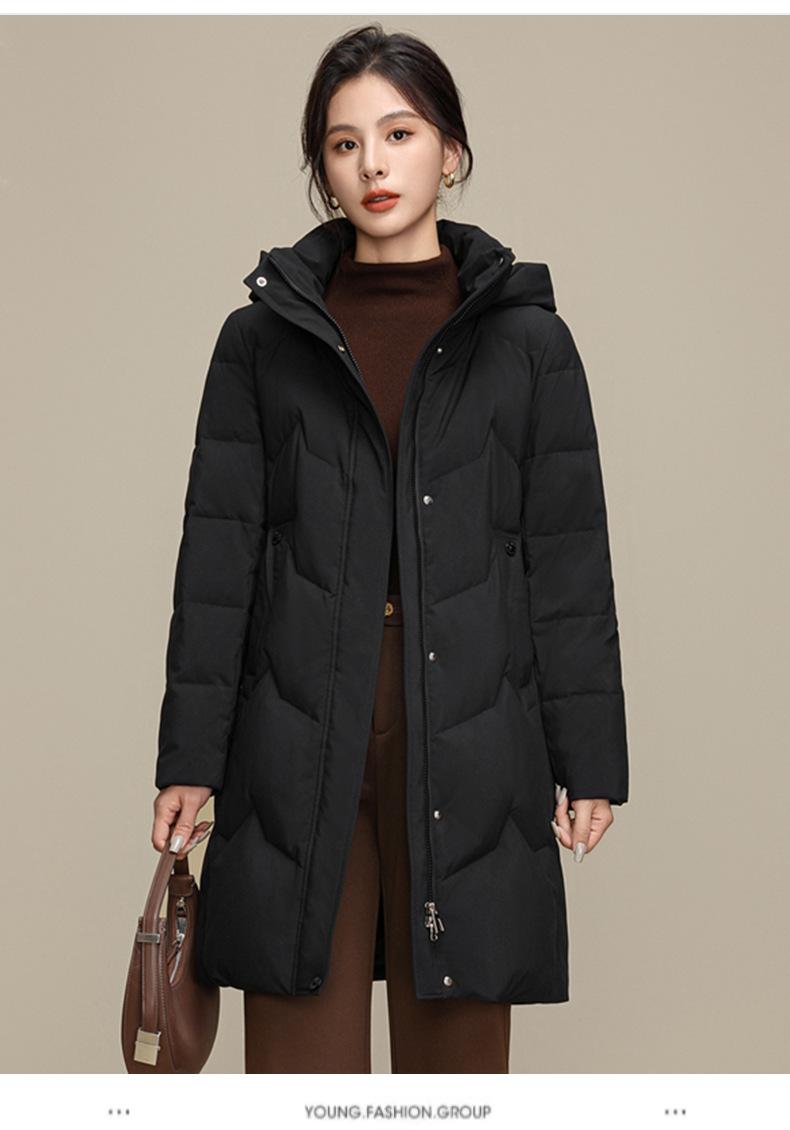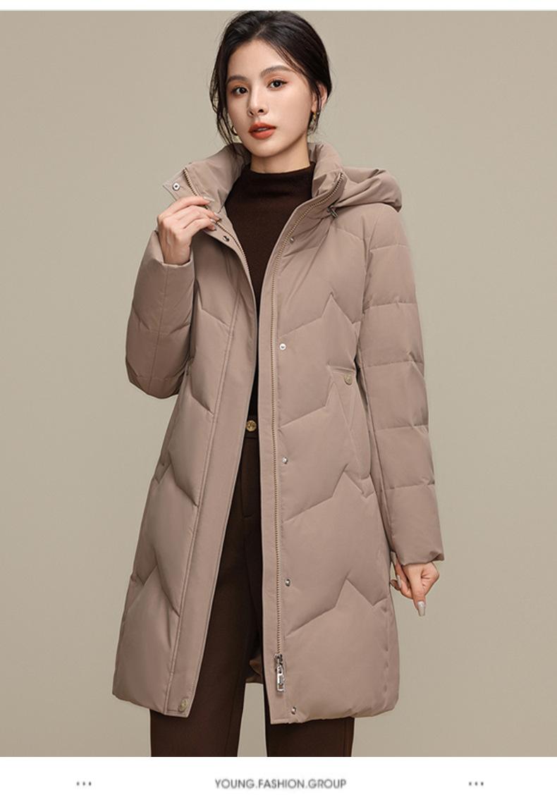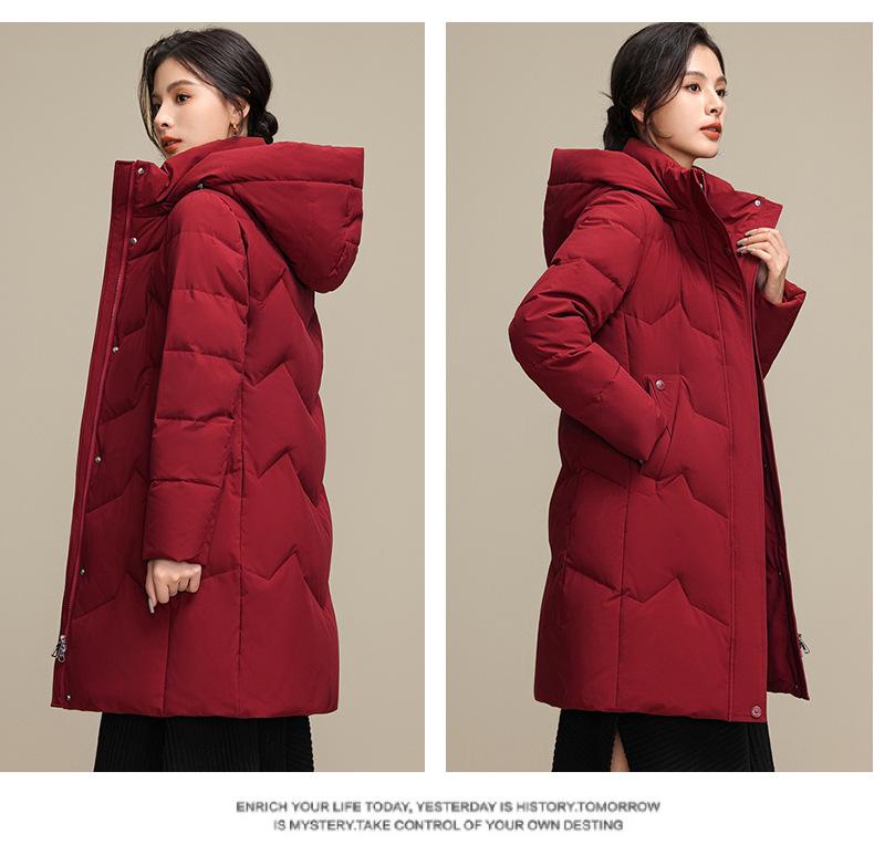 Chamarra de Plumas para Nieve para Mujer de Largo Medio 2024 Nueva Abrigo de Invierno Grueso y Cálido con Capucha para Mujer de Mediana Edad