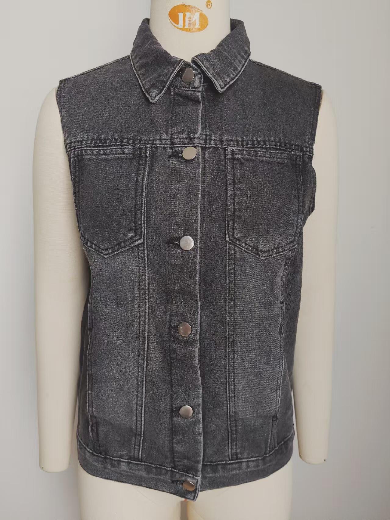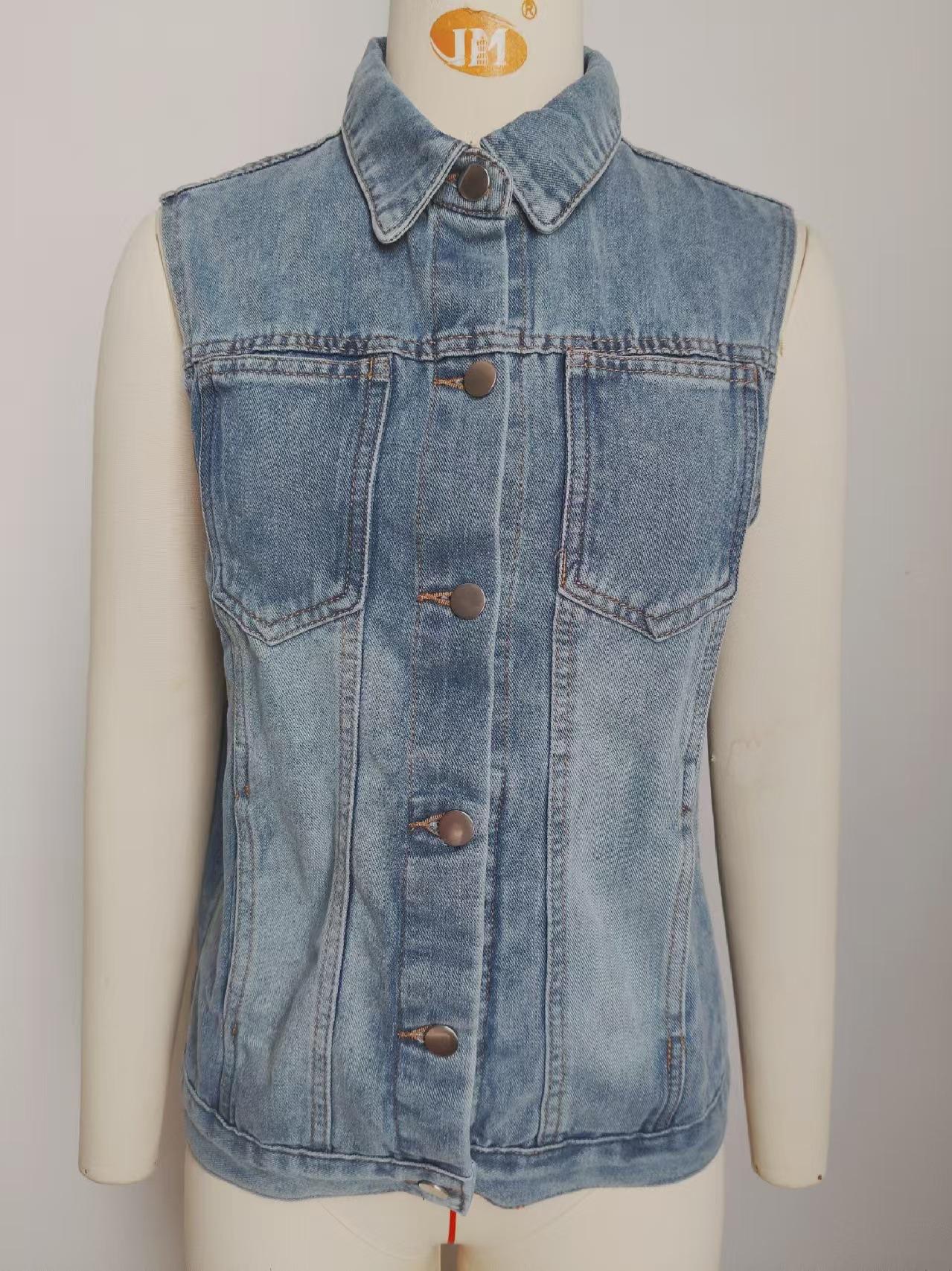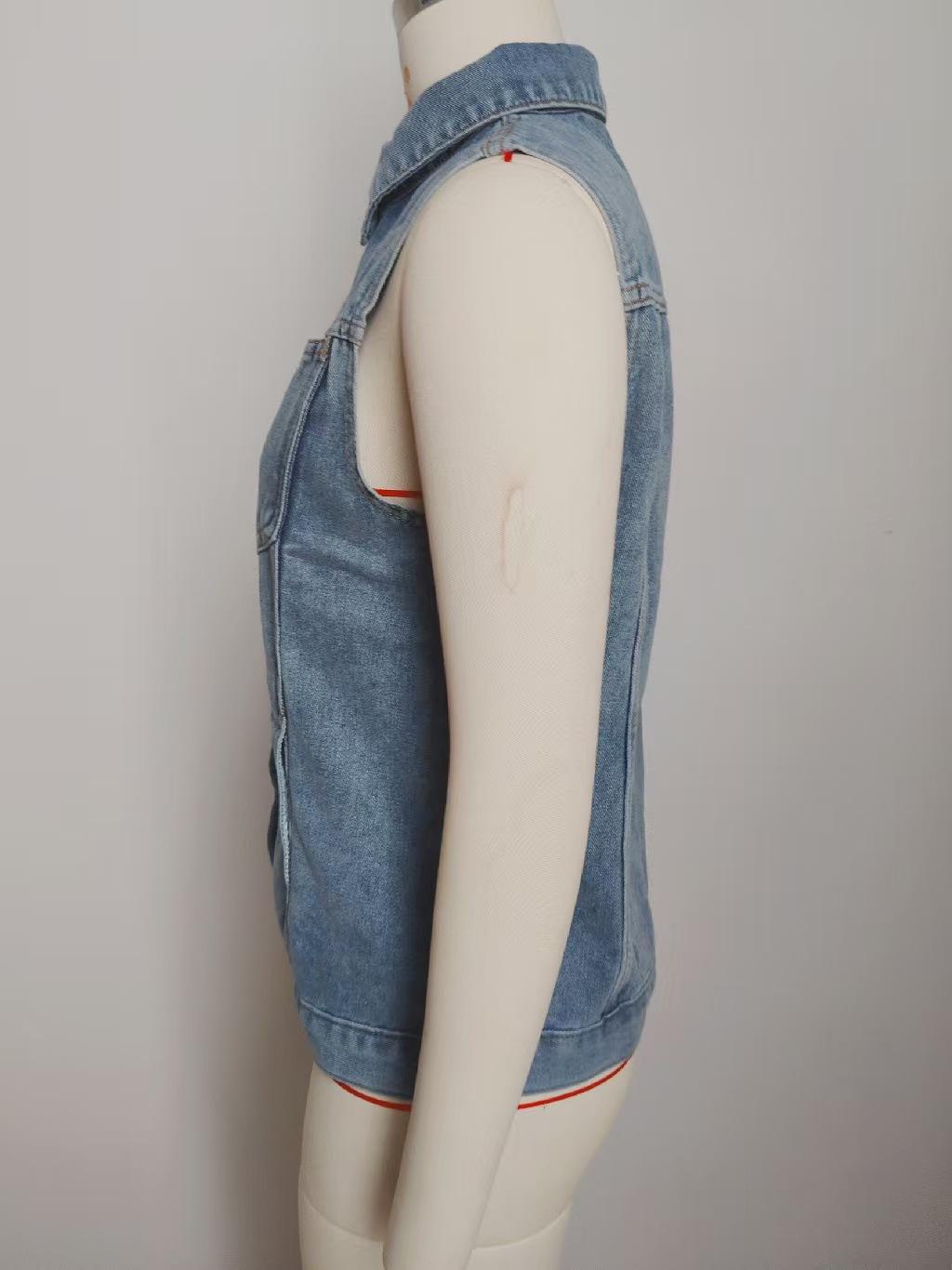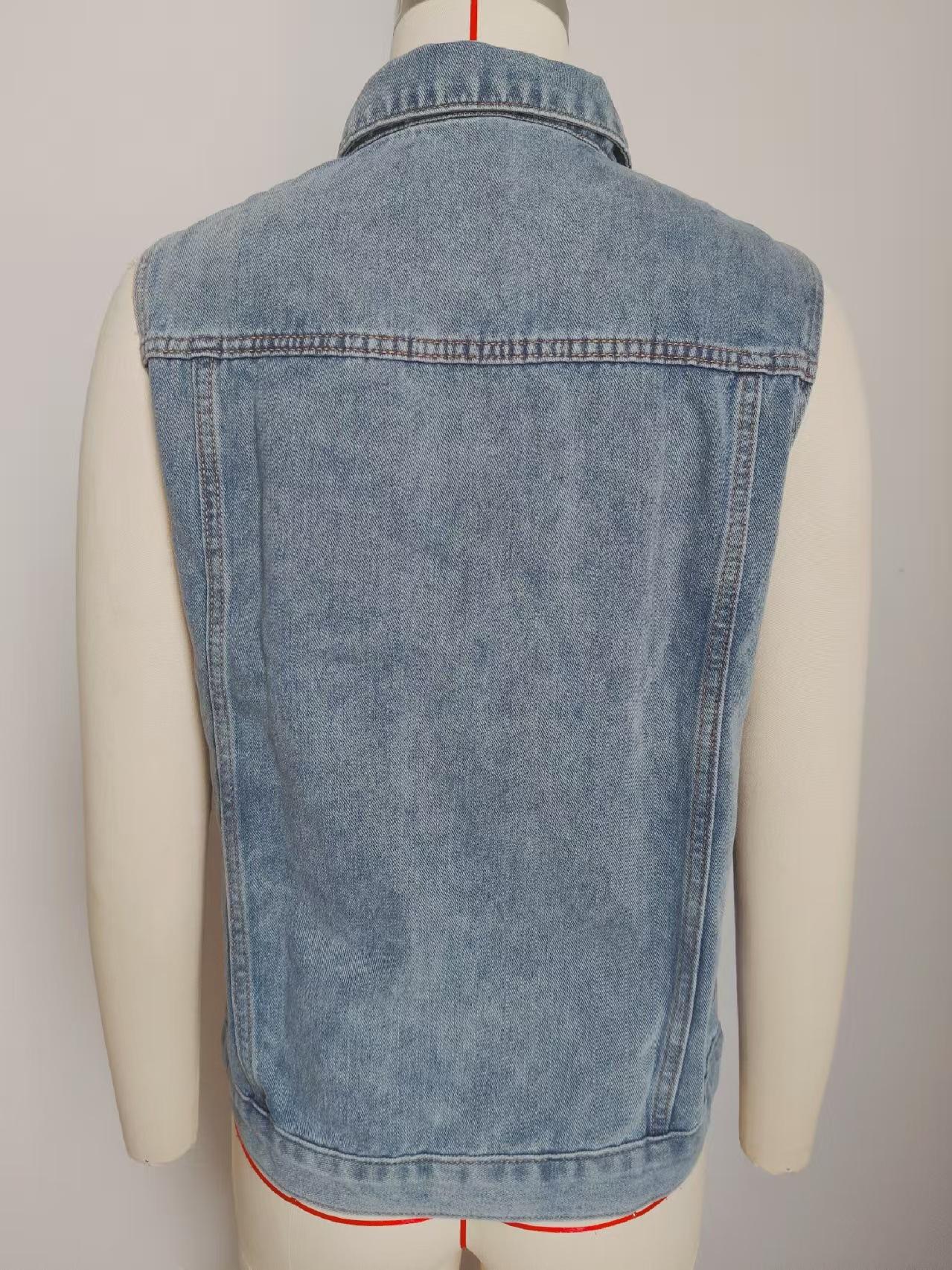 Europeo y Americano Transfronterizo Comercio Exterior Amazon Nuevo Lavado Retro Chaqueta Chaleco de Mezclilla Suelto Moda Casual Tendencia para Mujer