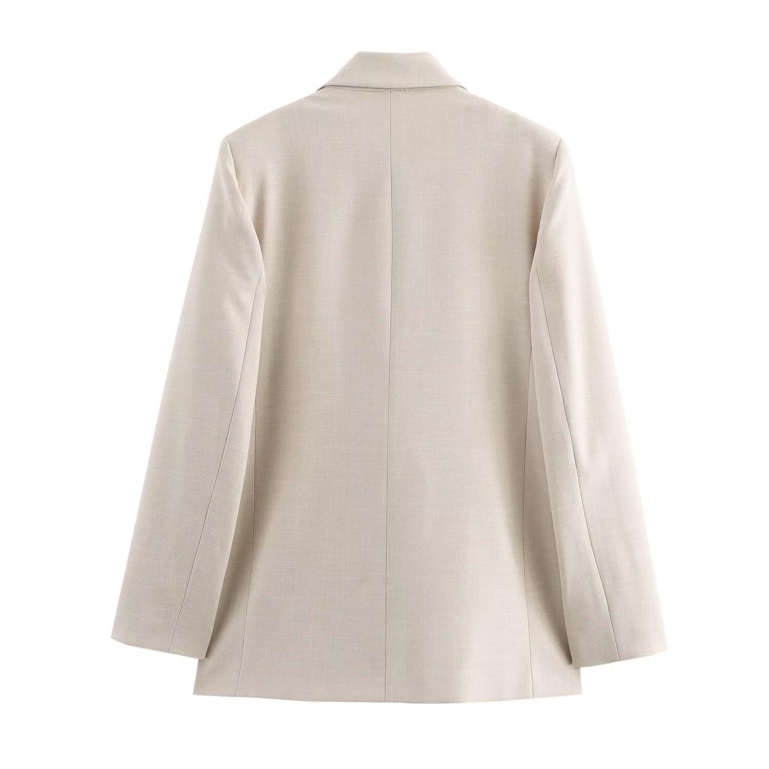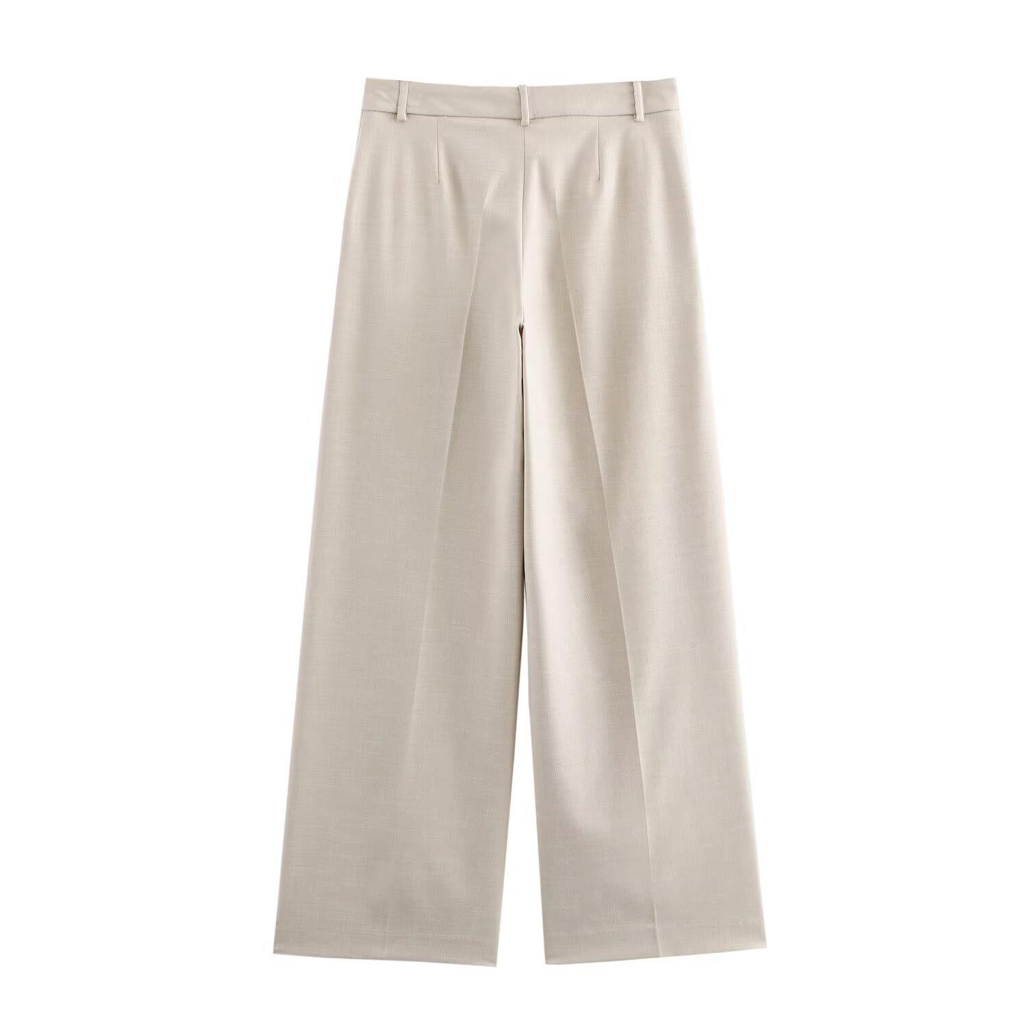 Ropa de Mujer de Estilo Europeo y Americano para Comercio Exterior Blazer Popular Cruzado + Pantalones de Pierna Ancha de Cintura Alta con Descuento