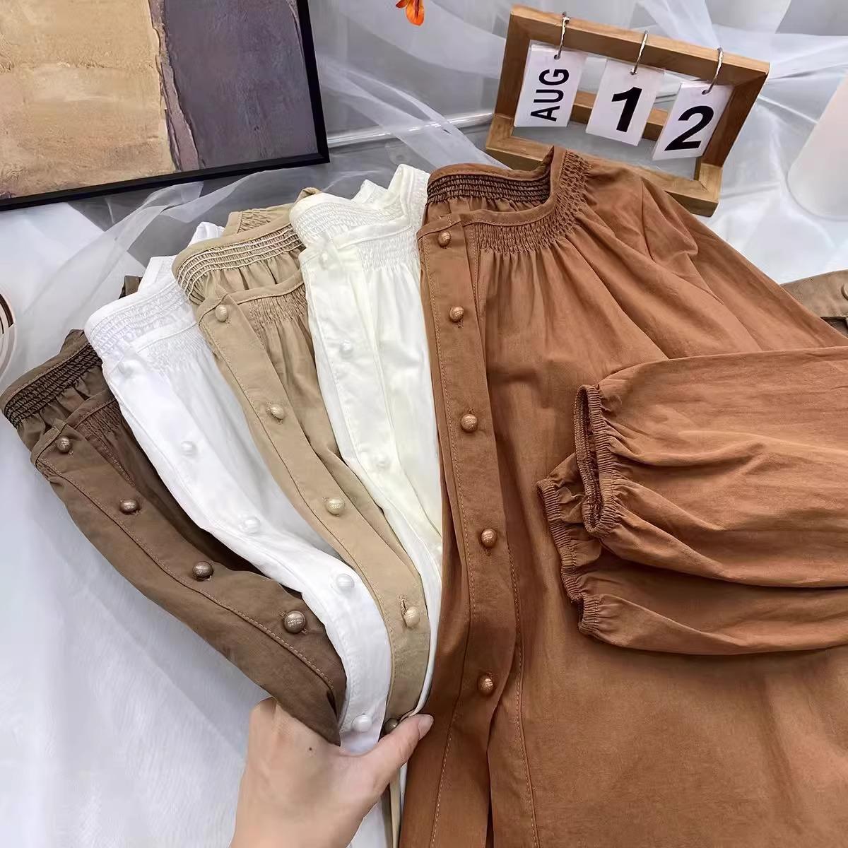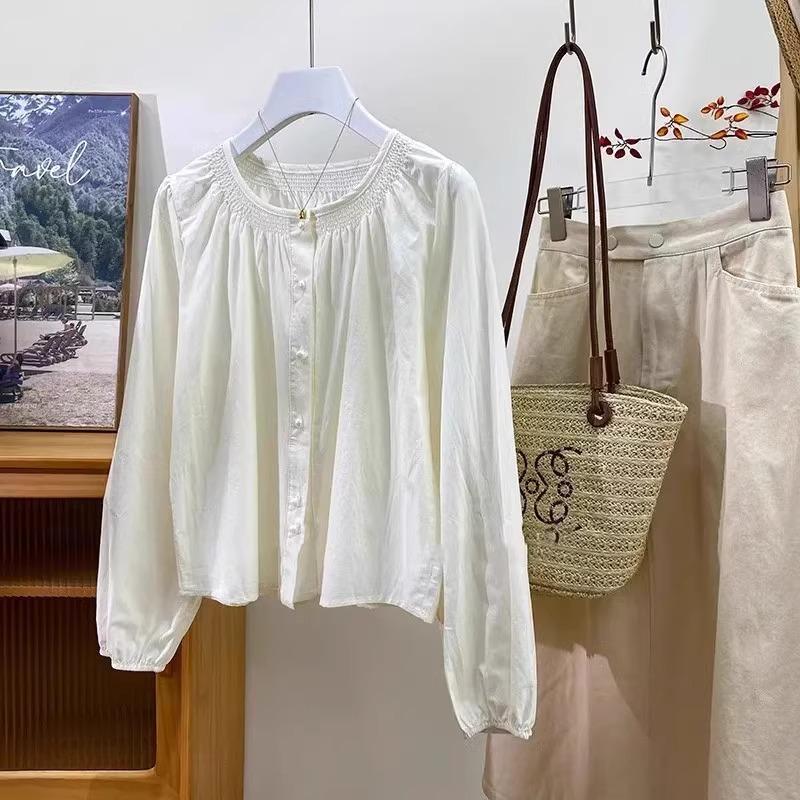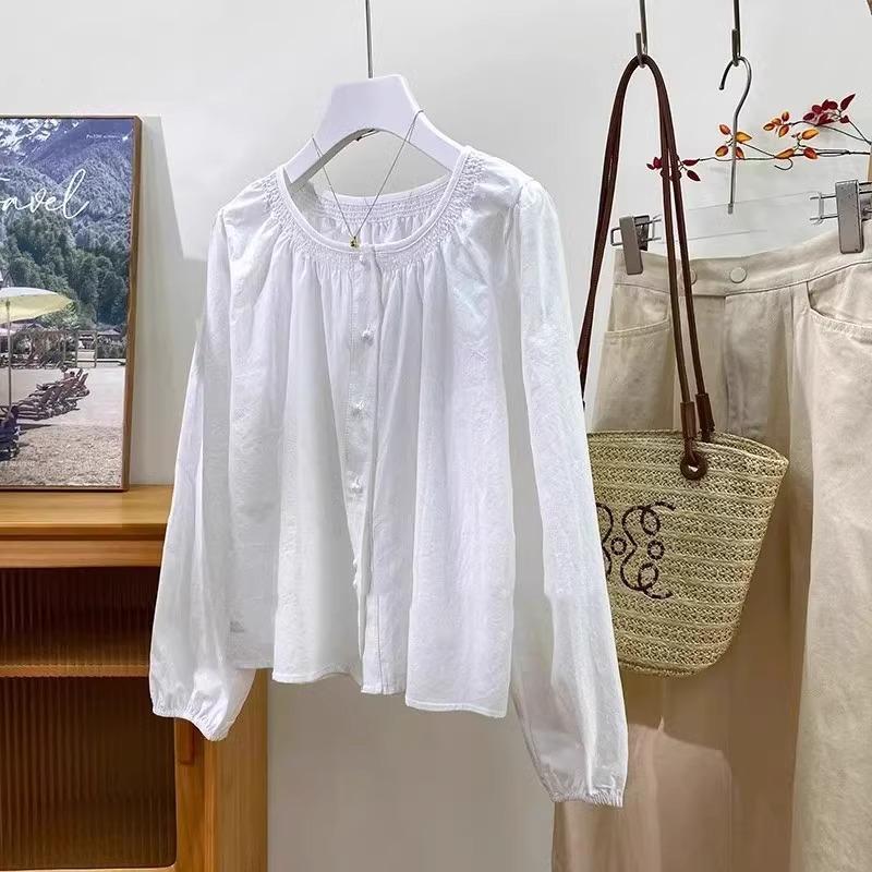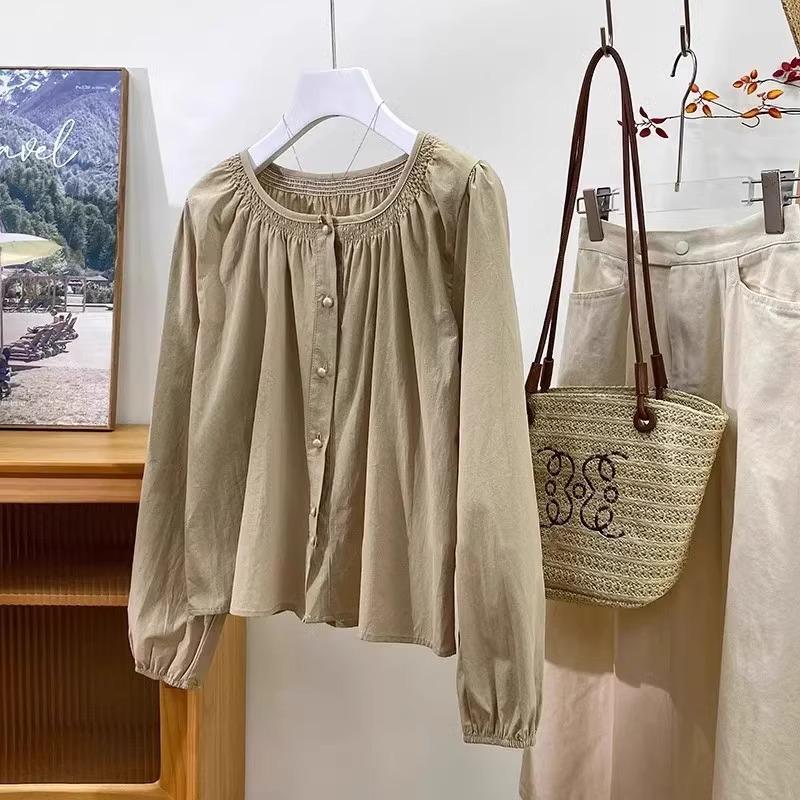 Camiseta de Algodón Cuello Redondo para Mujer Nuevo Estilo Coreano Combinable Color Sólido Monopetalera Manga Larga Top Camiseta Pequeña para Mujer A2992