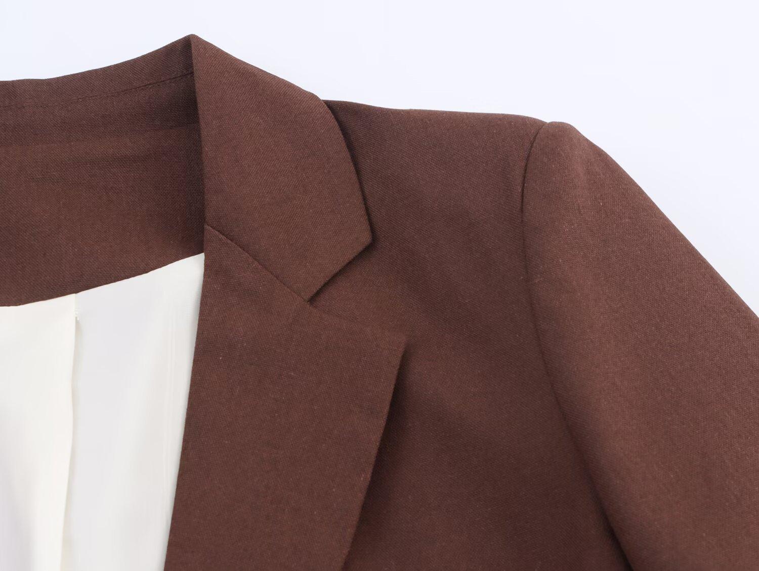 Ropa de mujer de comercio exterior transfronterizo 2025 otoño estilo europeo y americano solapa manga corta decoración de bolsillo chaqueta de traje mujer B482657F