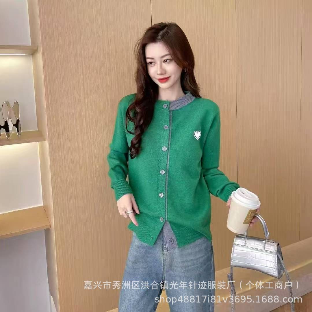 Cárdigan de Punto de Estilo Suave para Mujer con Botones, Top Básico de Manga Larga con Bloque de Color, Abrigo de Suéter Holgado a la Moda para Primavera y Otoño