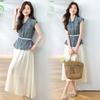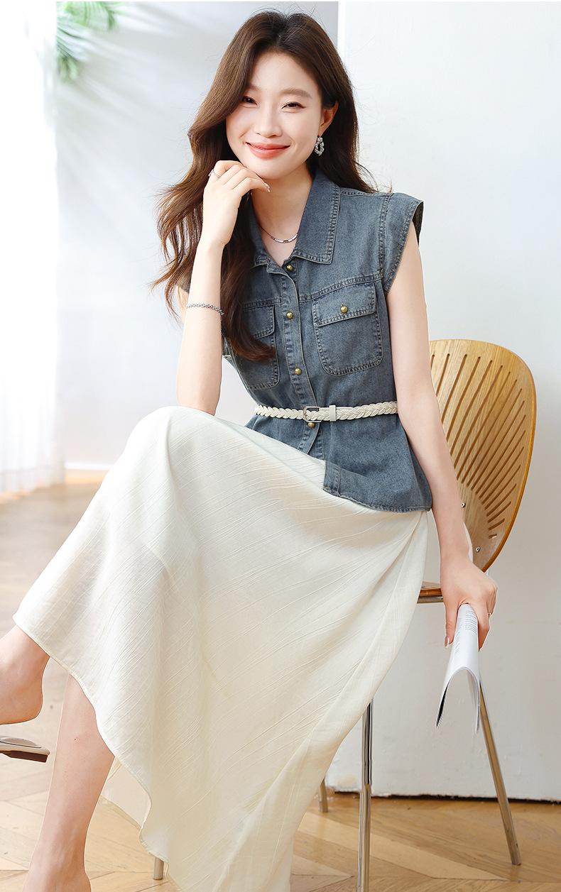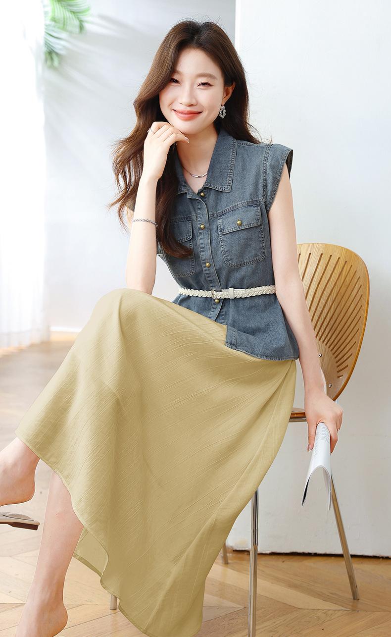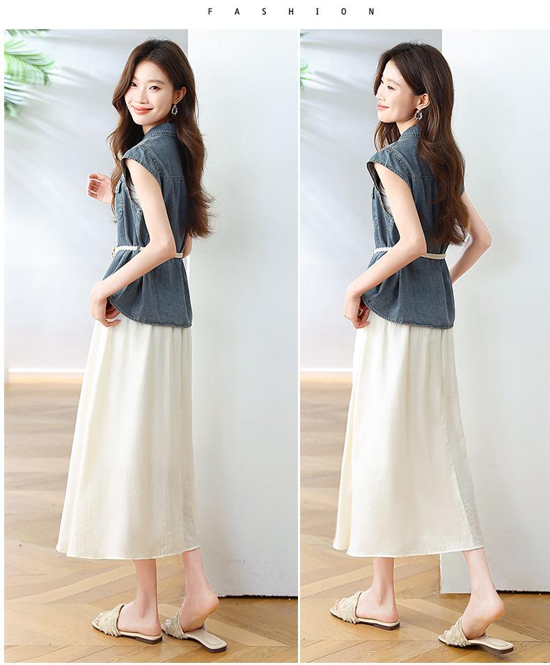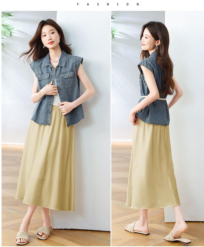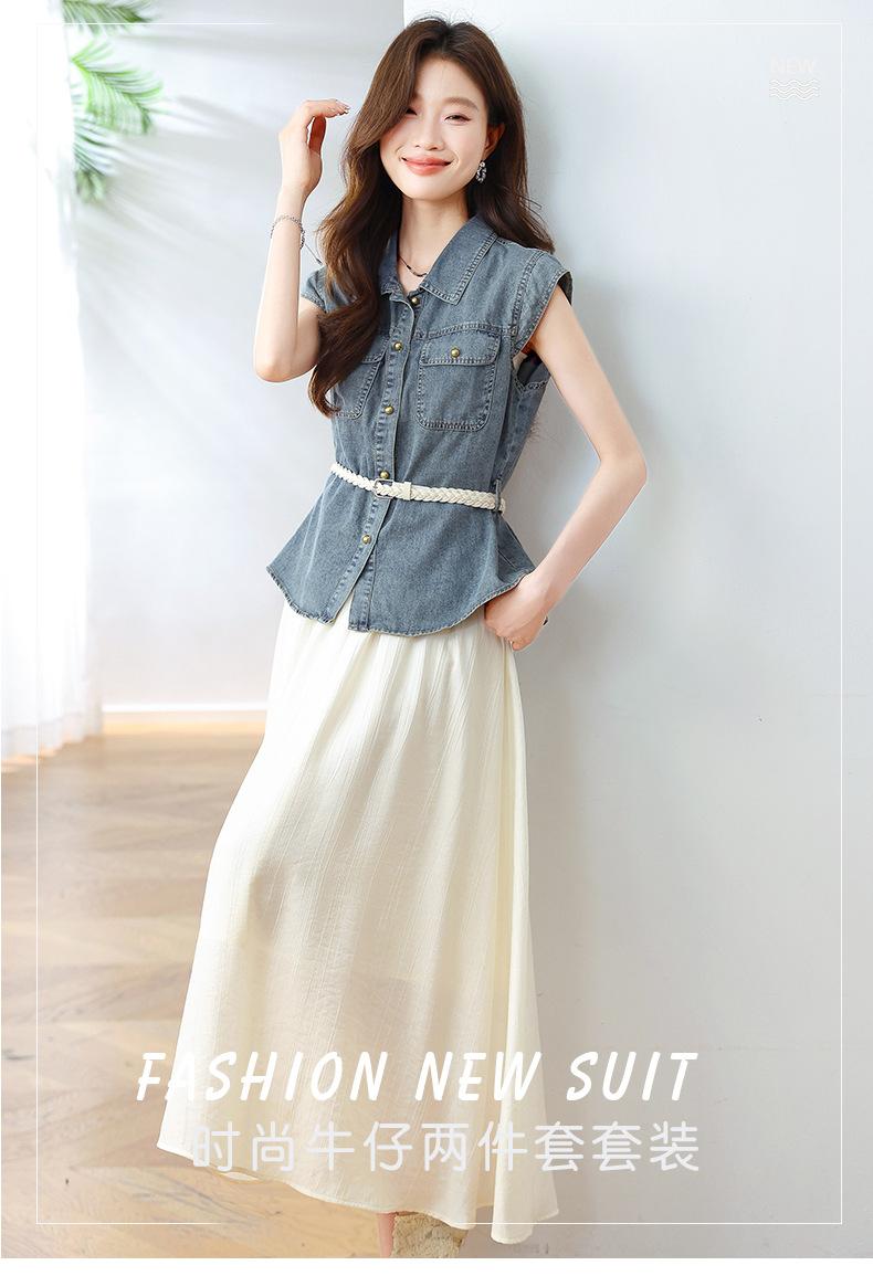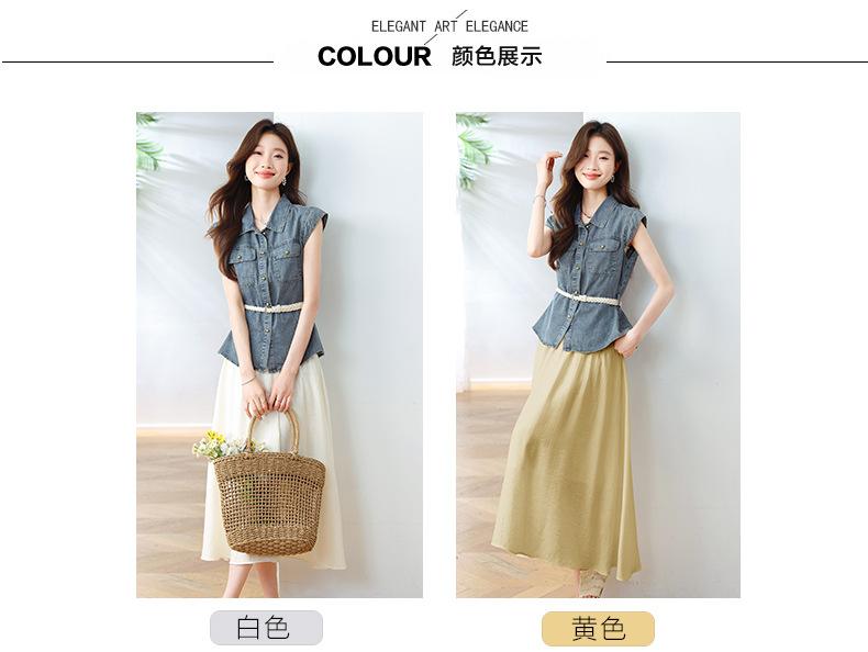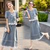 Conjunto de dos piezas para mujer 2025, que reduce la edad, versátil, cómodo y respetuoso con la piel, tops y faldas de mezclilla de alta calidad, moderno