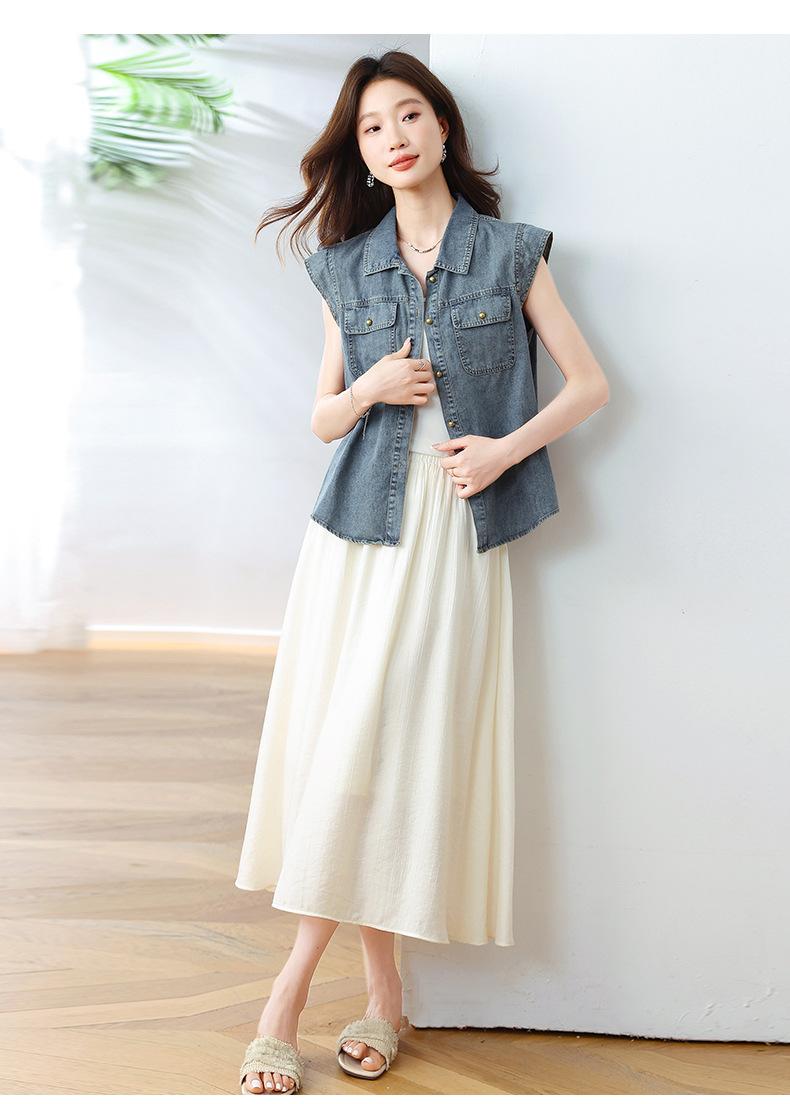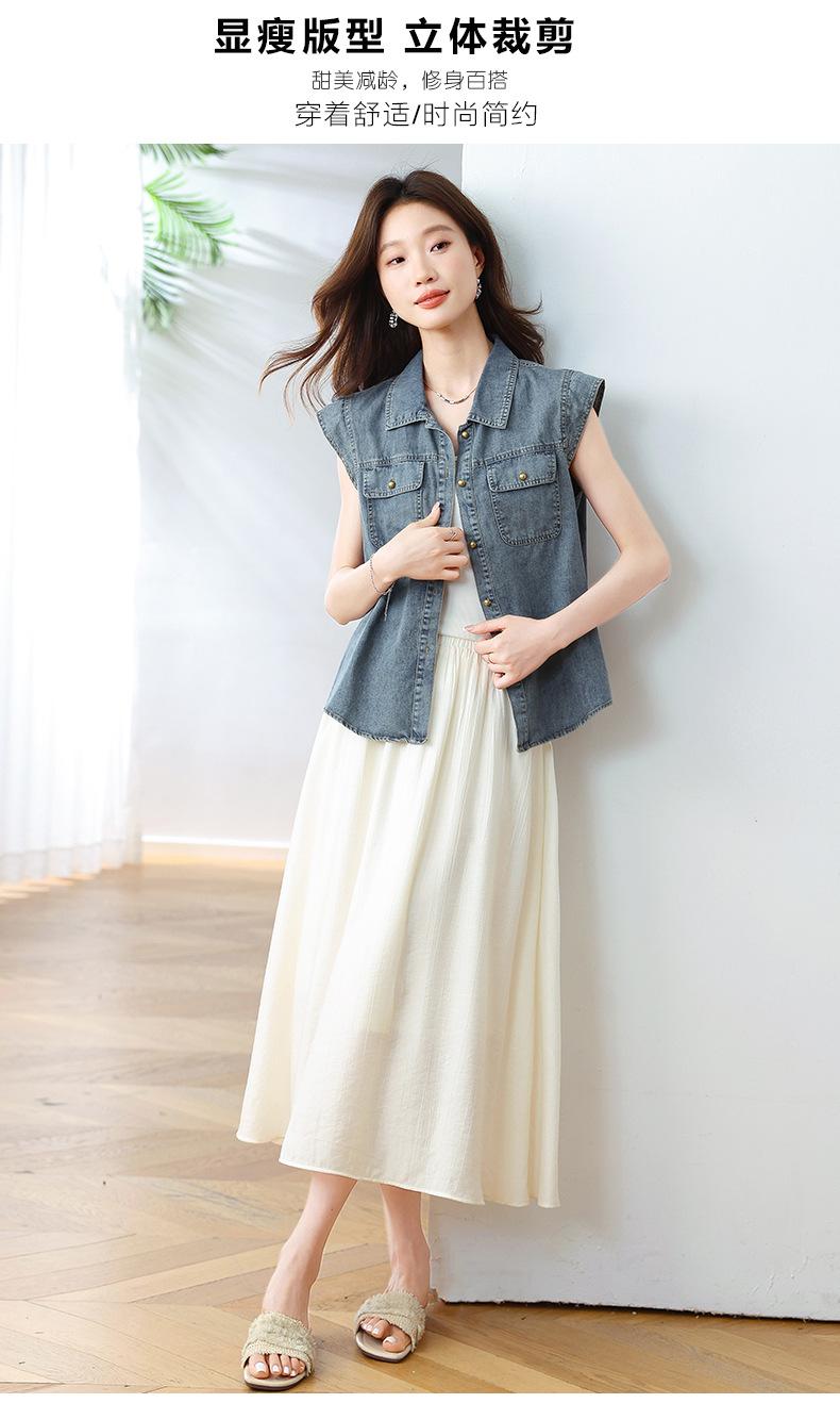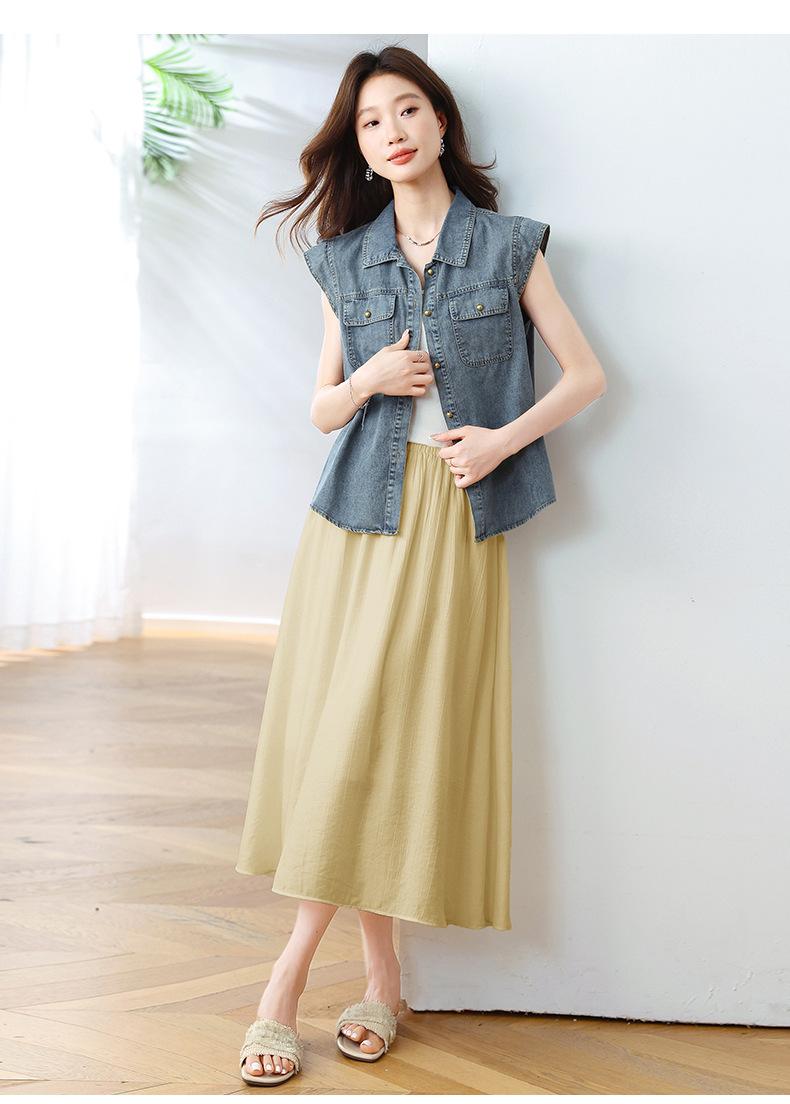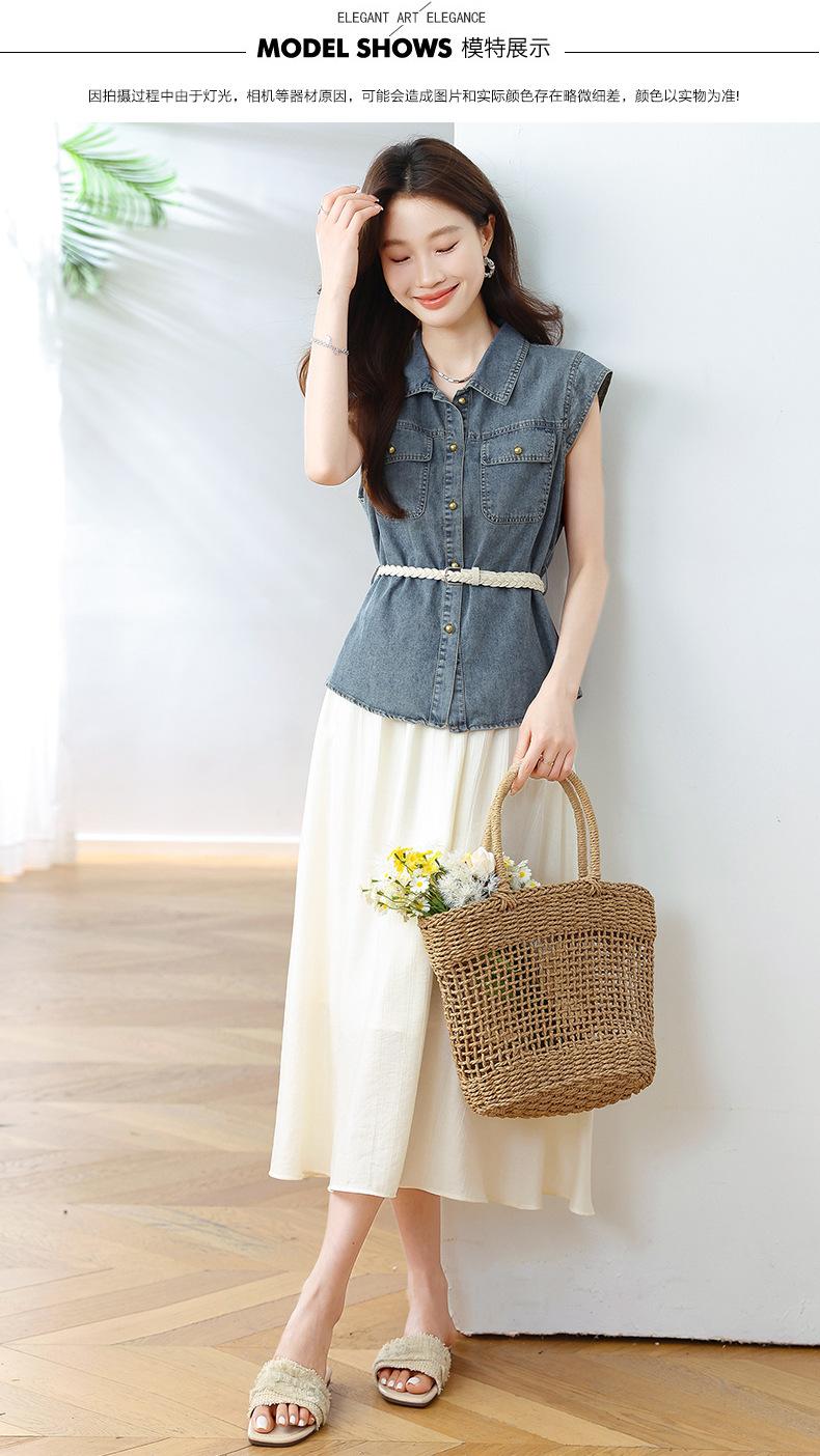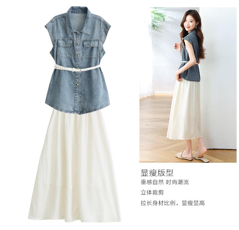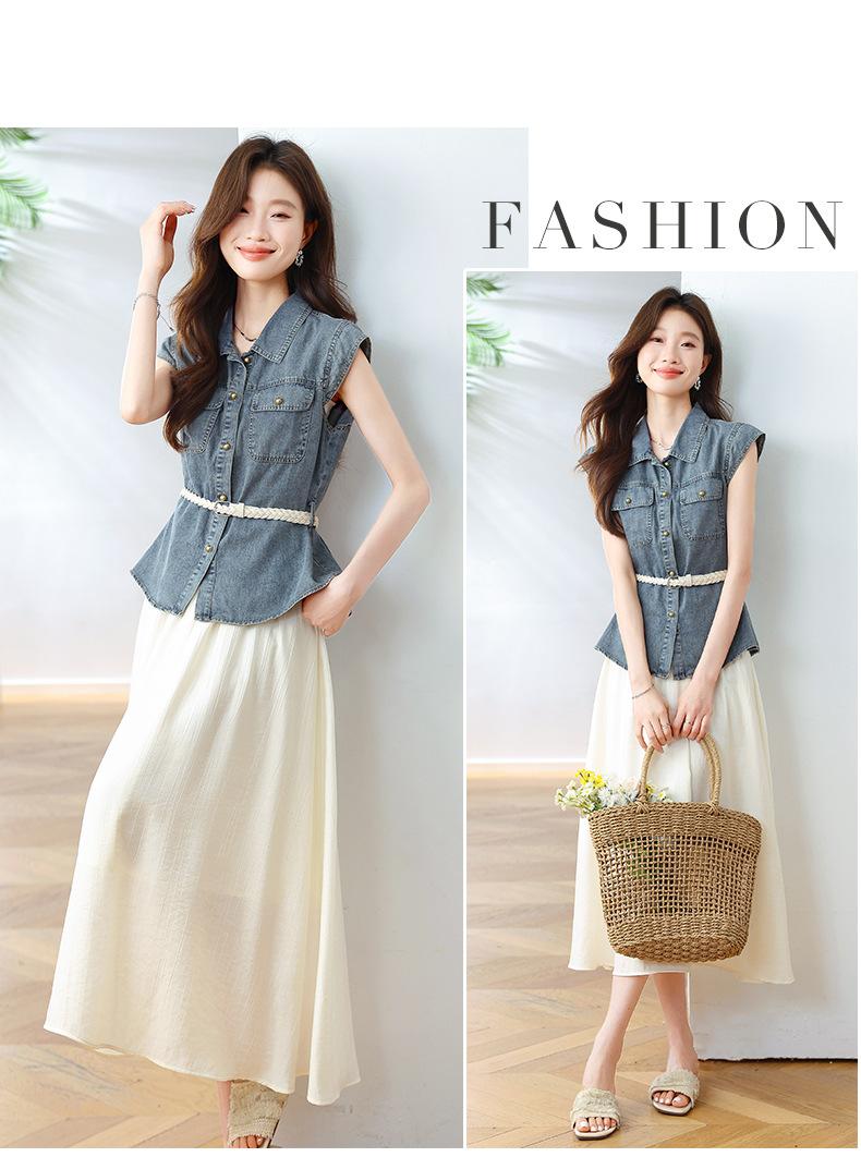 Conjunto de dos piezas para mujer 2025, que reduce la edad, versátil, cómodo y respetuoso con la piel, tops y faldas de mezclilla de alta calidad, moderno