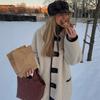 Cárdigan de Solapa de Color Puro para Mujer Nuevo Otoño e Invierno 2025 con Bolsillo de Solapa Pantalones Chaqueta de Largo Medio de un Solo Botón