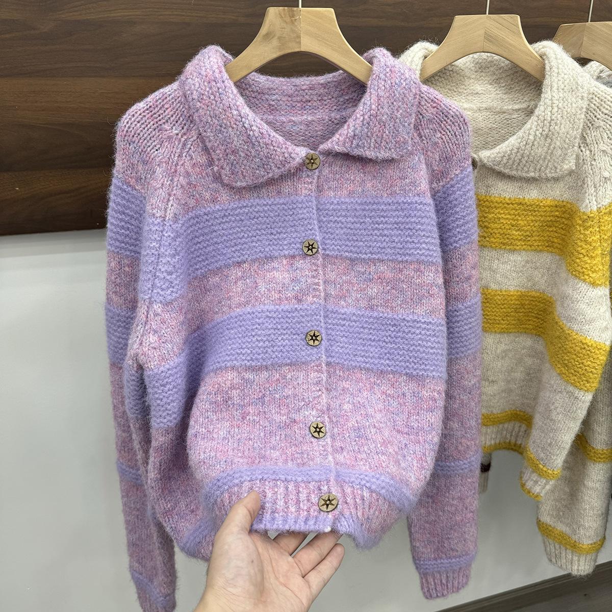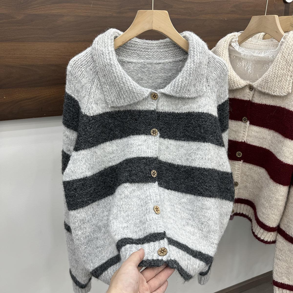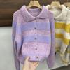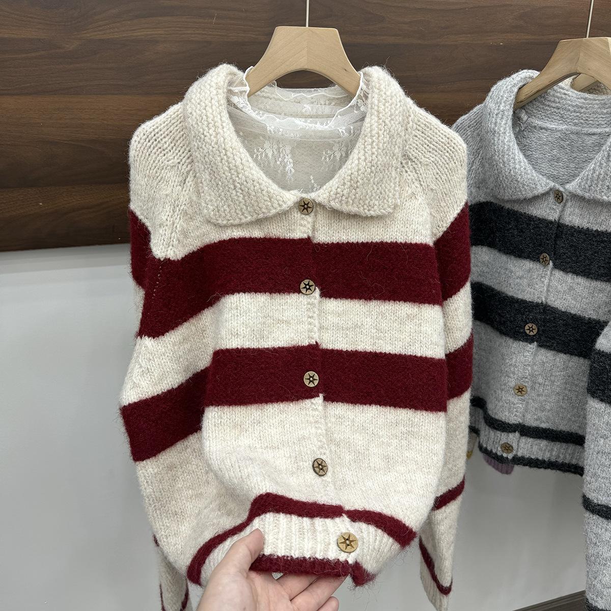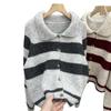 Cárdigan de punto a rayas con bloques de color retro 2025 otoño/invierno nuevo estilo coreano viento suave suelto adelgazante suéter que reduce la edad para mujer