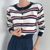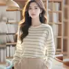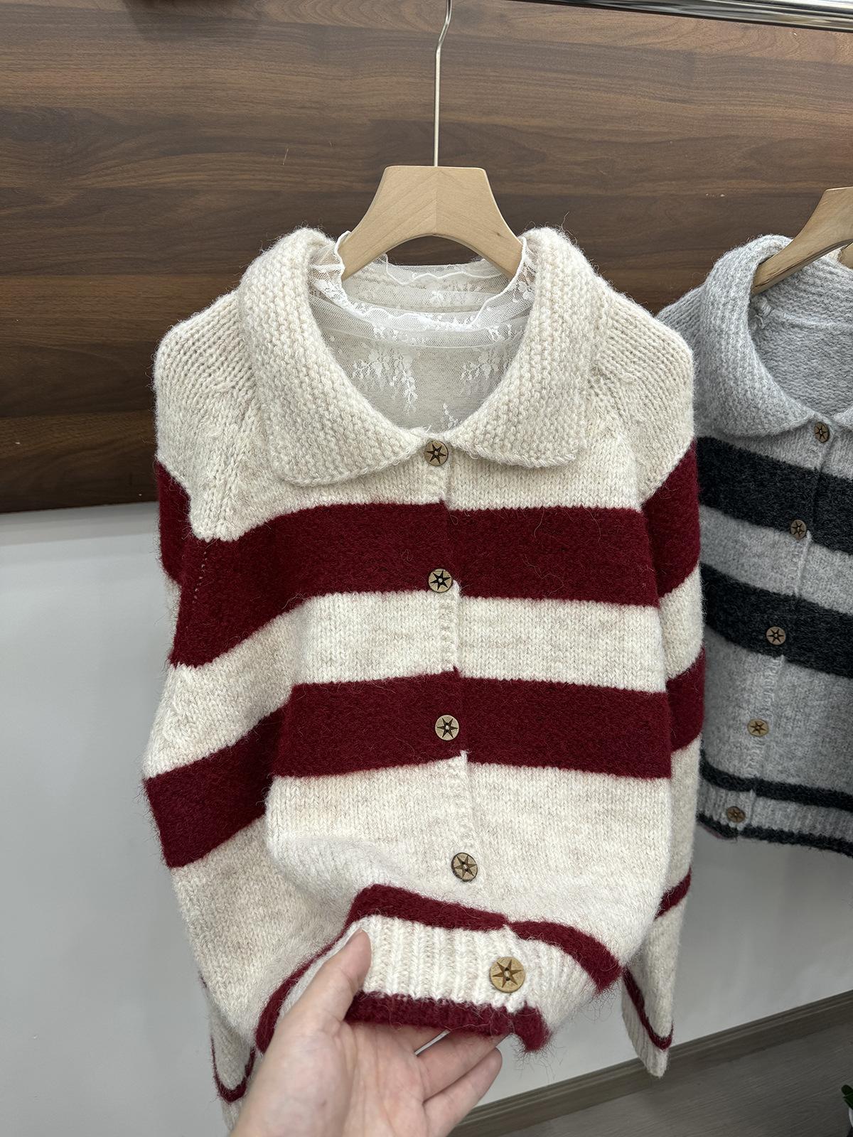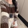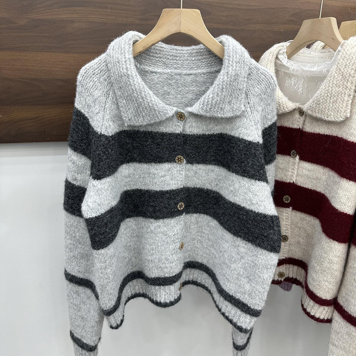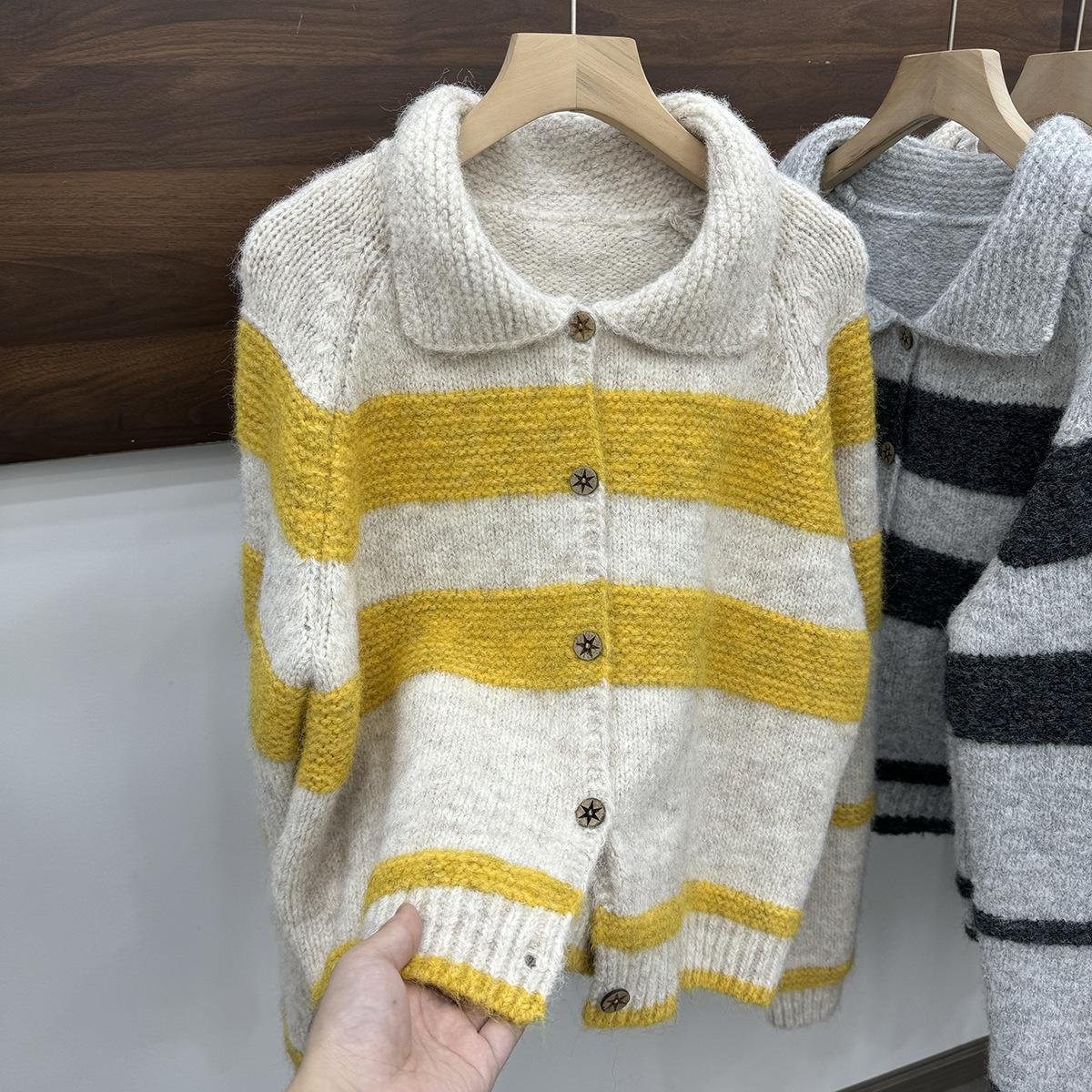 Cárdigan de punto a rayas con bloques de color retro 2025 otoño/invierno nuevo estilo coreano viento suave suelto adelgazante suéter que reduce la edad para mujer