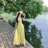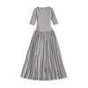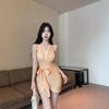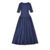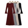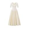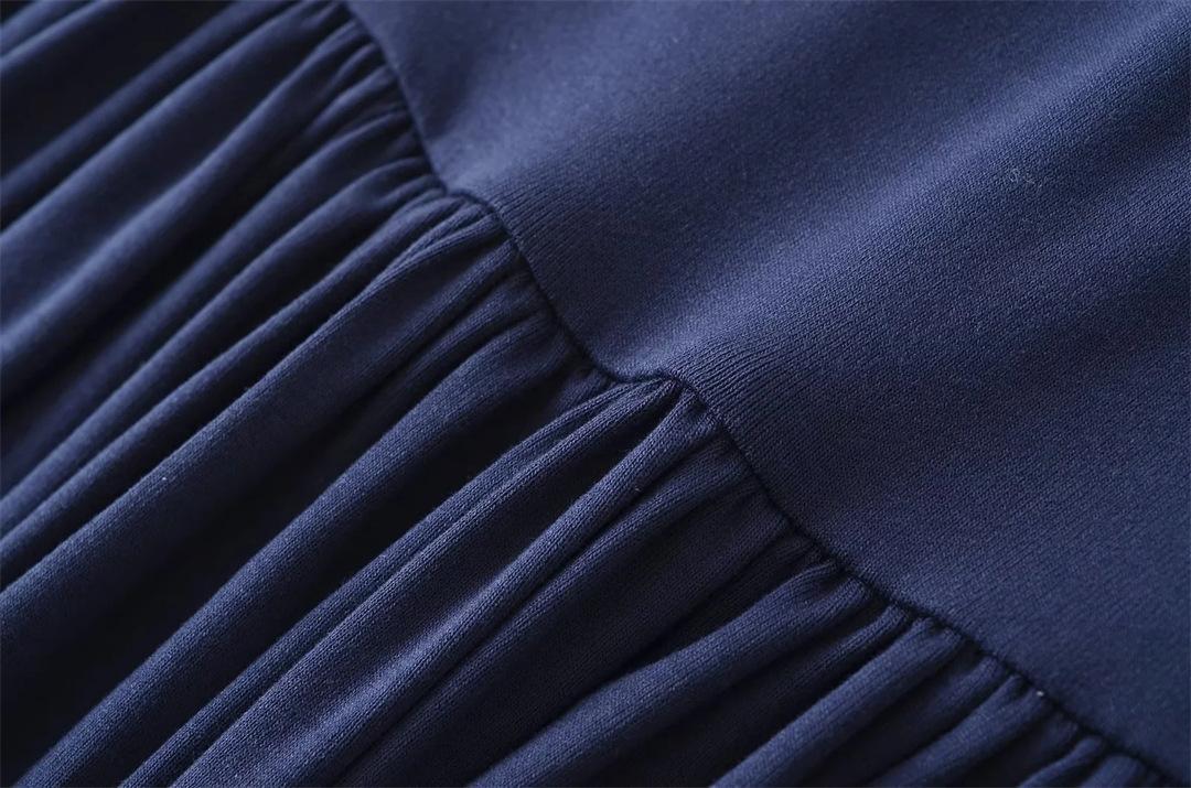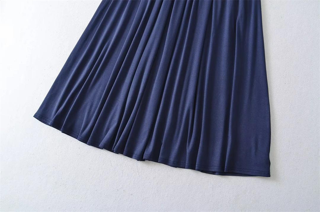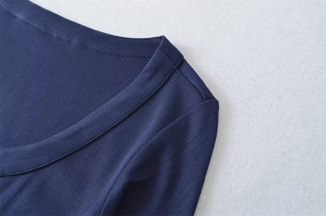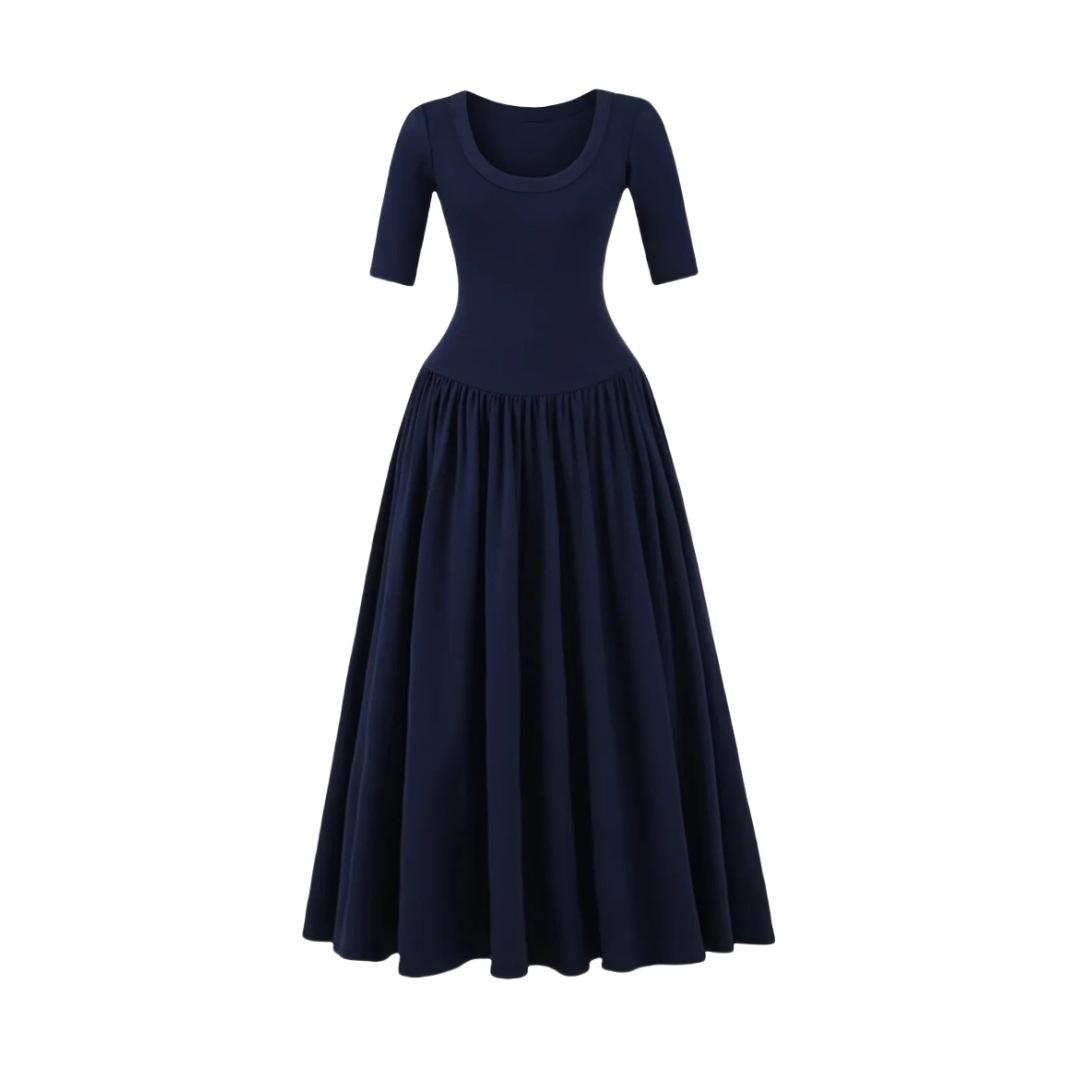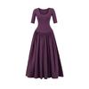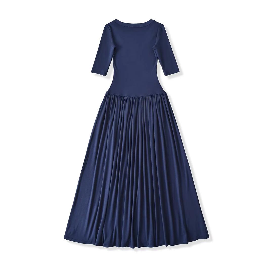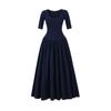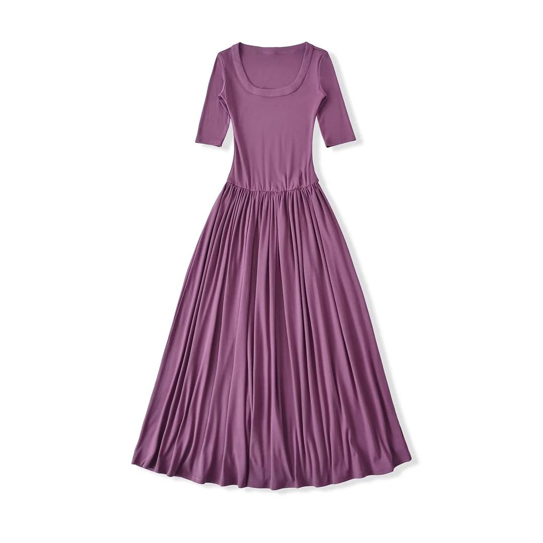 Vestido Sexy de Color Sólido Estilo Francés con Cuello en U Escotado de Manga Media con Temperamento Elástico, Corte Ajustado, Parcheado, Fruncido y Falda Larga Acampanada
