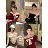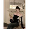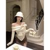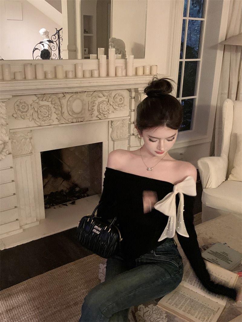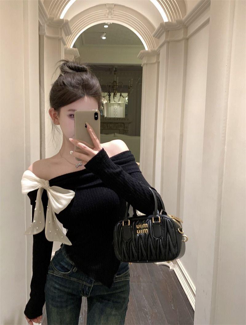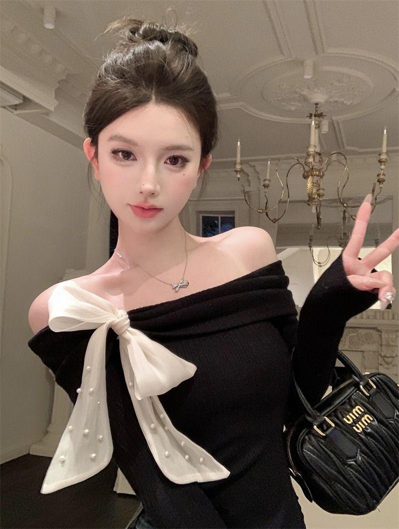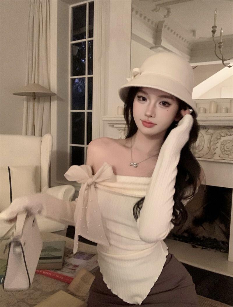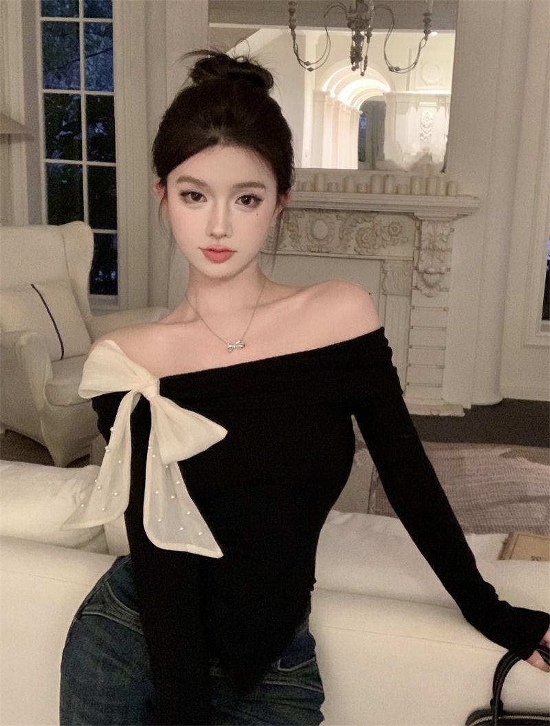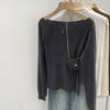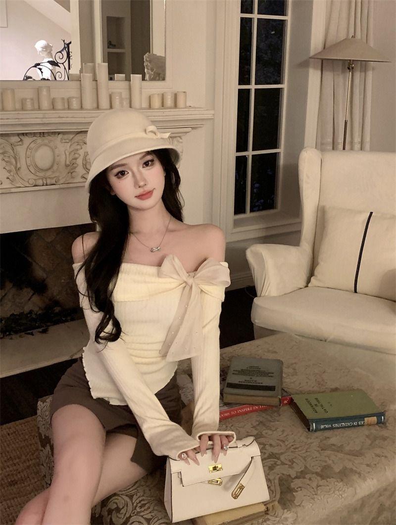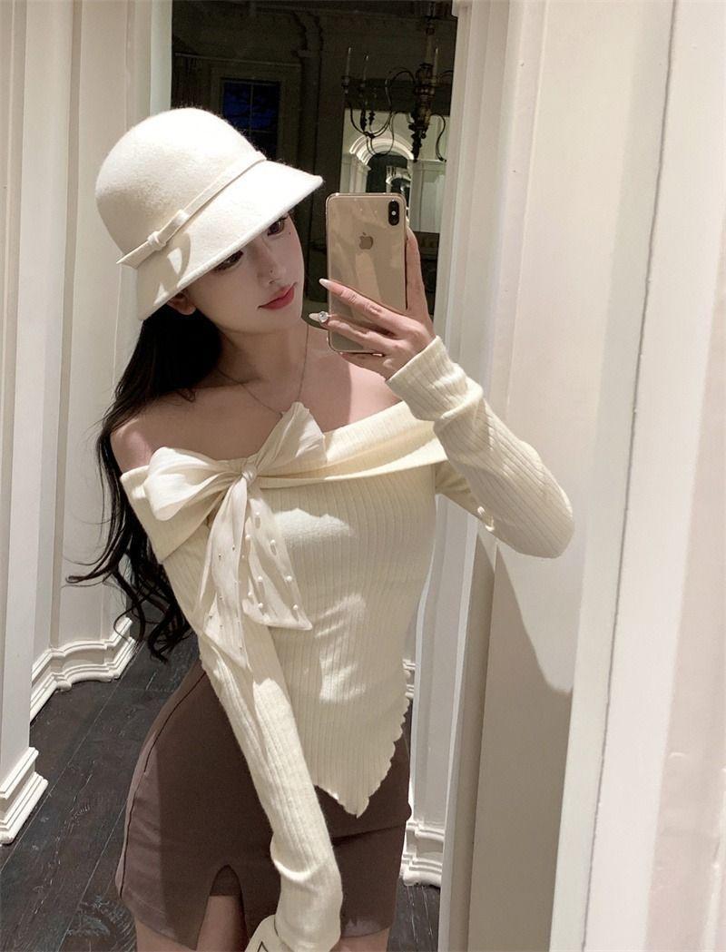 Suéter rojo de hombros descubiertos y manga larga para mujer, nuevo de primavera 2025, top ajustado irregular corto para usar debajo
