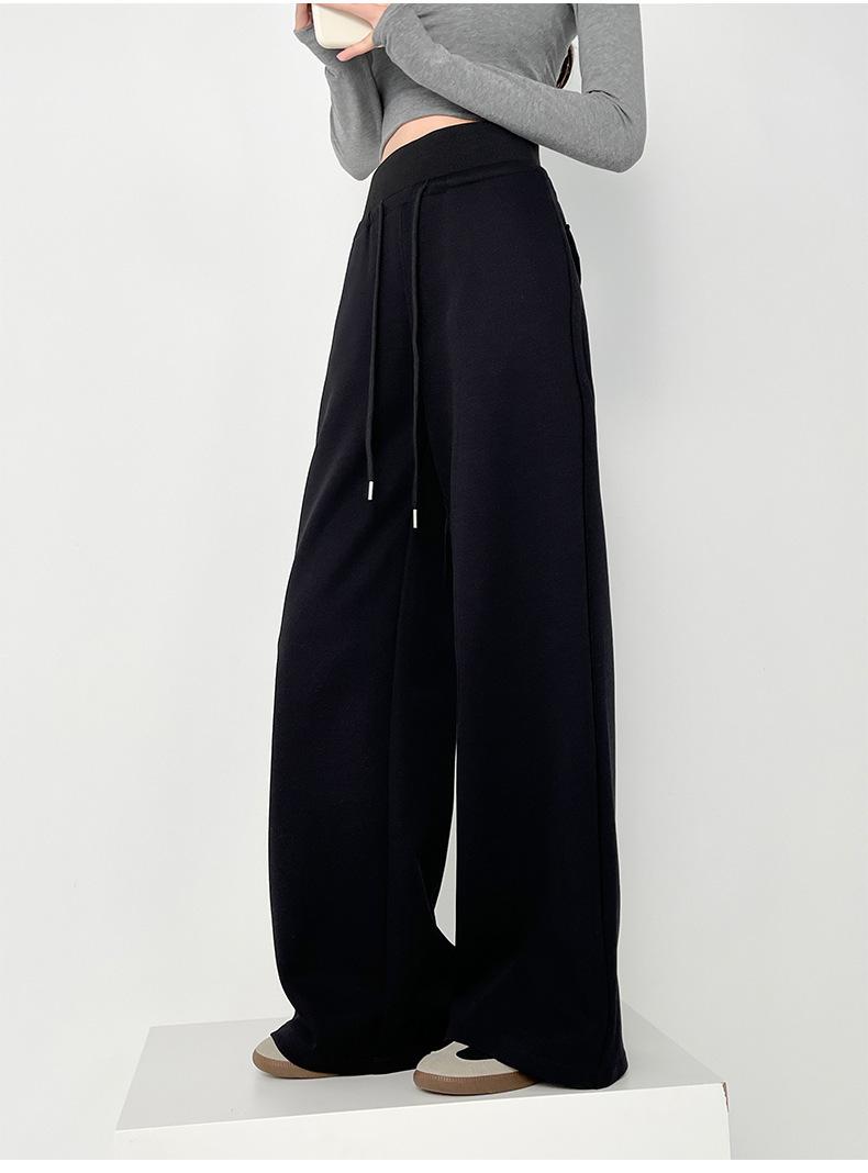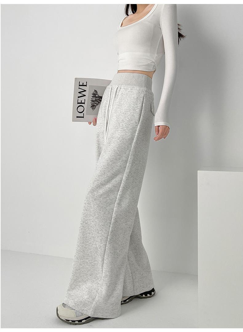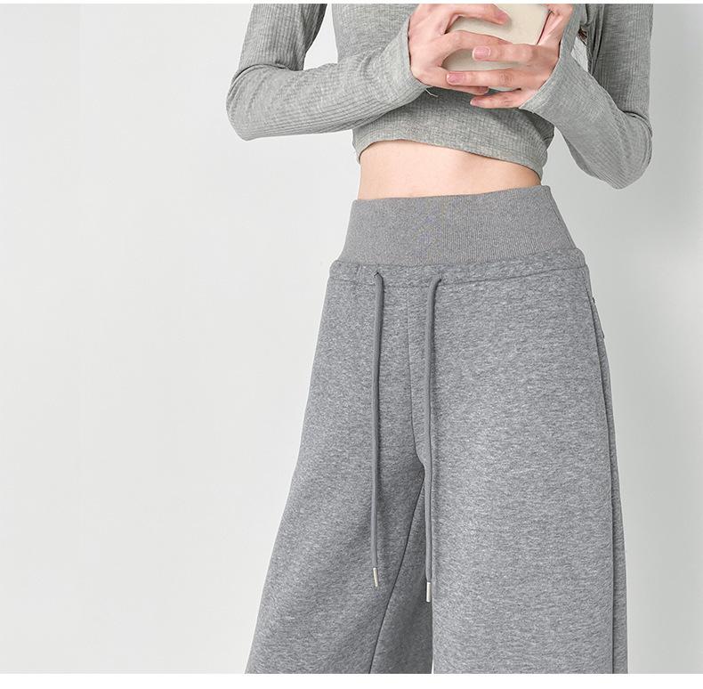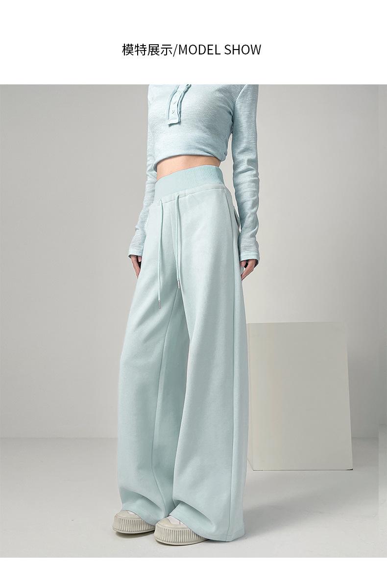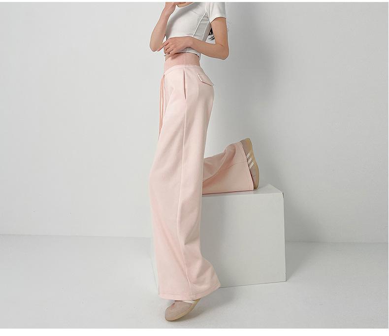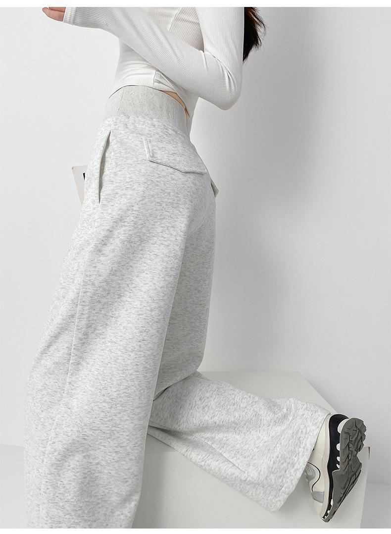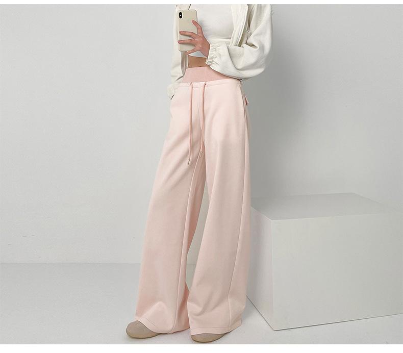 Pantalones Casuales de Pierna Ancha de Cintura Alta para Mujer Primavera 2025 Nuevos Pantalones de Chándal Rectos Sueltos de Cintura Alta Drapeados Largos Deportivos