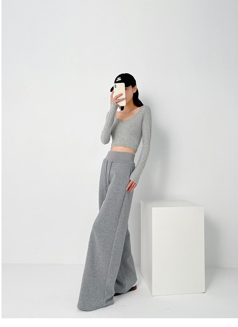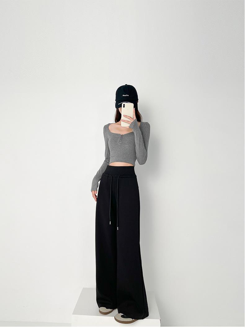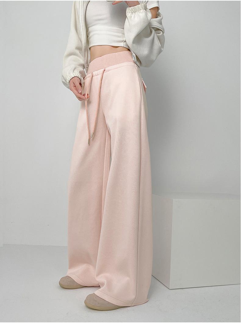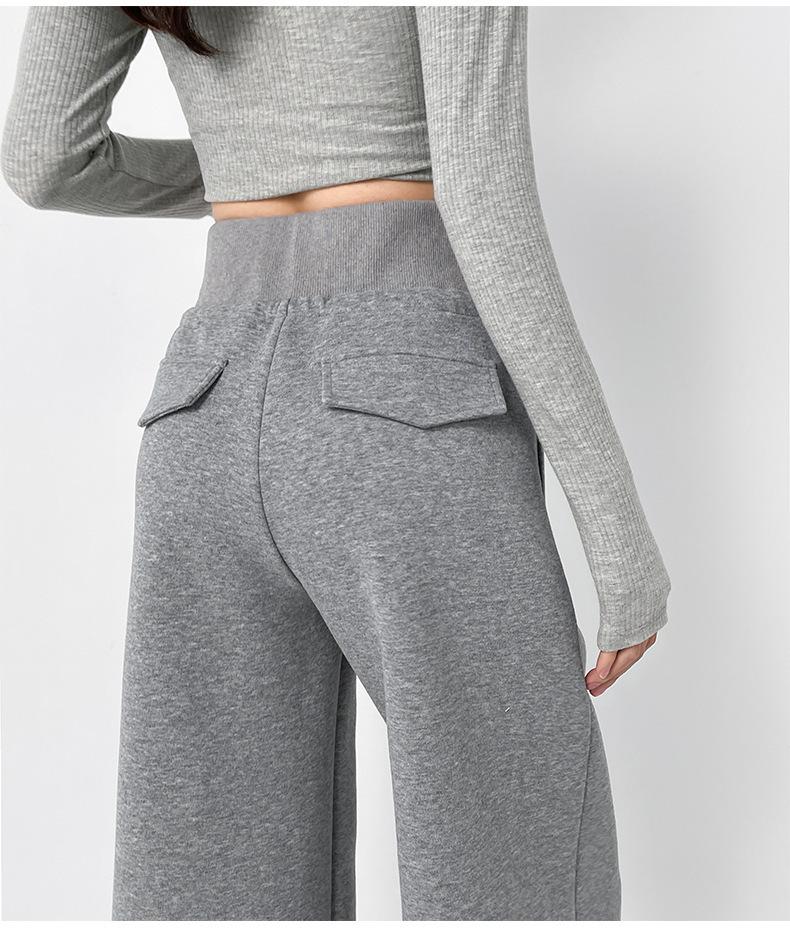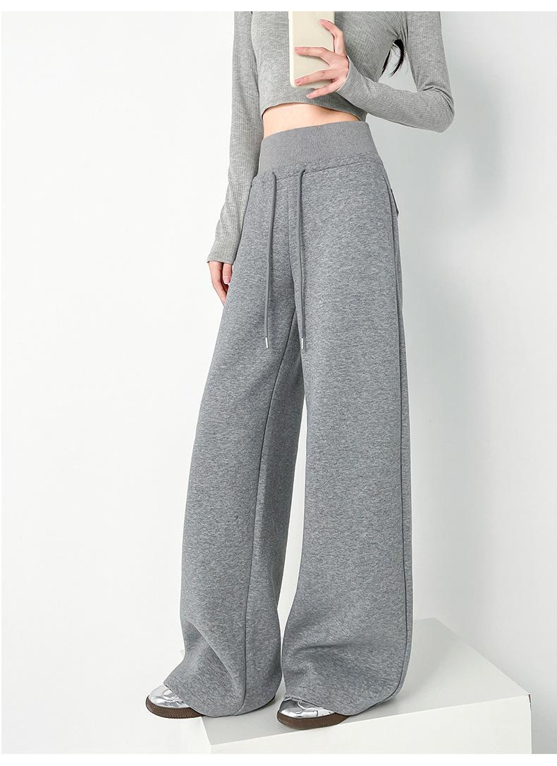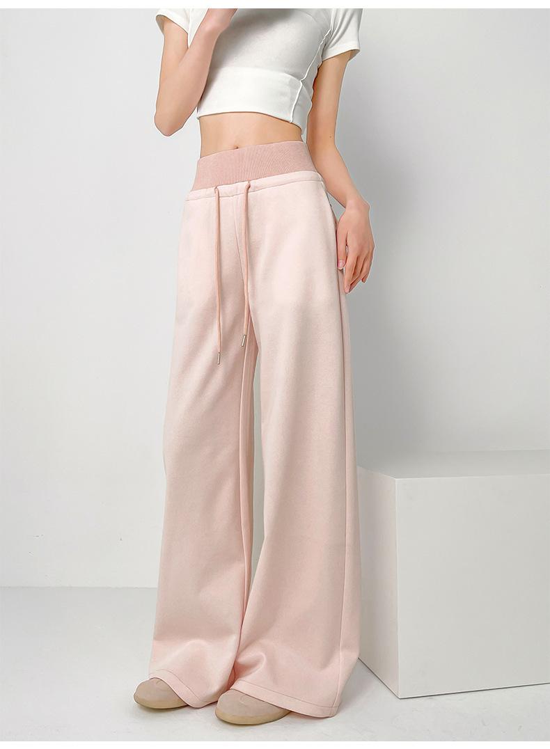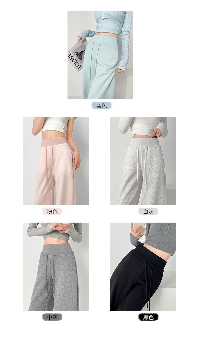 Pantalones Casuales de Pierna Ancha de Cintura Alta para Mujer Primavera 2025 Nuevos Pantalones de Chándal Rectos Sueltos de Cintura Alta Drapeados Largos Deportivos