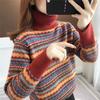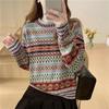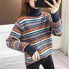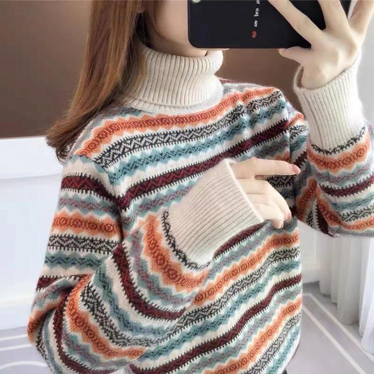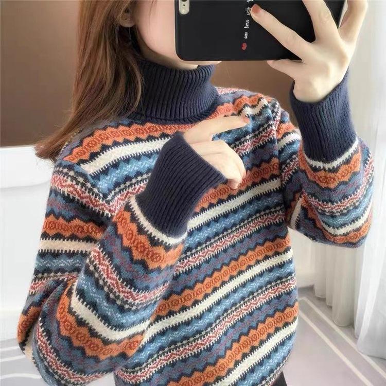 Suéter Grueso de Cuello Alto para Dama Otoño Invierno 2025 Nuevo Estilo Étnico Retro Suéter Tejido Versátil Holgado Top
