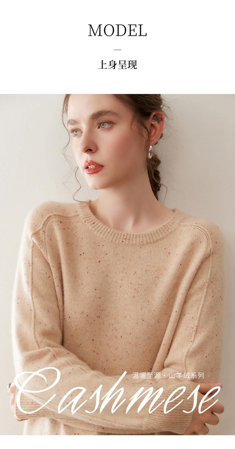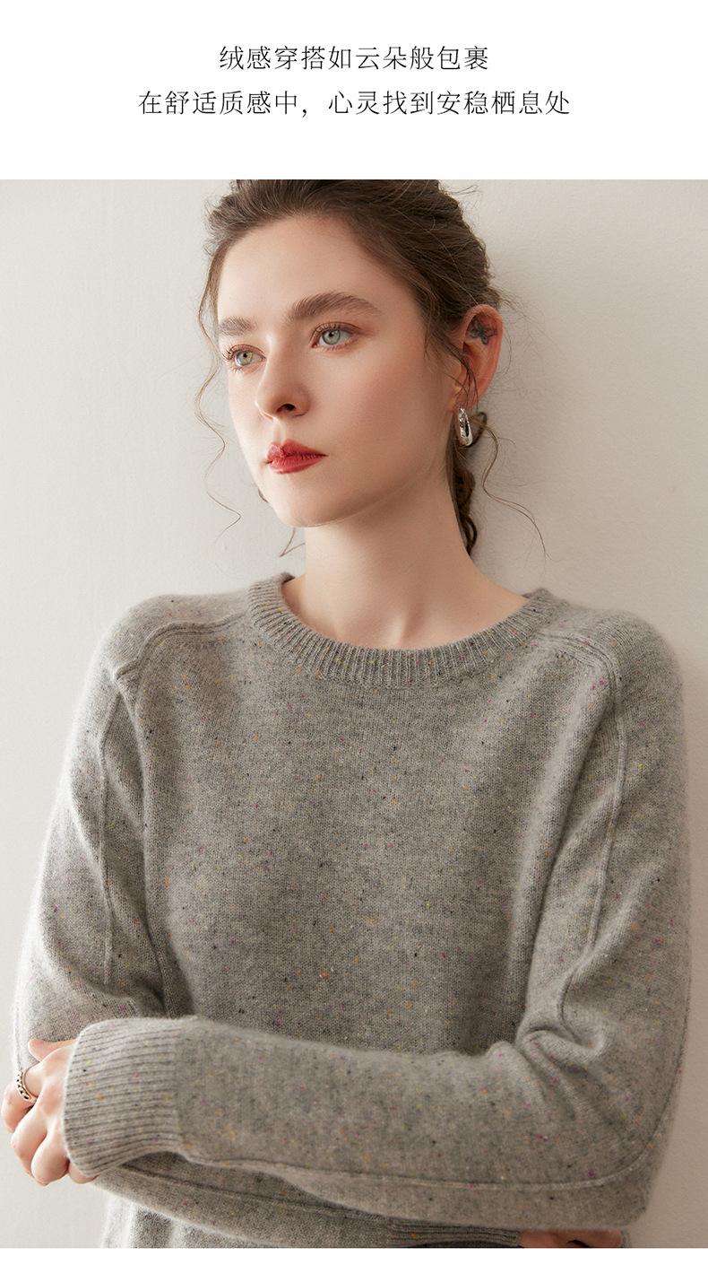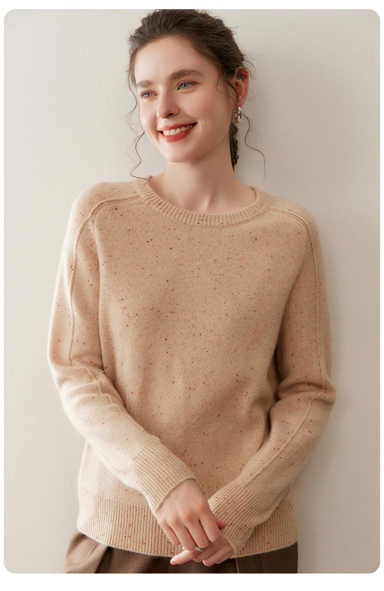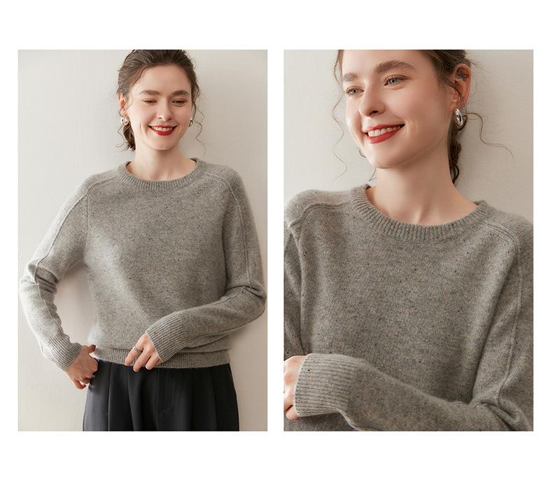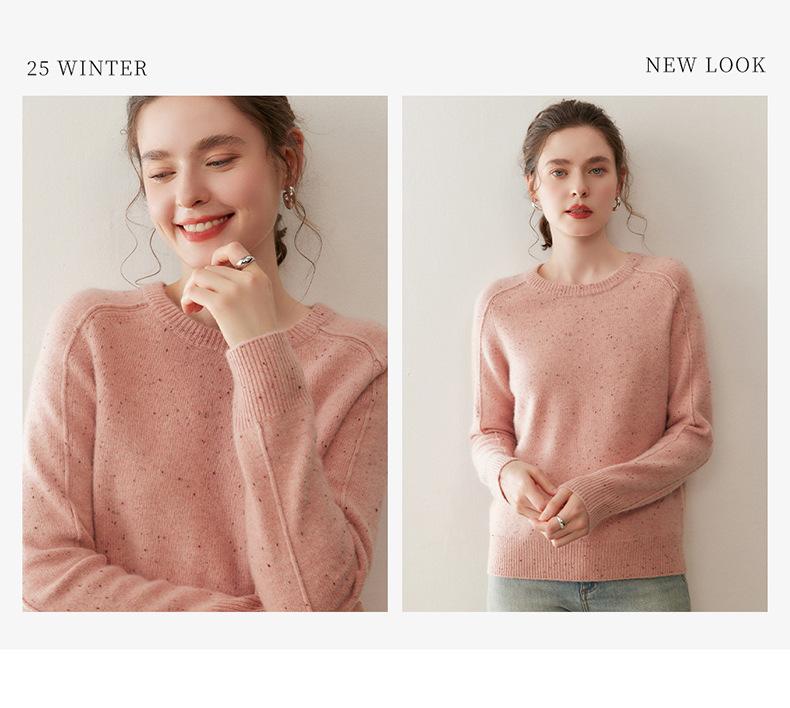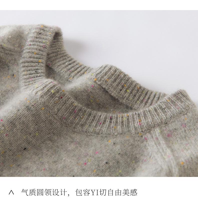 Suéter de cachemira para mujer con diseño de estilo holgazán de hilo moteado de color, suéter de punto de cuello redondo suelto para otoño/invierno, top casual de moda