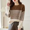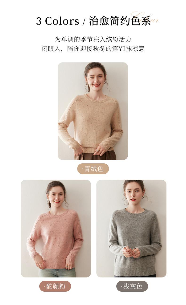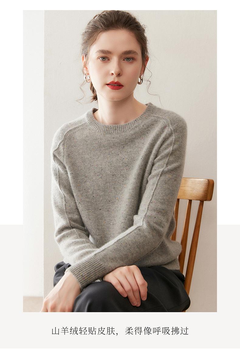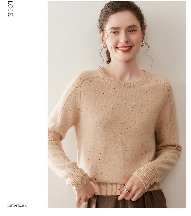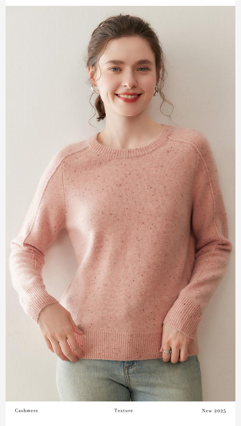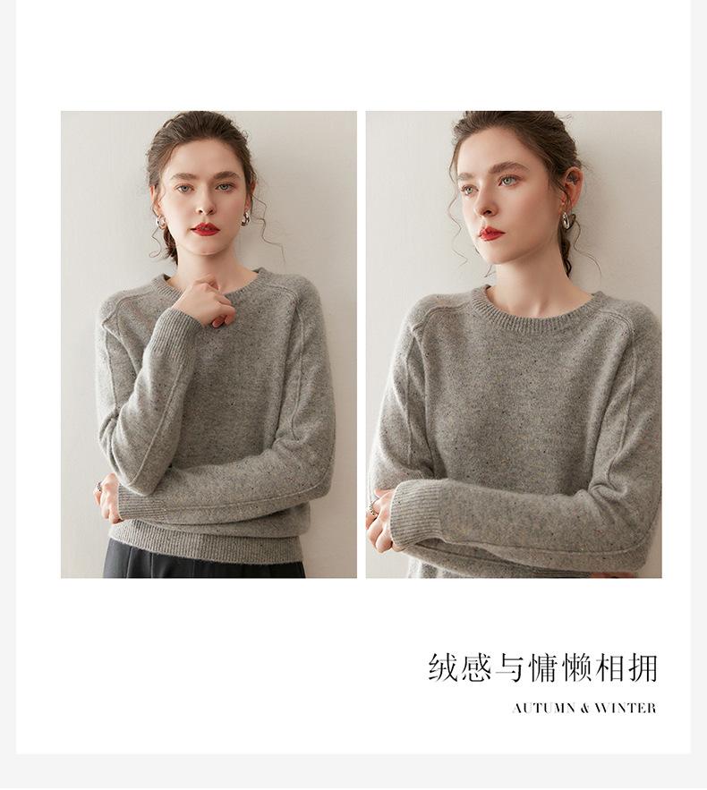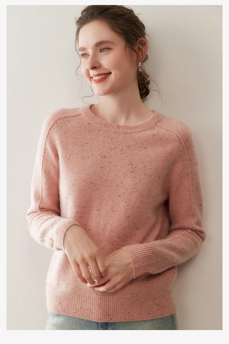 Suéter de cachemira para mujer con diseño de estilo holgazán de hilo moteado de color, suéter de punto de cuello redondo suelto para otoño/invierno, top casual de moda