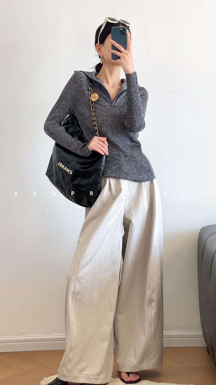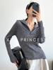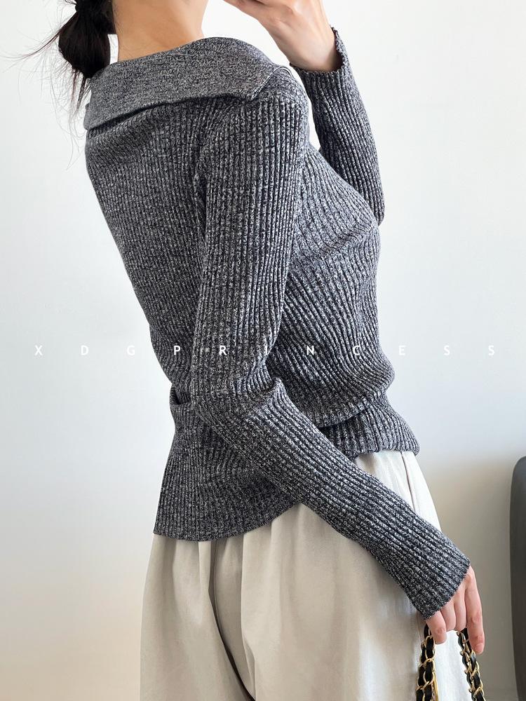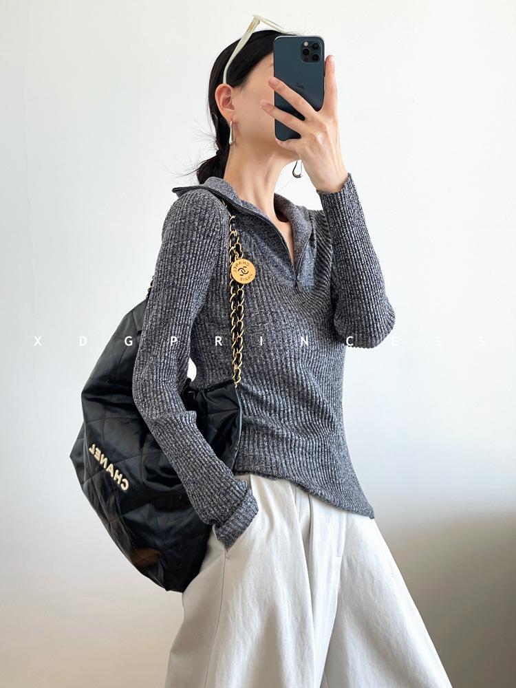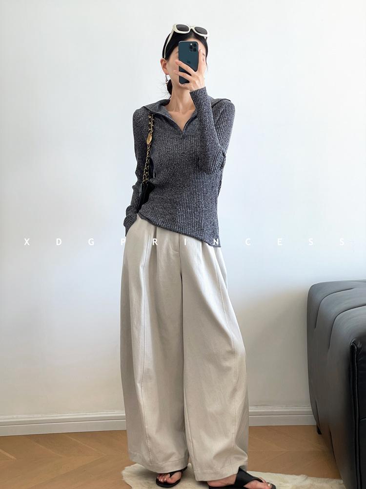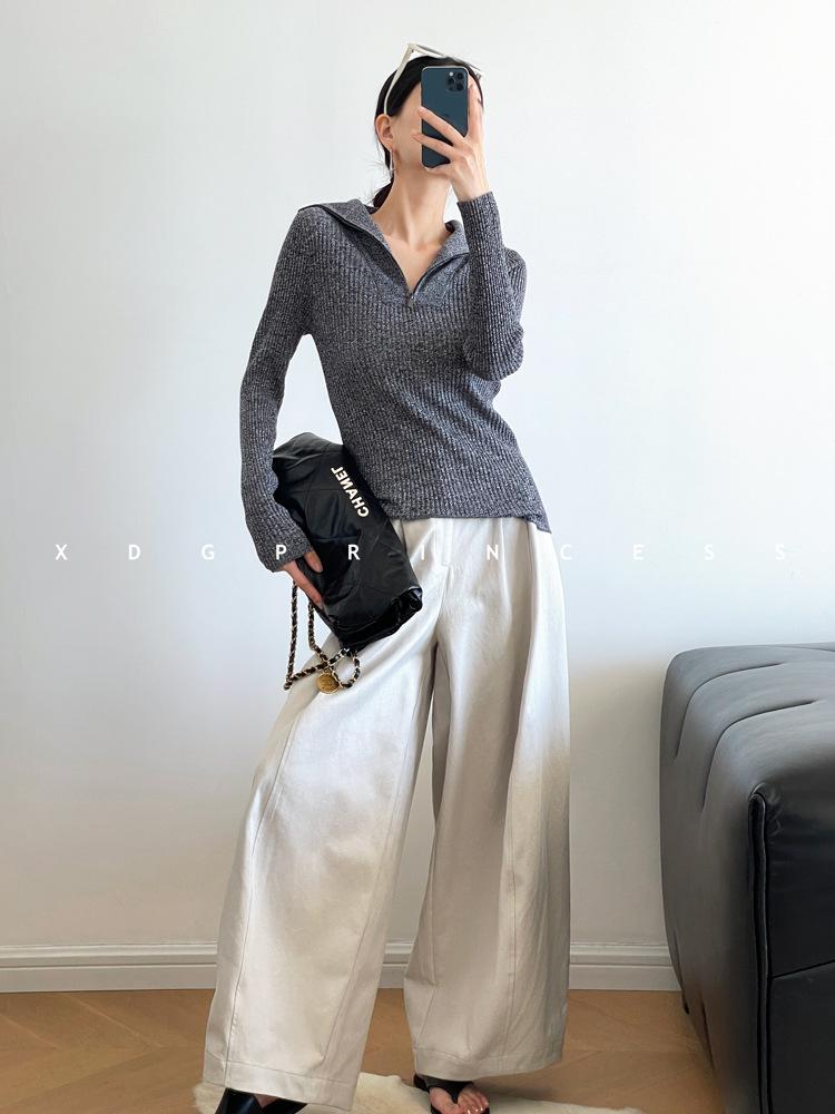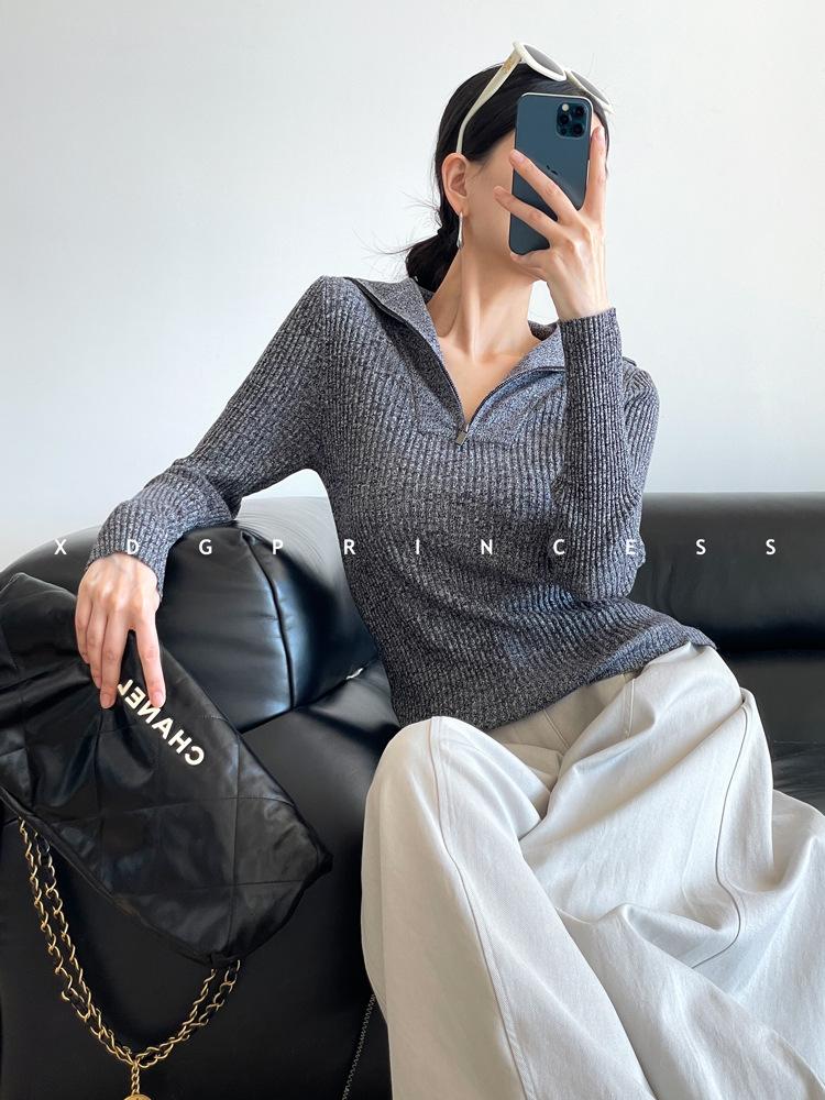 Suéter Tejido Simple de Lana Merino Retro con Cuello de Cremallera para Mujer Primavera Otoño Adelgazante Ropa Interior Suéter Top 082