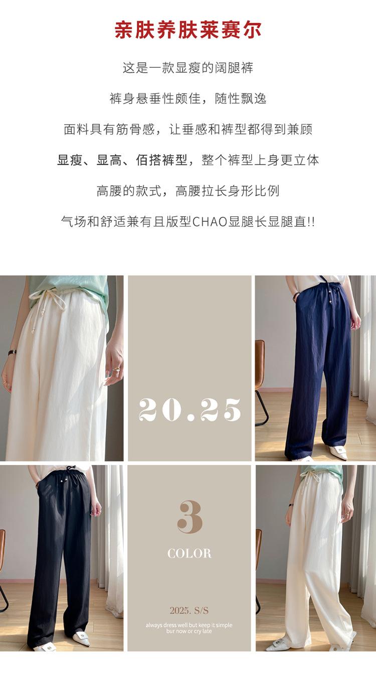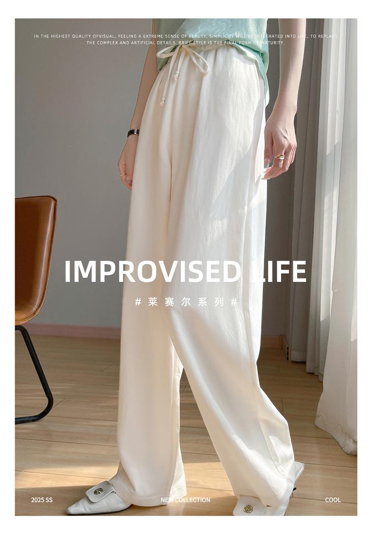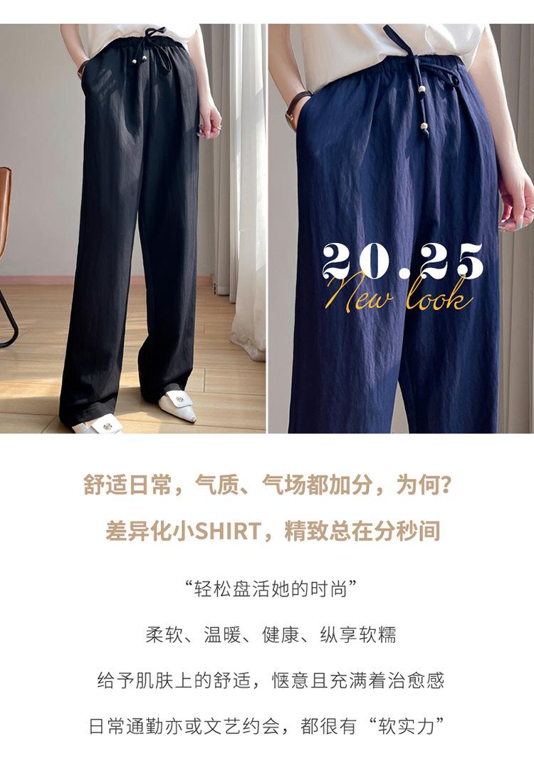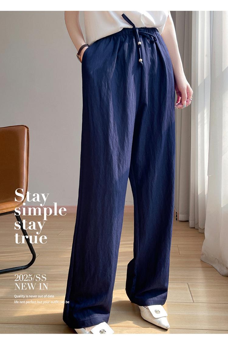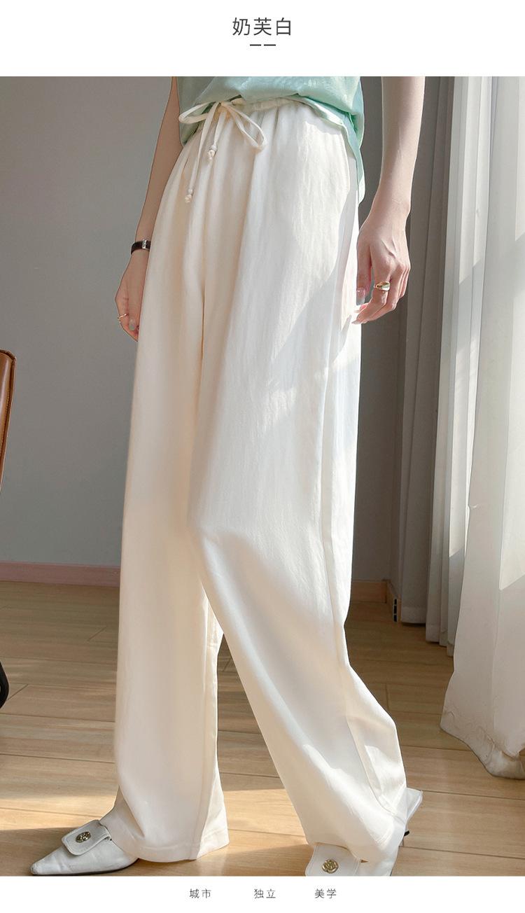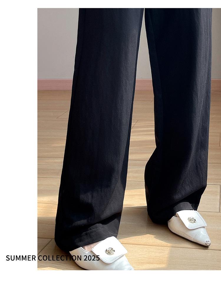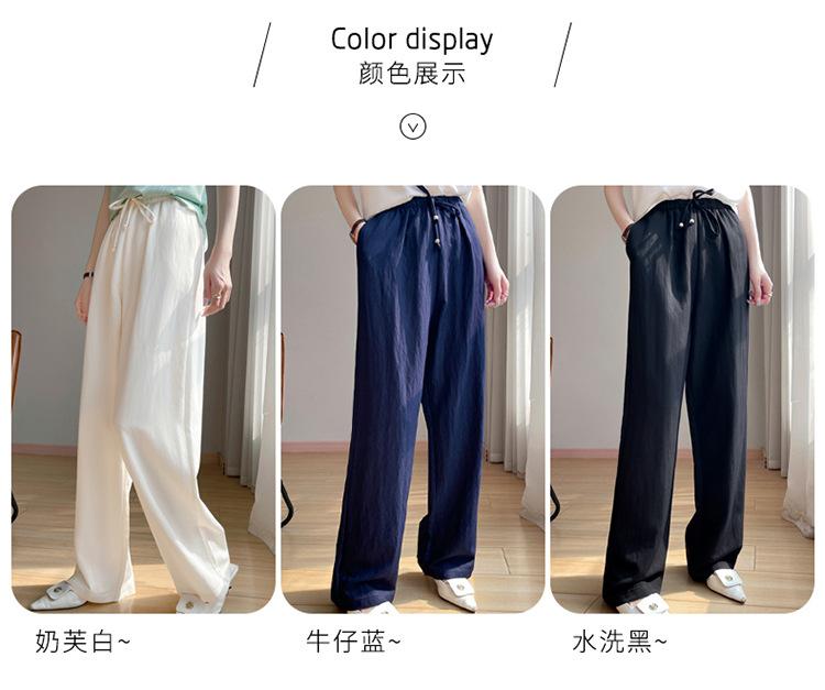 2025 Primavera y Verano Nuevo Pantalón Casual Combinable para Mujer Pantalón de Pierna Ancha con Colgante Diseño Holgado de Cintura Alta Pantalón Delgado