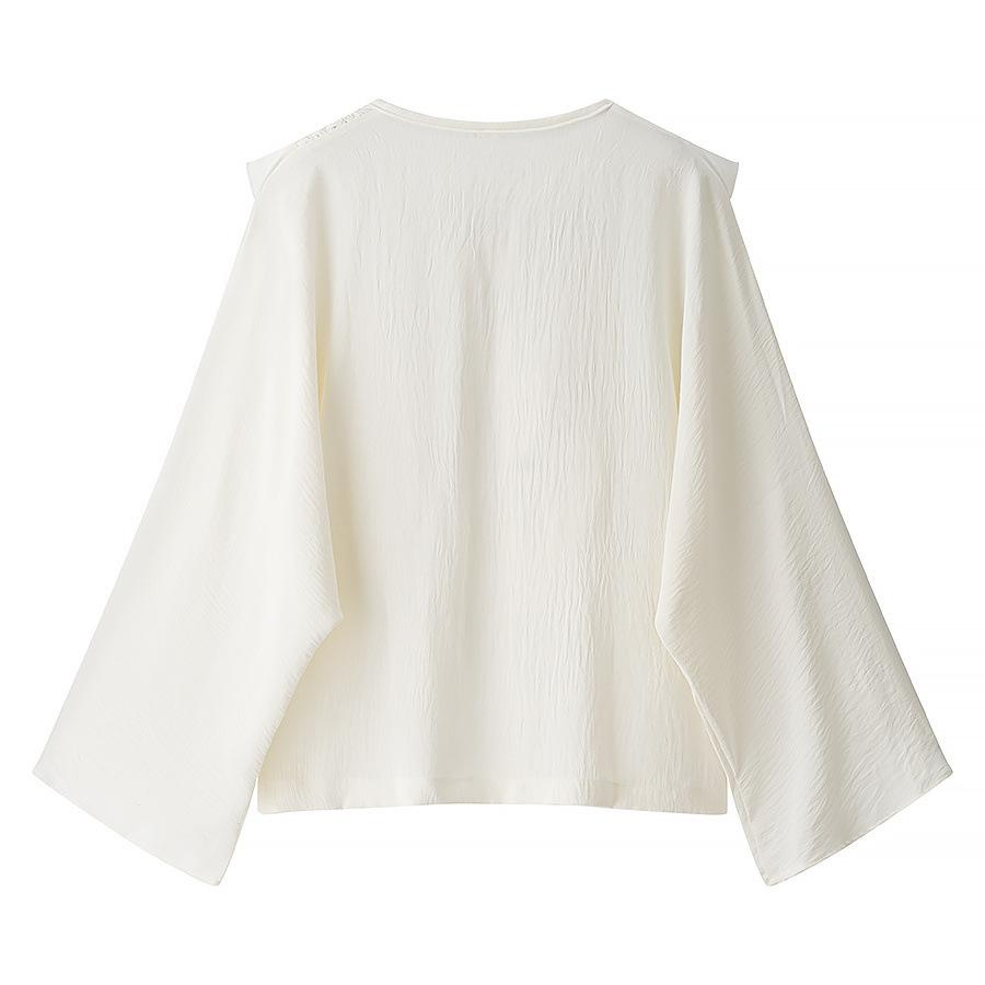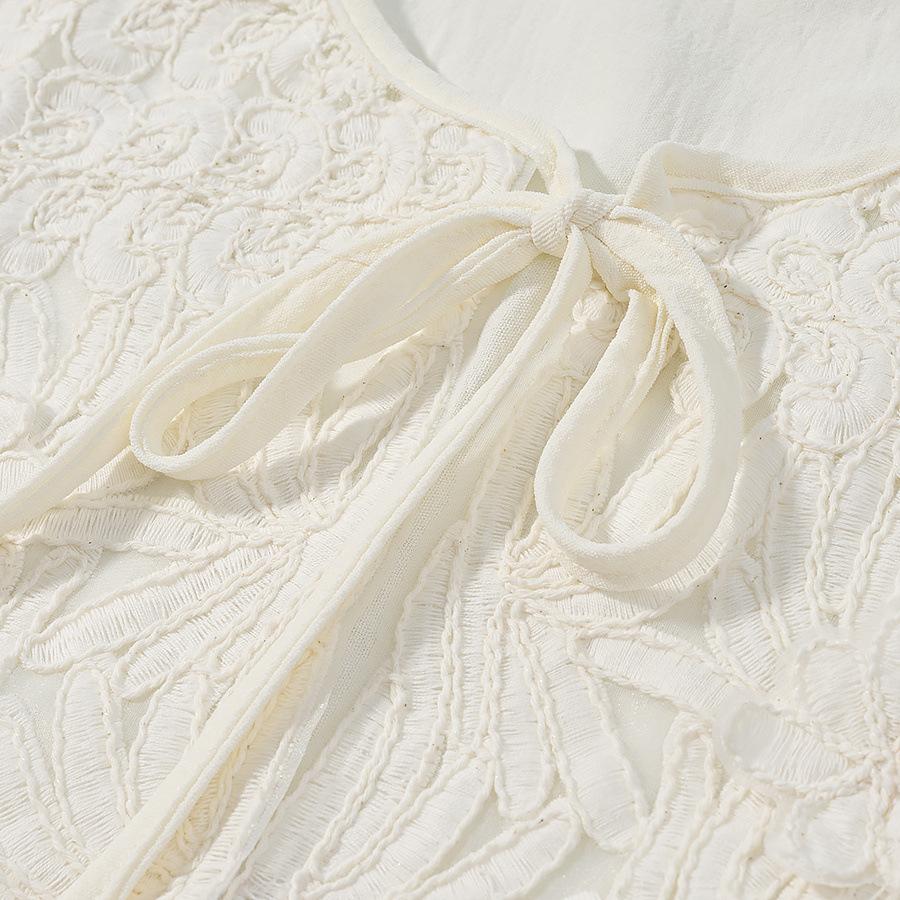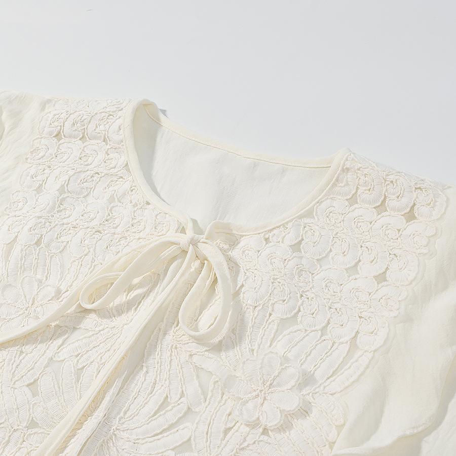 za Ropa casual para mujer transfronteriza europea y americana 2025, conjunto de moda con cuello redondo, lazo y calado: camisa casual + minifalda calada