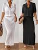 Para Europeo y Americano Transfronterizo 2025 Traje Casual de Mujer Moderno Cuello Redondo con Cordones Recorte Camisa Casual + Falda con Recortes