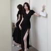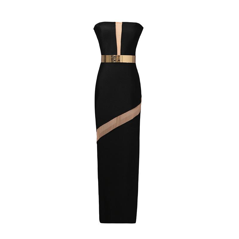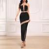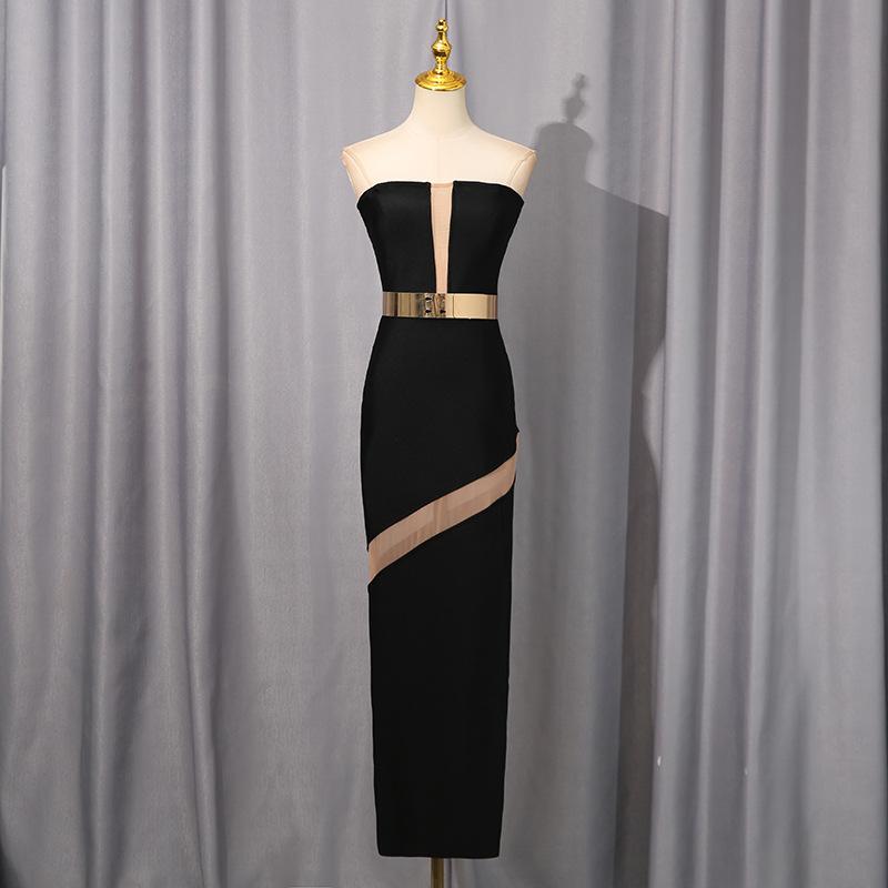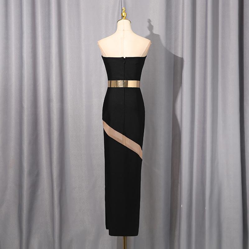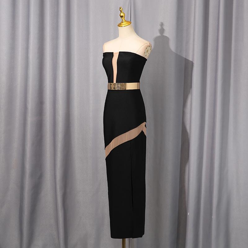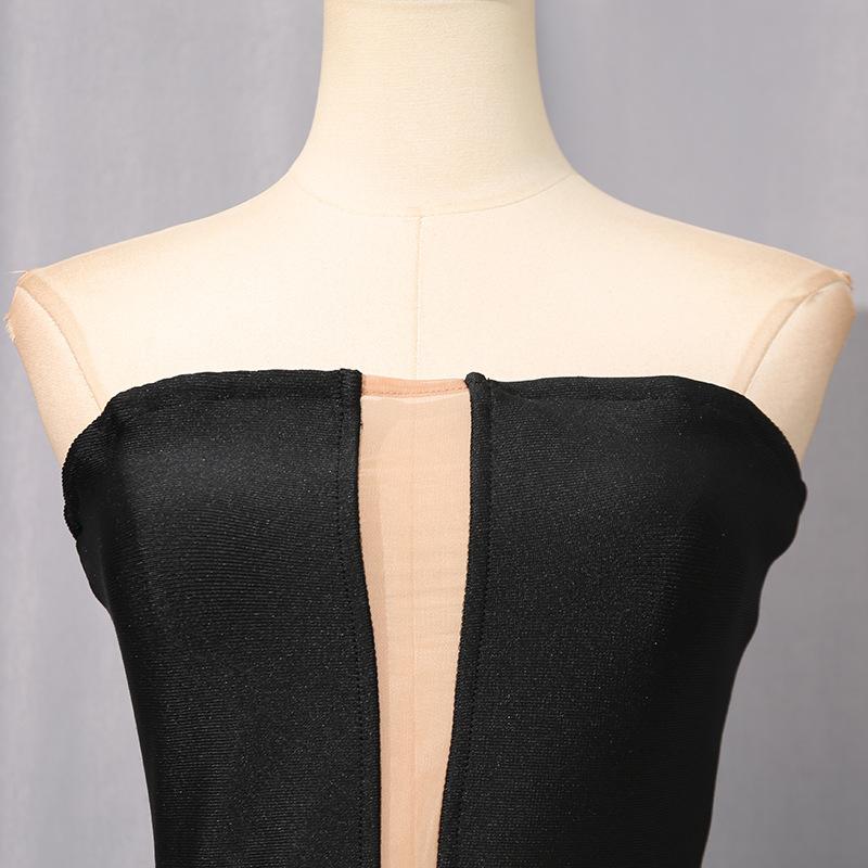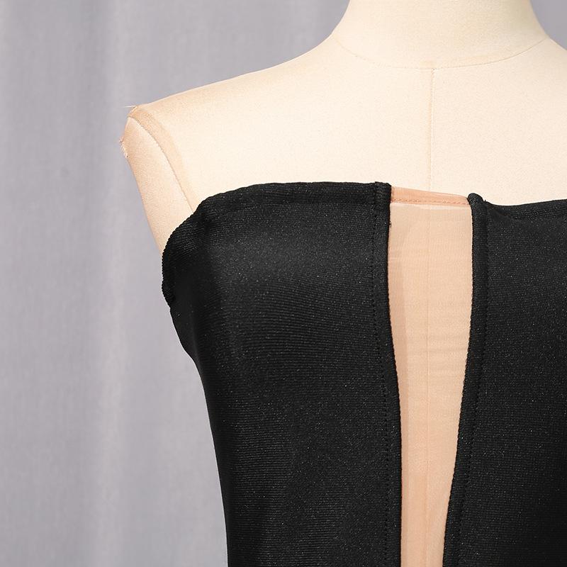 Vestido de Fiesta Sexy Ajustado sin Tirantes Negro 2025 Nuevo Verano Abertura Lateral Transparente Cuello en V
