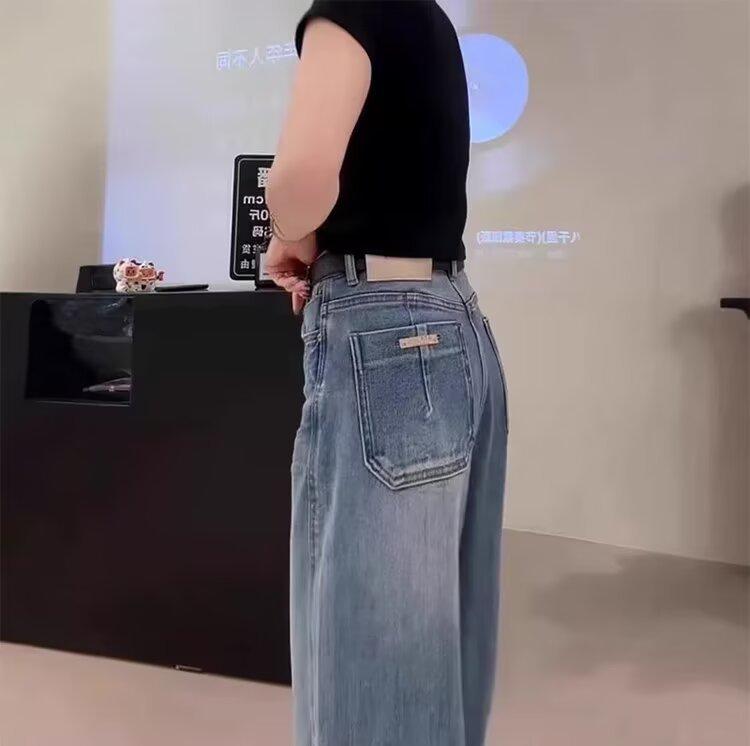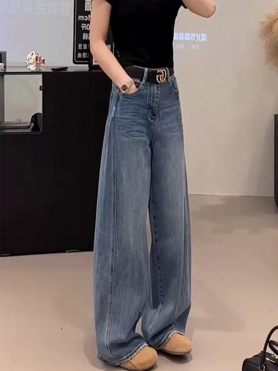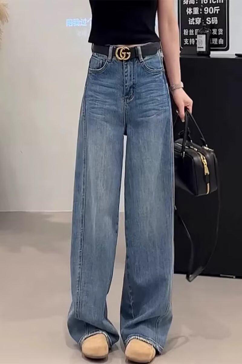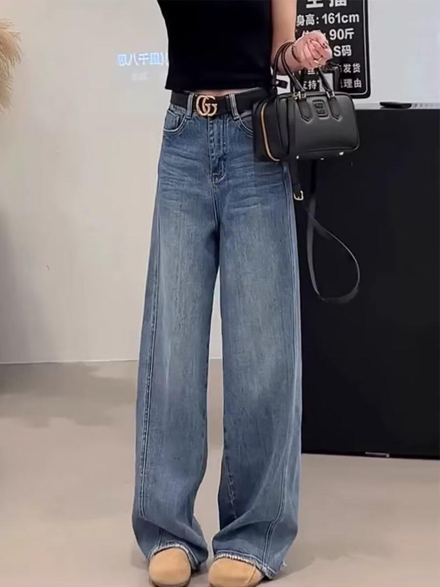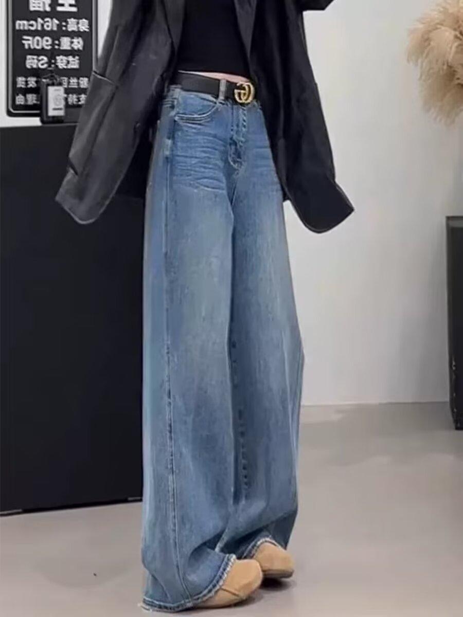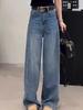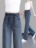 Ropa para Mujer de Talla Grande 2025 Primavera y Otoño Nueva Moda Jeans de Pierna Ancha de Cintura Alta MM Gorditas Sueltos Adelgazantes Pierna Recta Pantalones Largos hasta el Piso