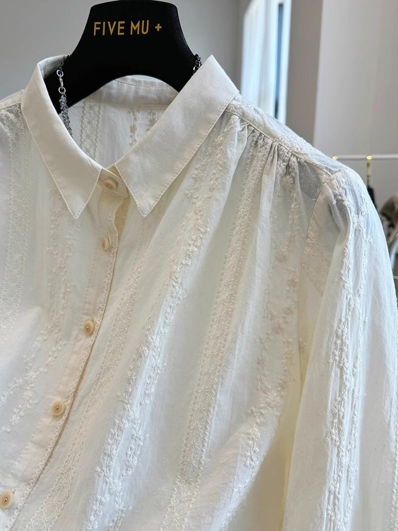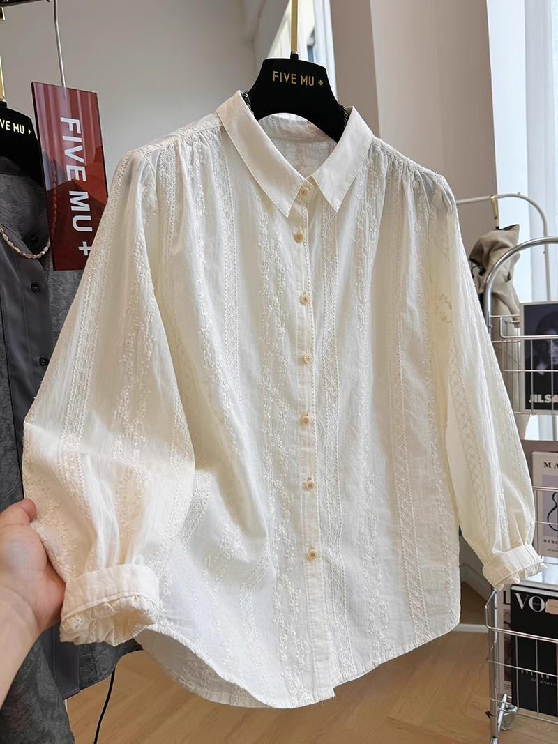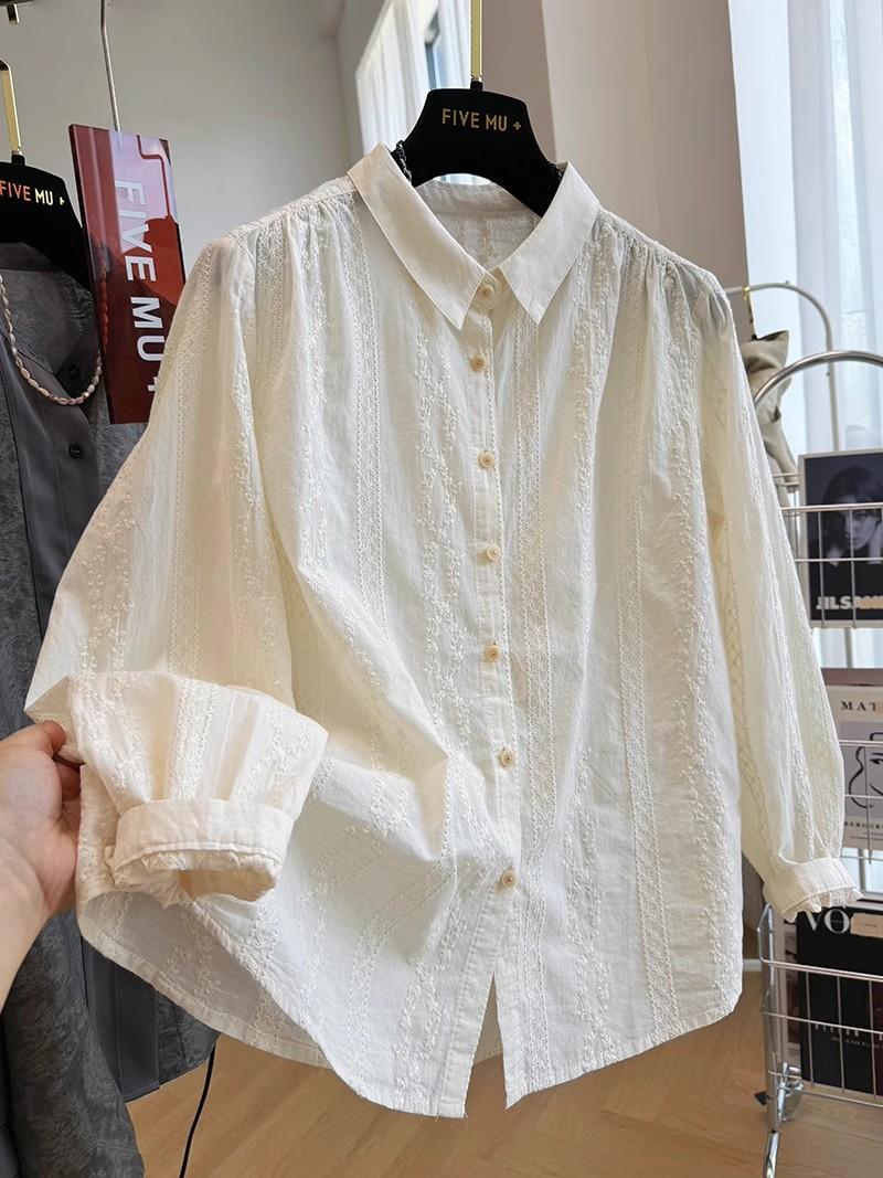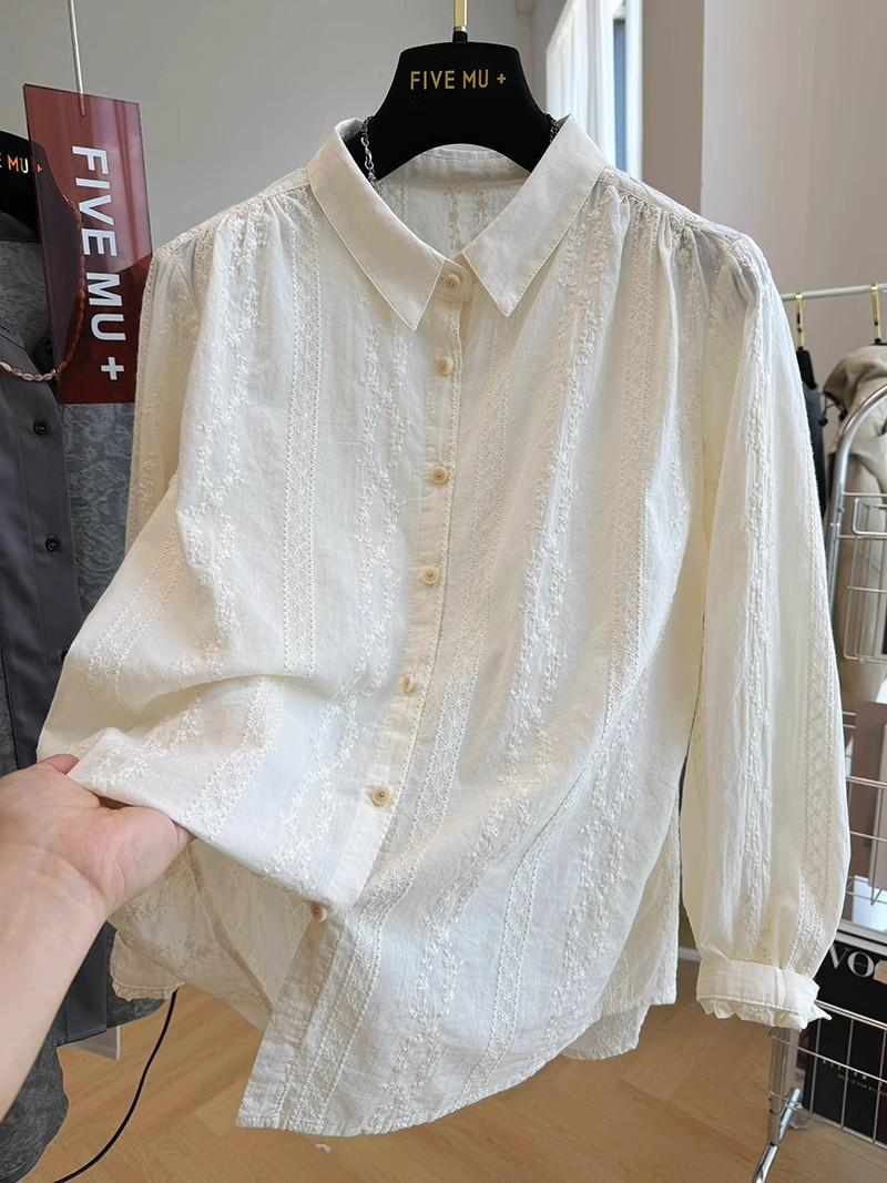 Camisa Coreana de Otoño Temprano Nueva Bordado Pesado Manga Larga Mujer Moda Temperamento Reductora de Edad Blusa Top Francés
