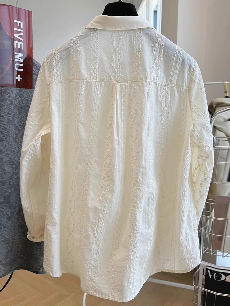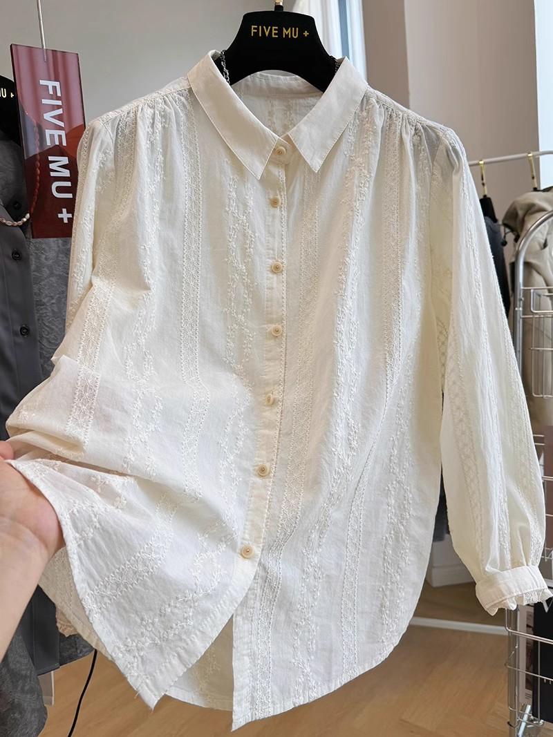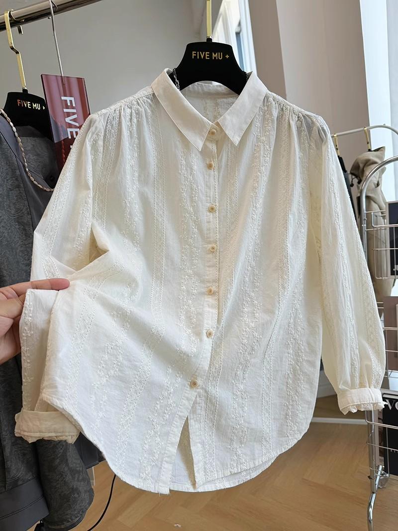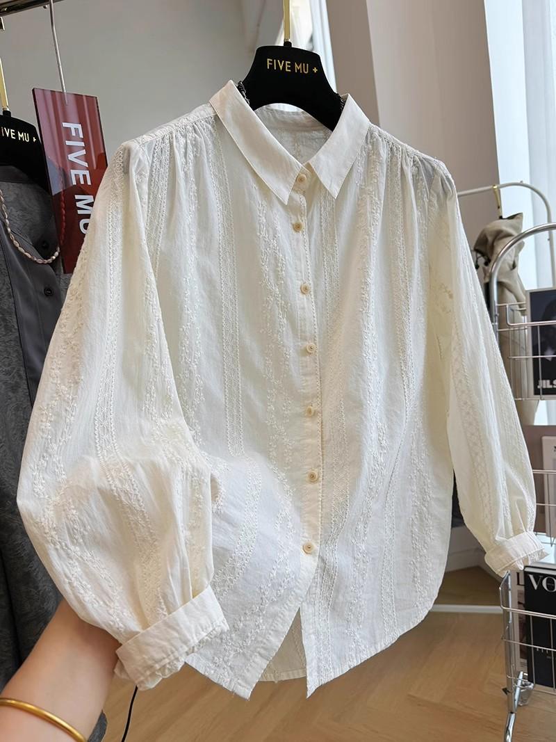 Camisa Coreana de Otoño Temprano Nueva Bordado Pesado Manga Larga Mujer Moda Temperamento Reductora de Edad Blusa Top Francés