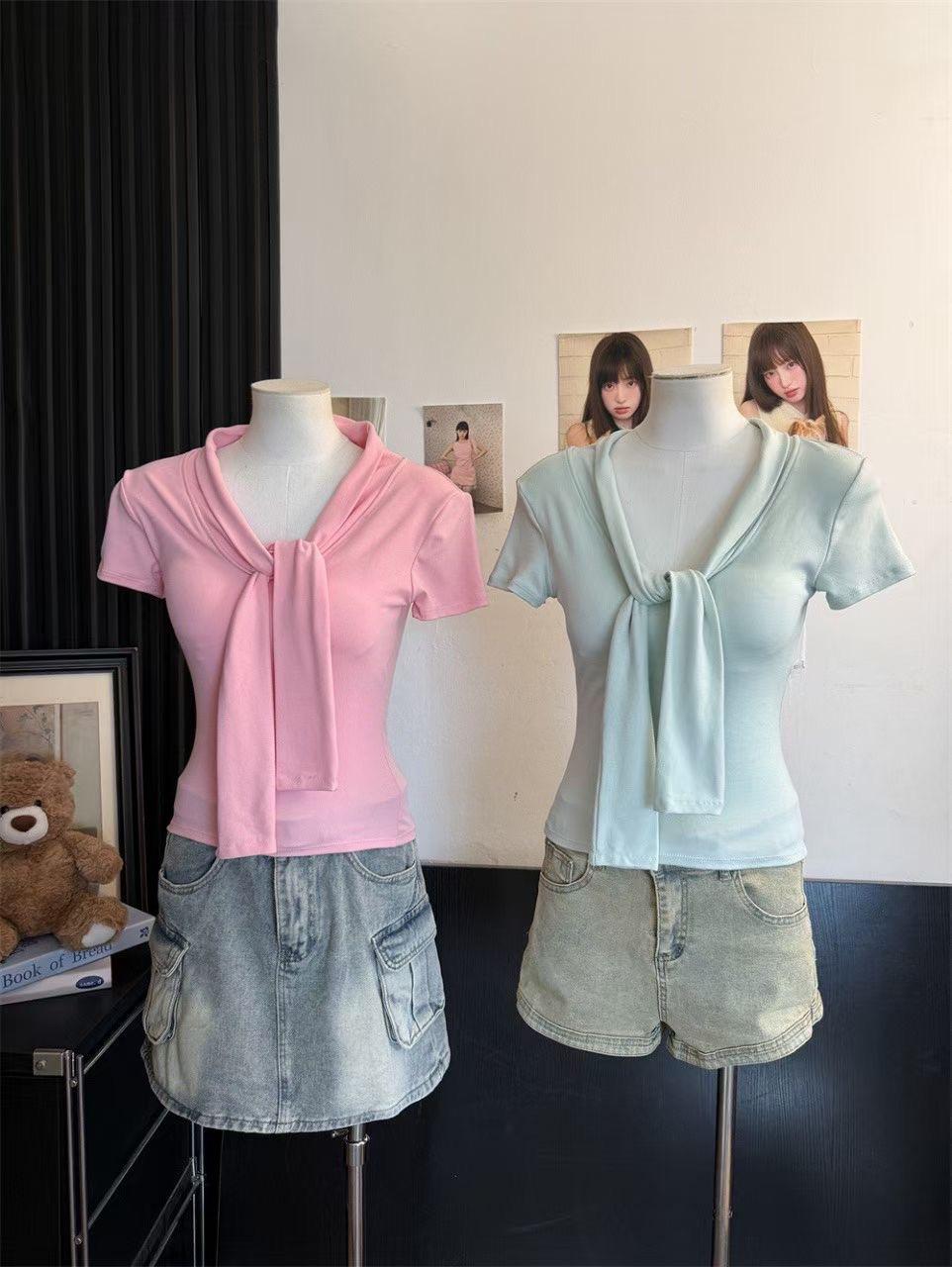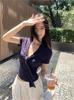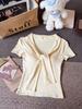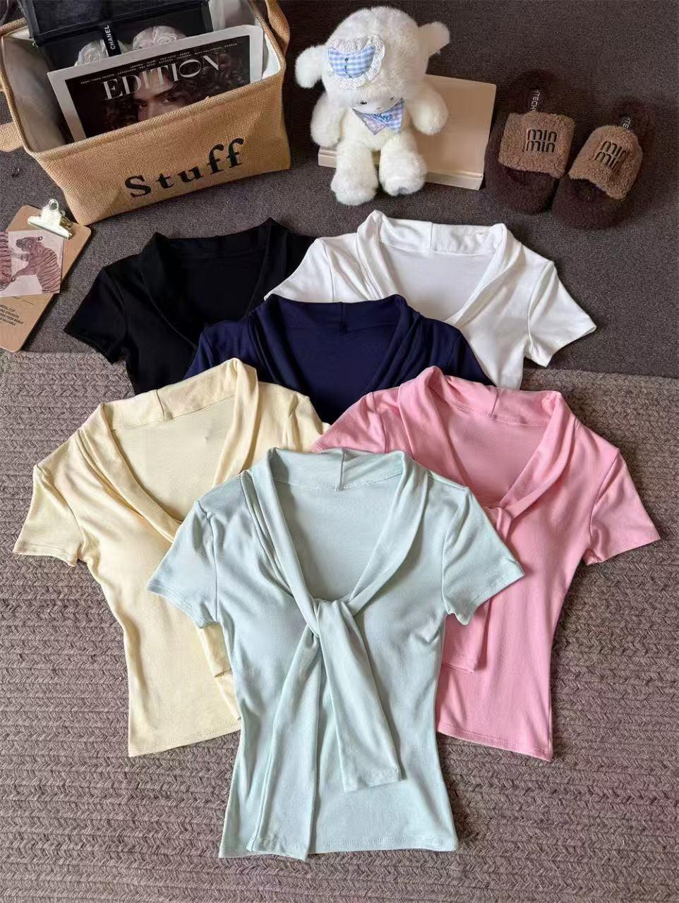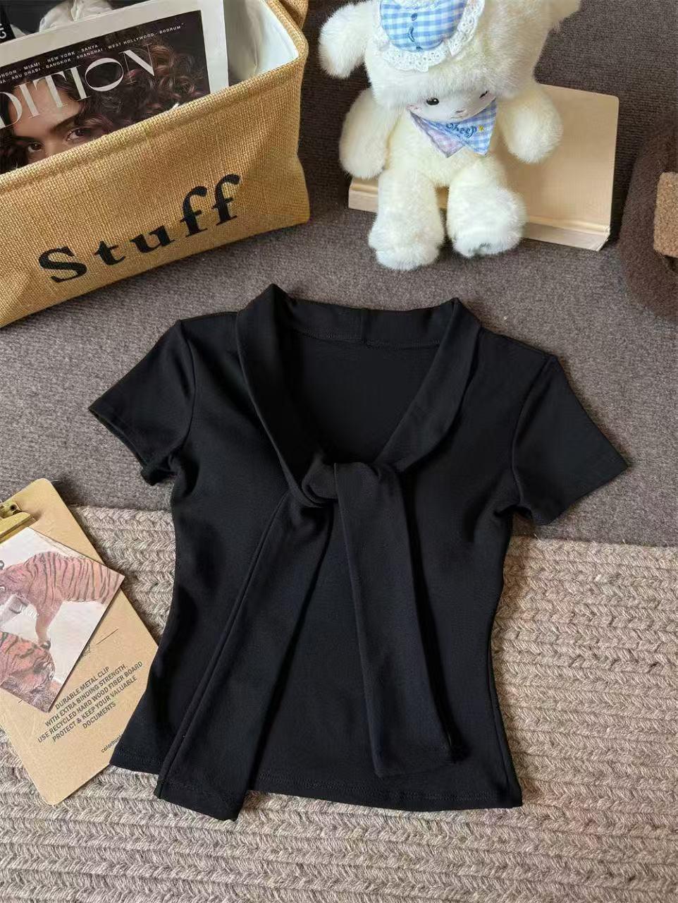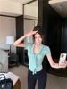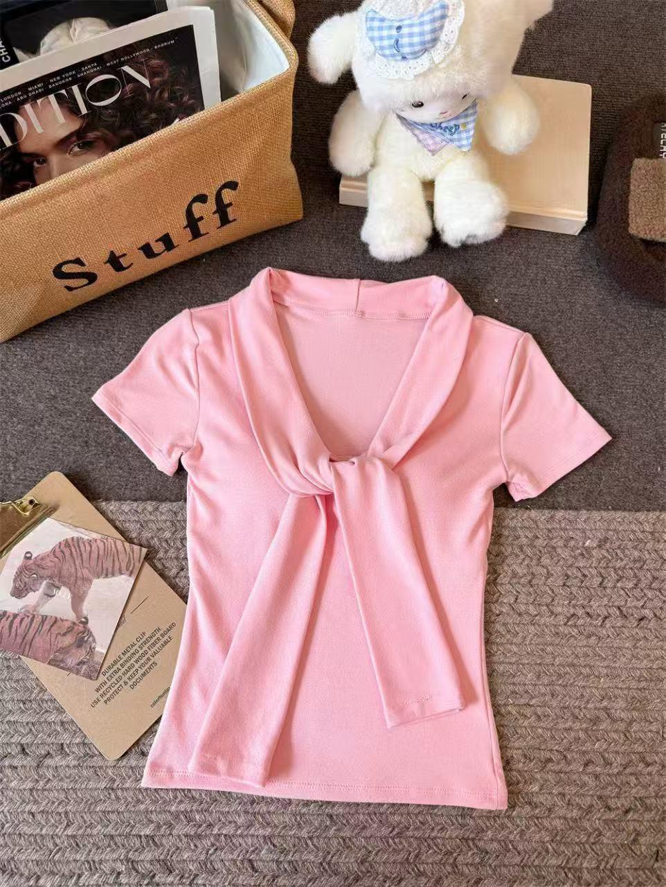 Camiseta chic casual con cordones para mujer verano nuevo temperamento en capas versátil ajuste ceñido simple plisado prenda exterior