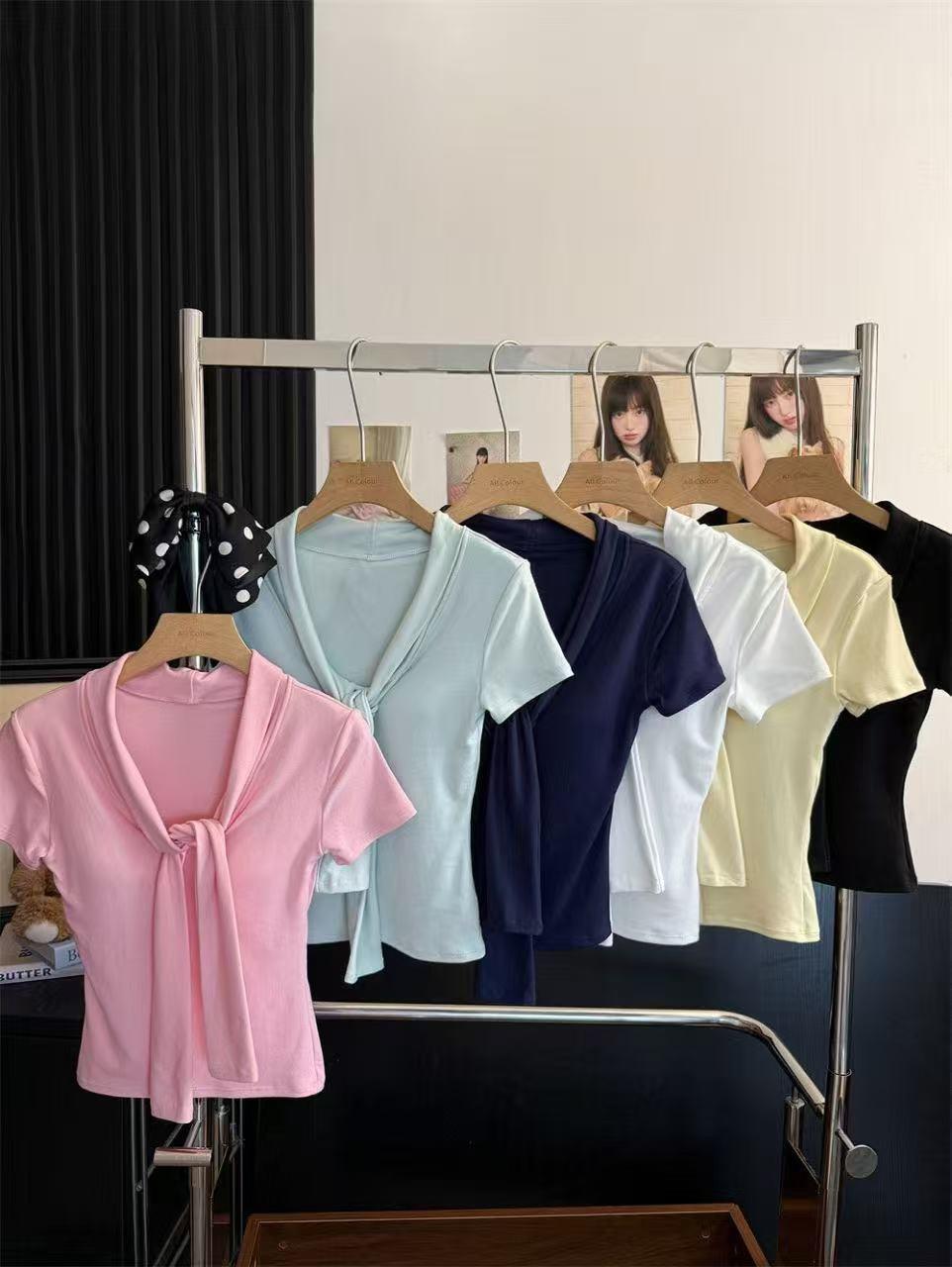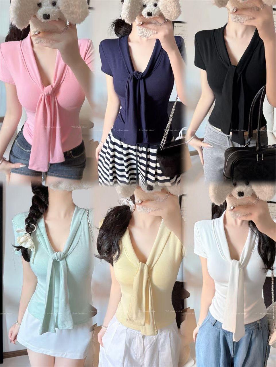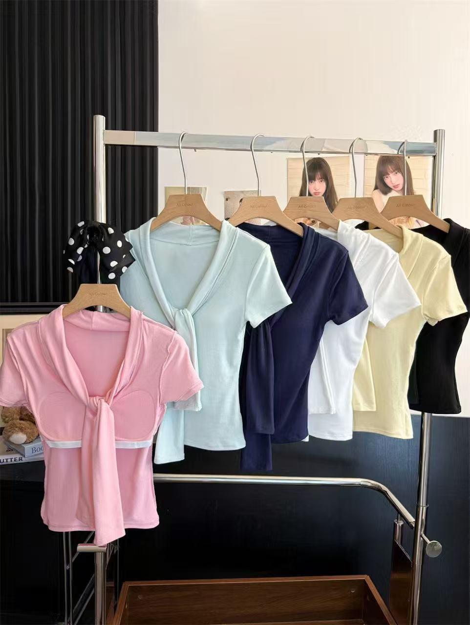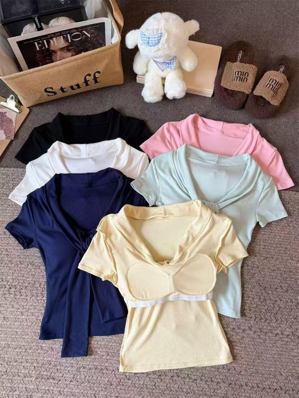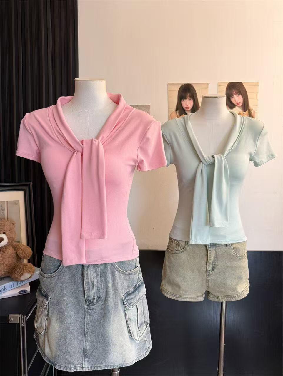 Camiseta chic casual con cordones para mujer verano nuevo temperamento en capas versátil ajuste ceñido simple plisado prenda exterior