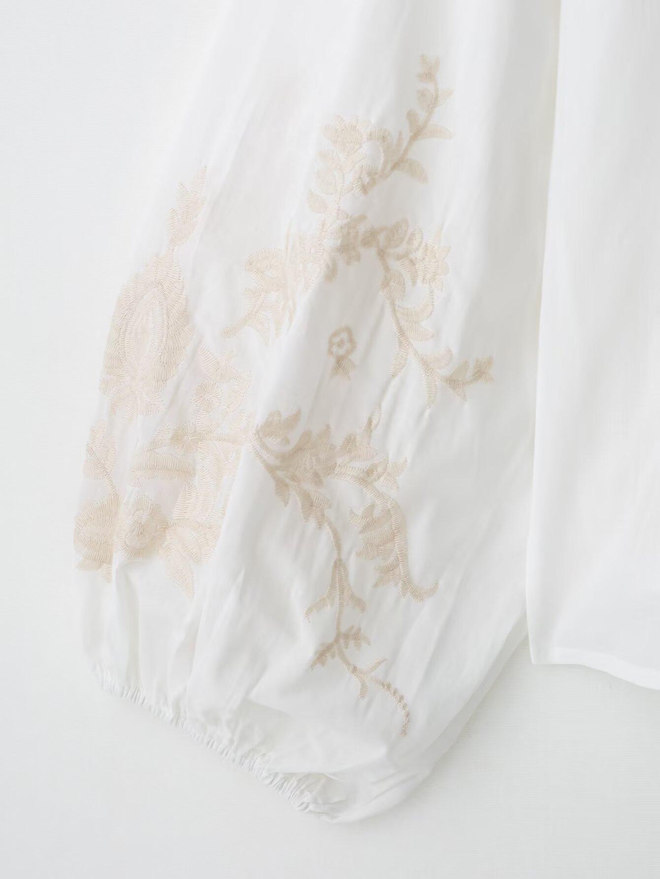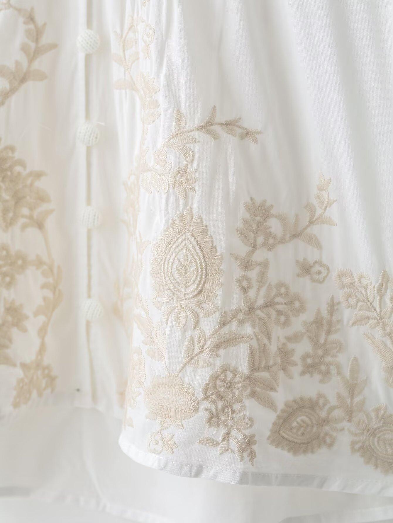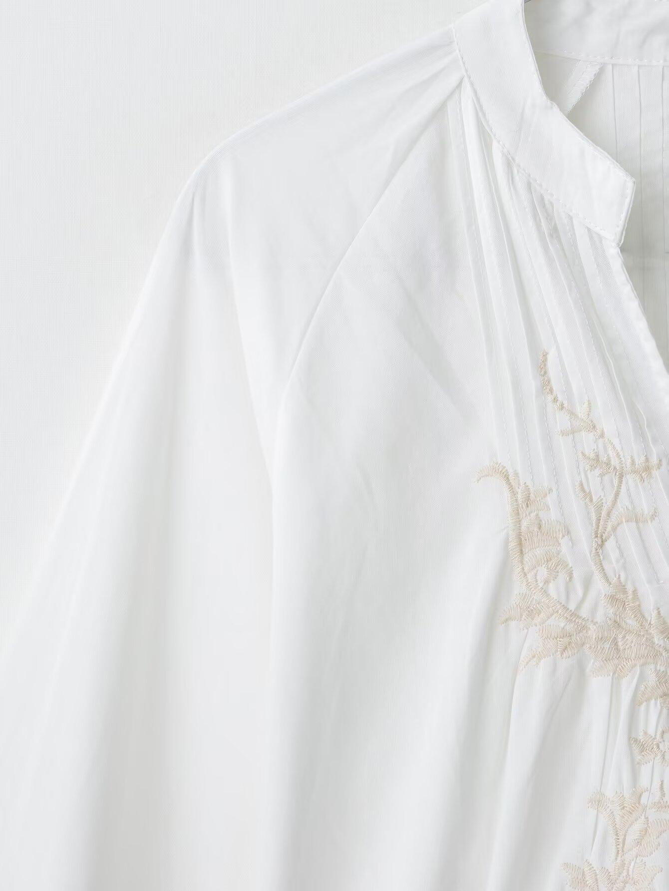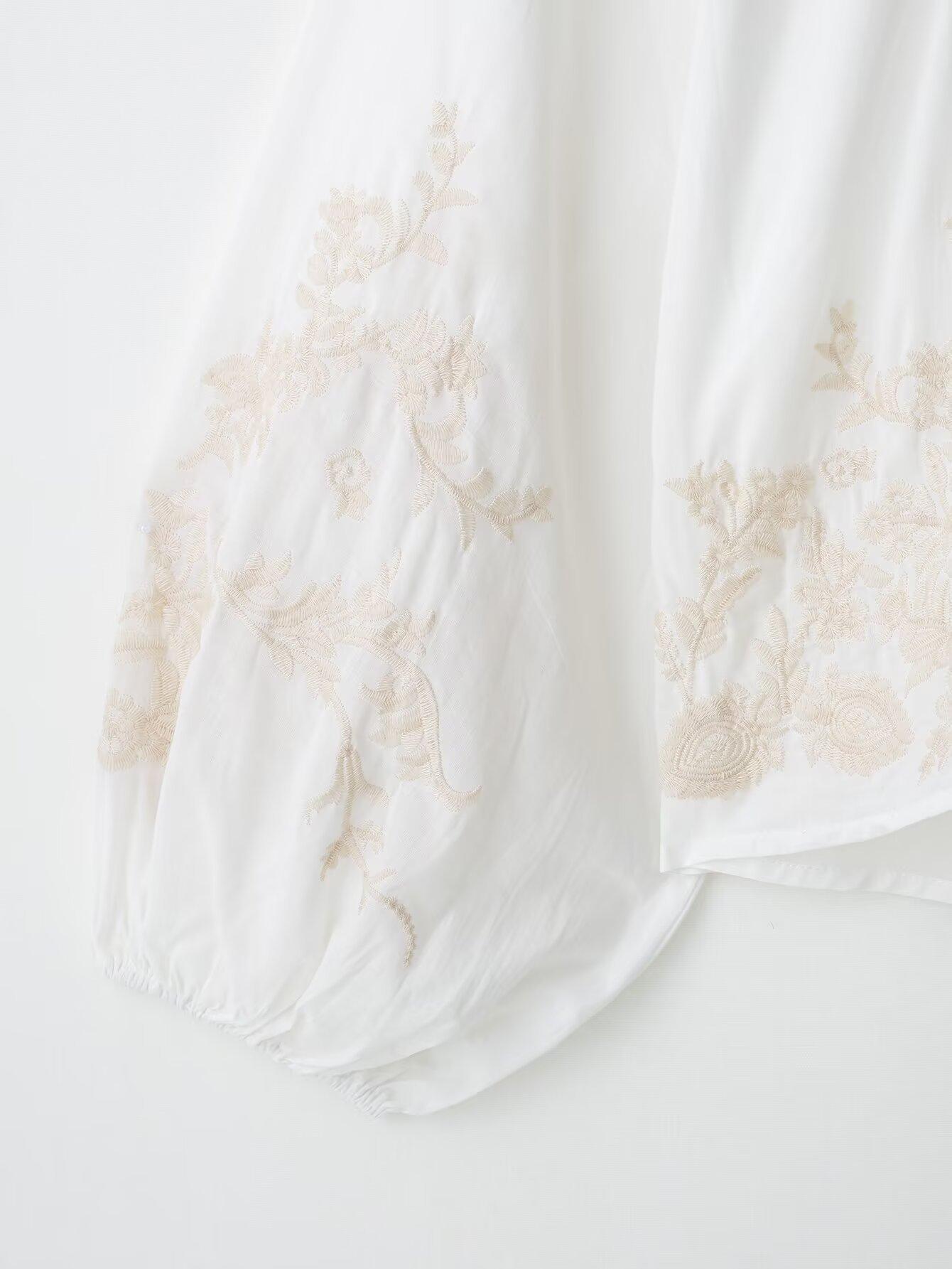 Exportación Transfronteriza Ropa de Mujer 2025 Verano Estilo Europeo y Americano Cuello en V Manga Larga Camisas con Pliegues y Flores Bordadas Tops para Mujer A36553