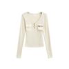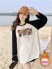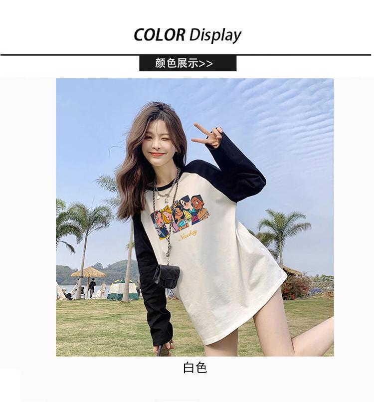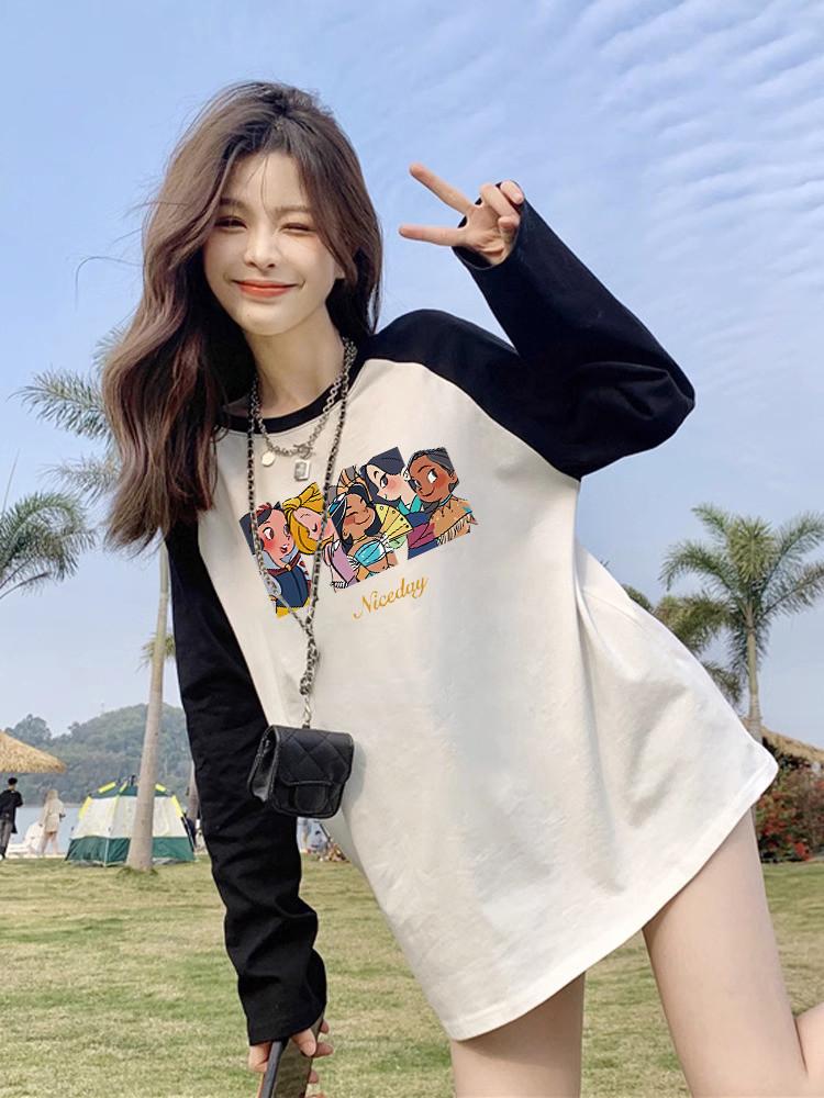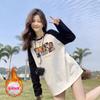Camiseta de Manga Larga de Algodón Puro con Cuello Redondo y Bloque de Color para Mujer Otoño Invierno Capa Interior Camiseta Base Terciopelo Alemán Calidez Top Versátil