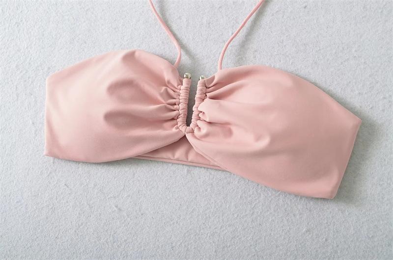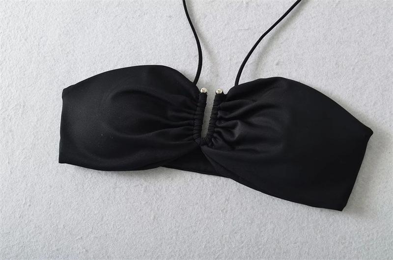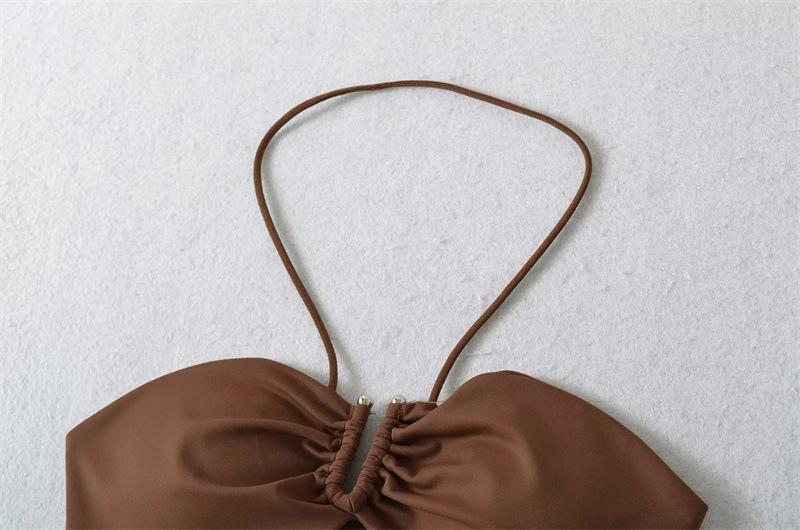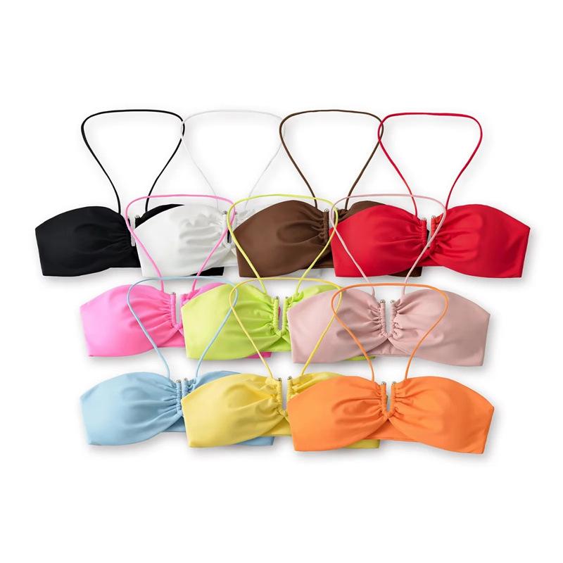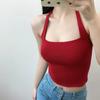 Sexy Dopamina Cuello en V Tirantes Espagueti Halter Jersey Bandeau Corto Espalda Hermosa Simple Moda Chica Caliente Ropa Interior Camisola Mujer