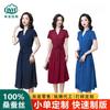 Vestido de Seda Verano 100% Seda de Morera Elegante Color Sólido Gama Alta Dama Talla Extra Madre de Mediana Edad Falda de Seda