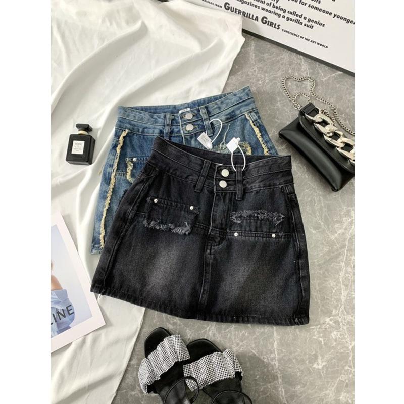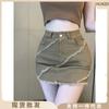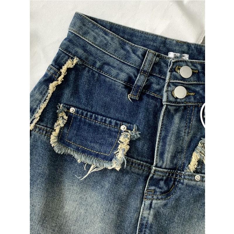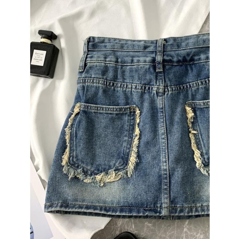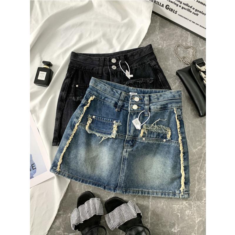 Falda de mezclilla retro para mujer Primavera y Verano 2025 Cintura alta Look adelgazante Diseño de borde crudo Línea A Falda corta que cubre poco los glúteos