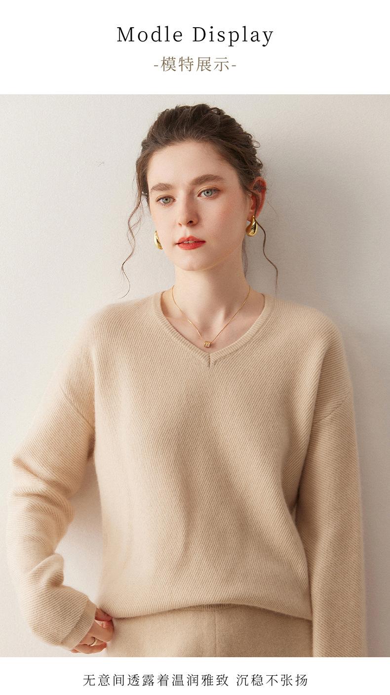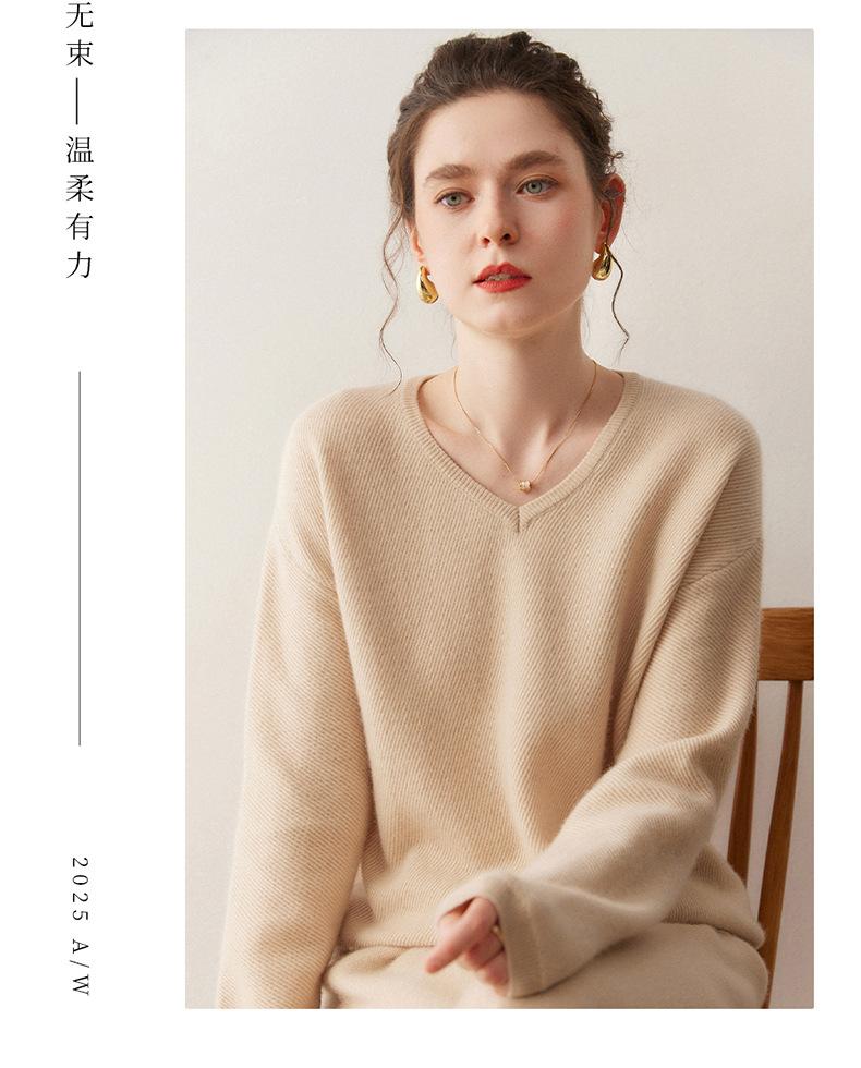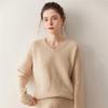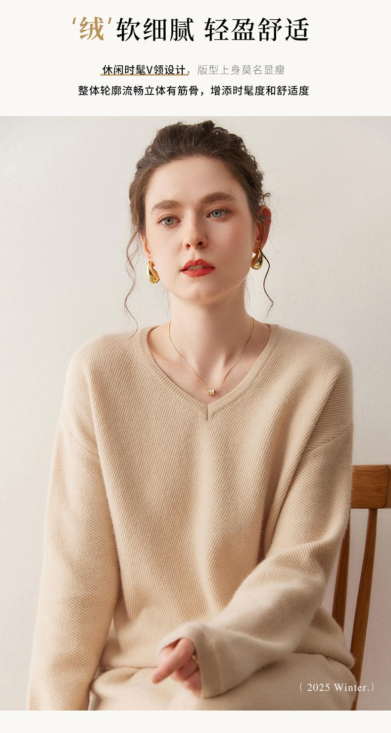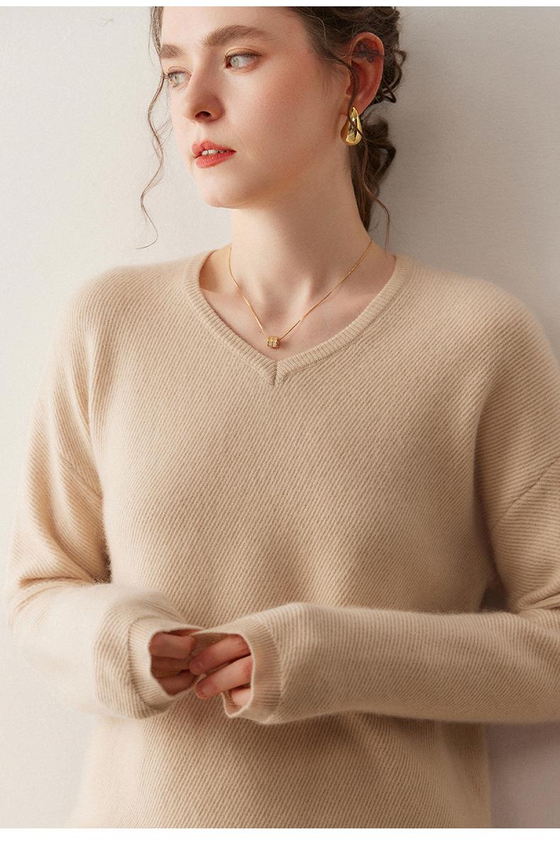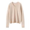 Lujo Ligero Cáscara de Cachemira de Alta Gama para Mujer Jersey de Cuello en V Tejido Sarga Suelto Otoño Invierno Jersey Grueso Suéter Camiseta Interior