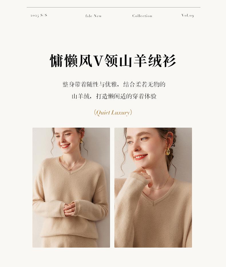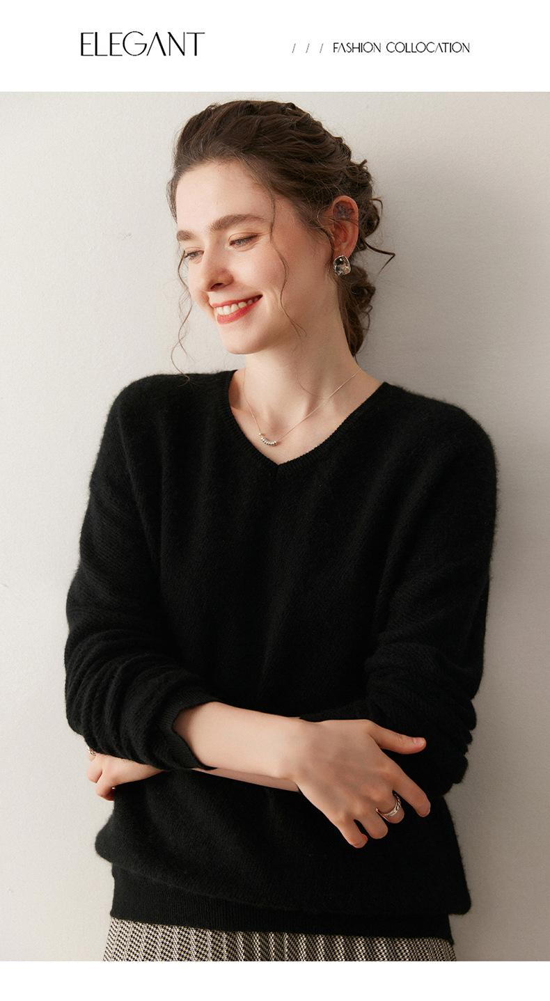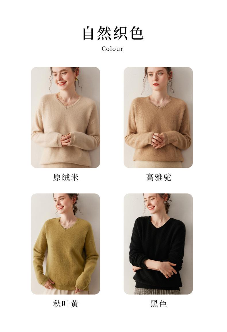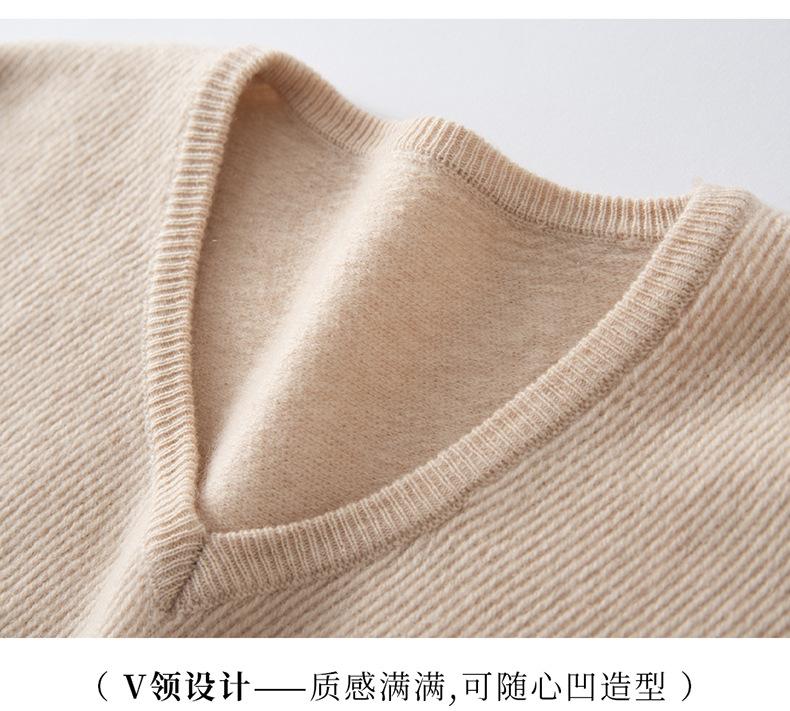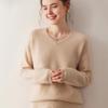 Lujo Ligero Cáscara de Cachemira de Alta Gama para Mujer Jersey de Cuello en V Tejido Sarga Suelto Otoño Invierno Jersey Grueso Suéter Camiseta Interior