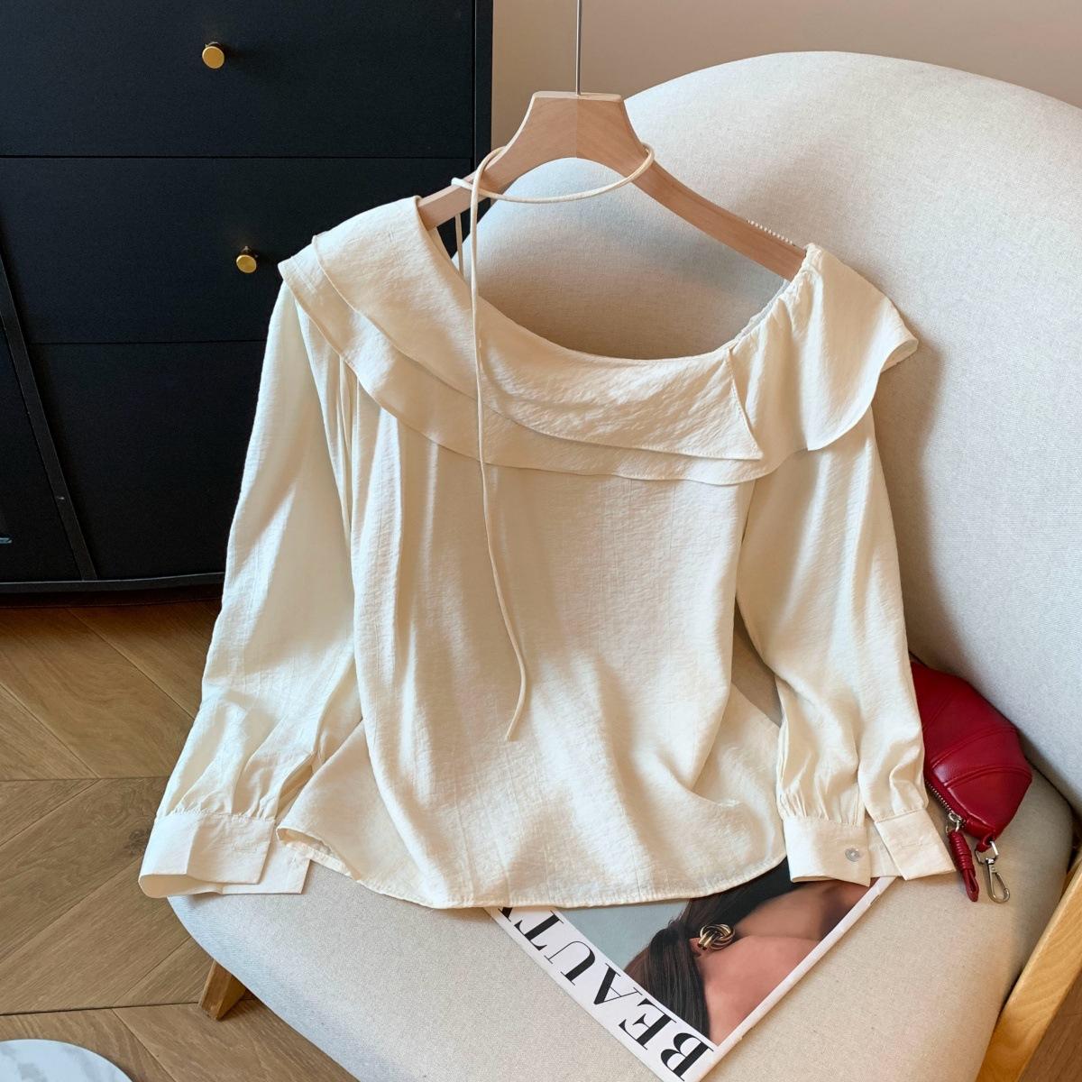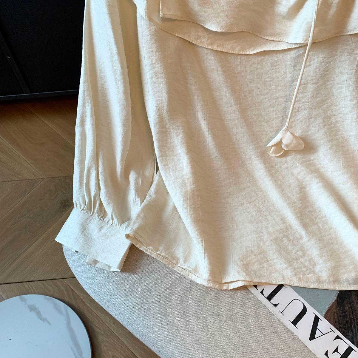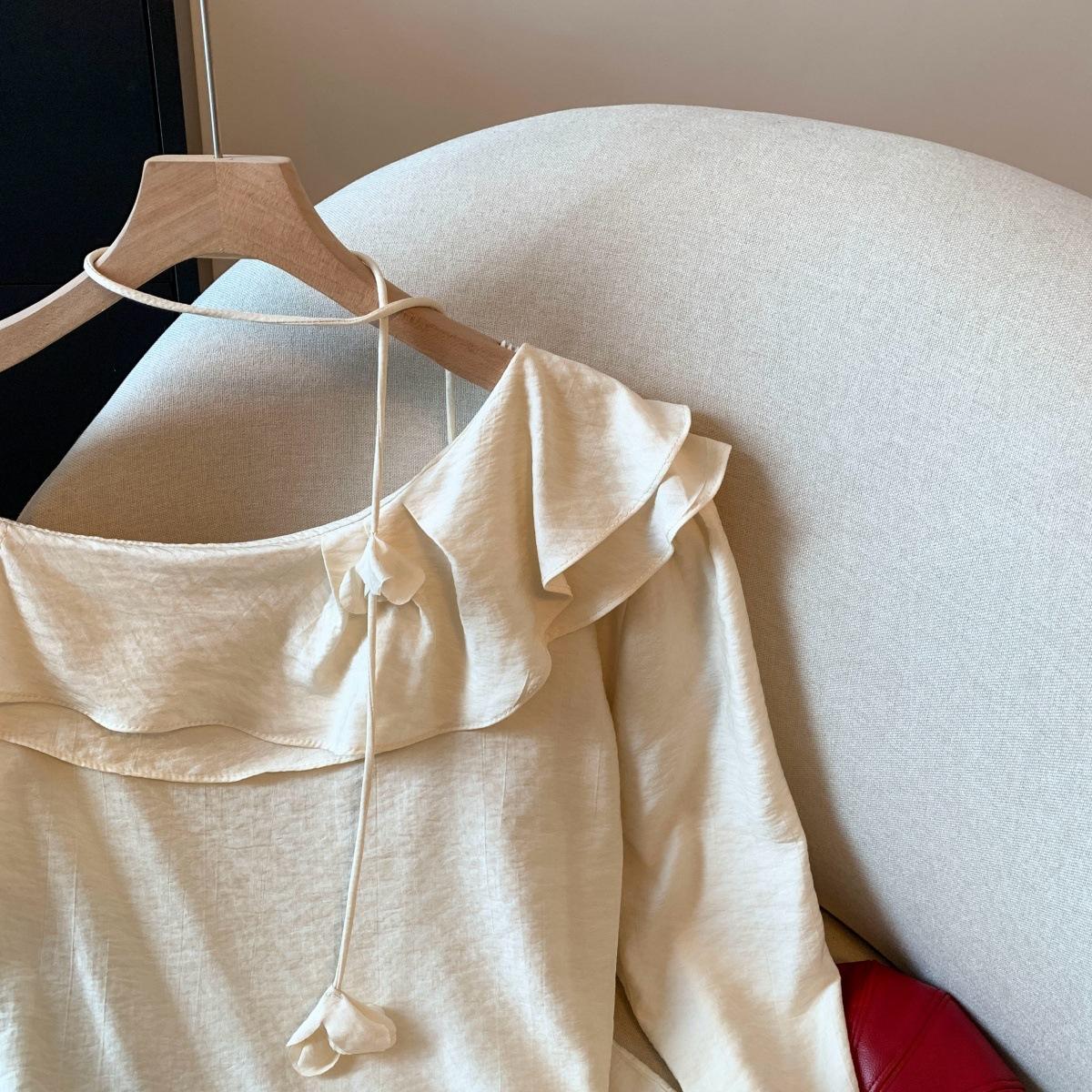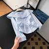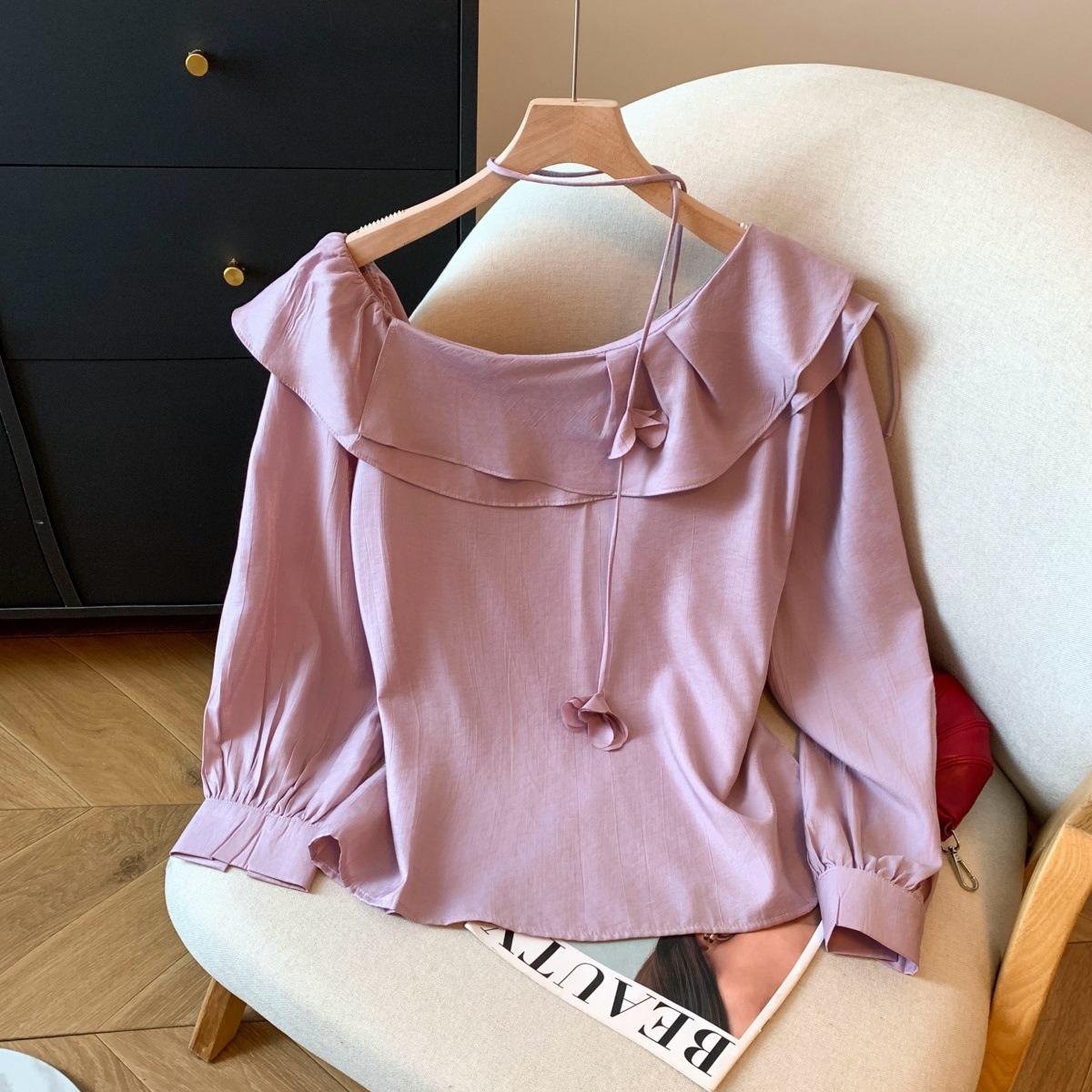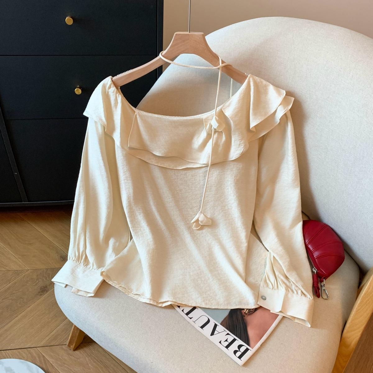 Foto real 2025 principios de otoño nuevo diseño francés camisa de manga larga con volantes y flores para mujer camisa pequeña top holgado