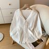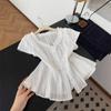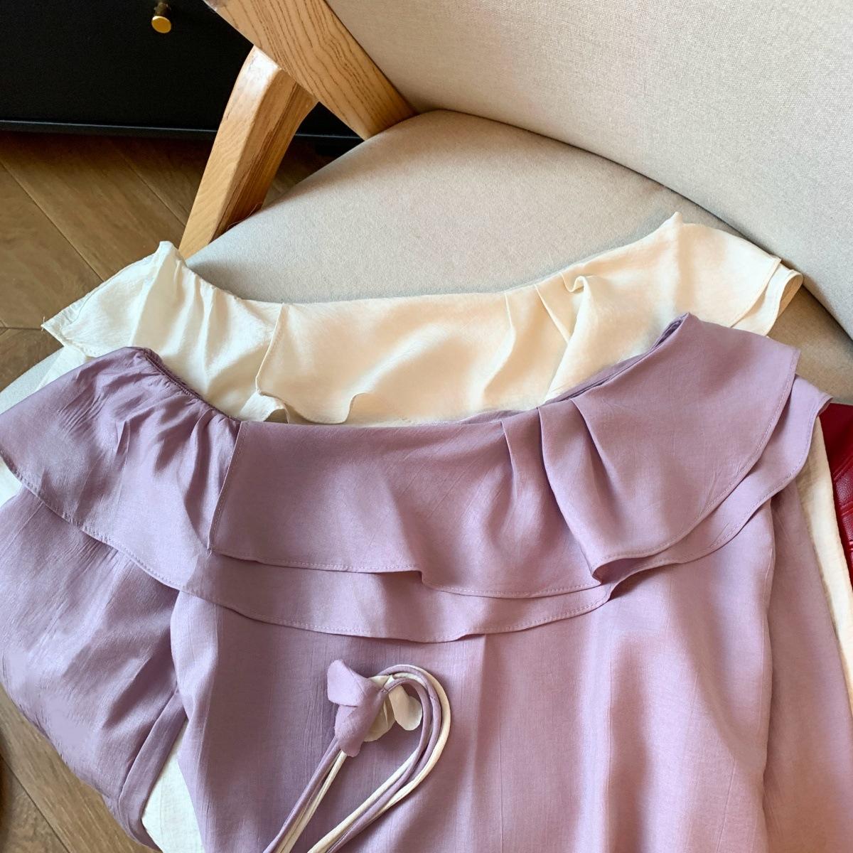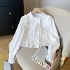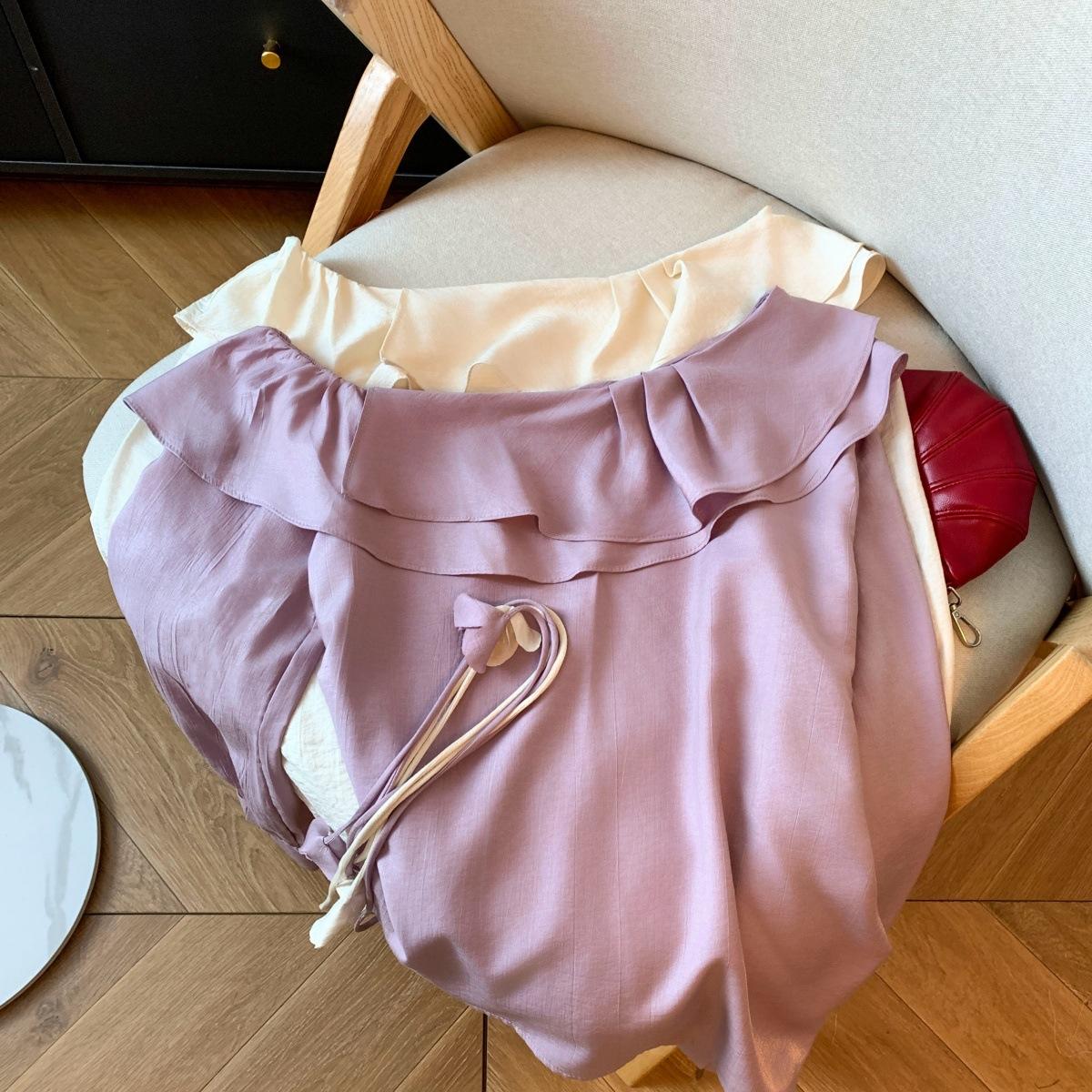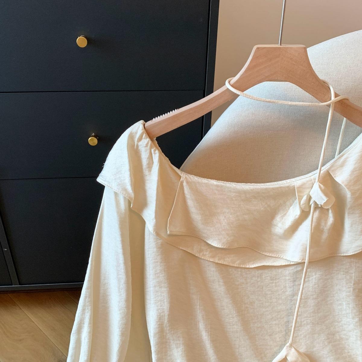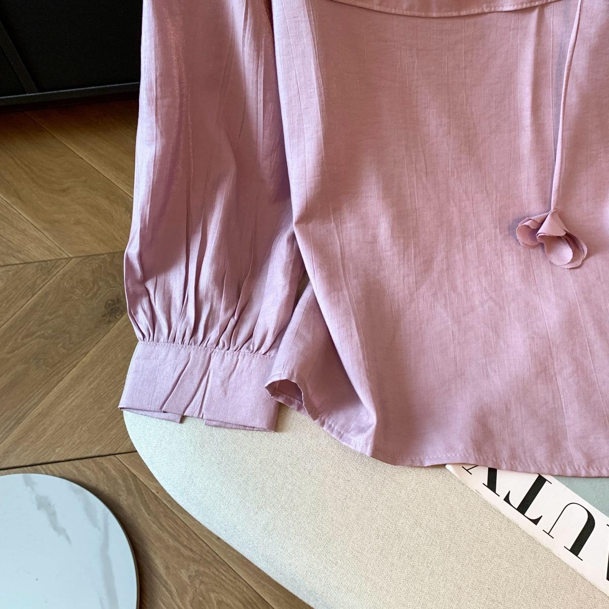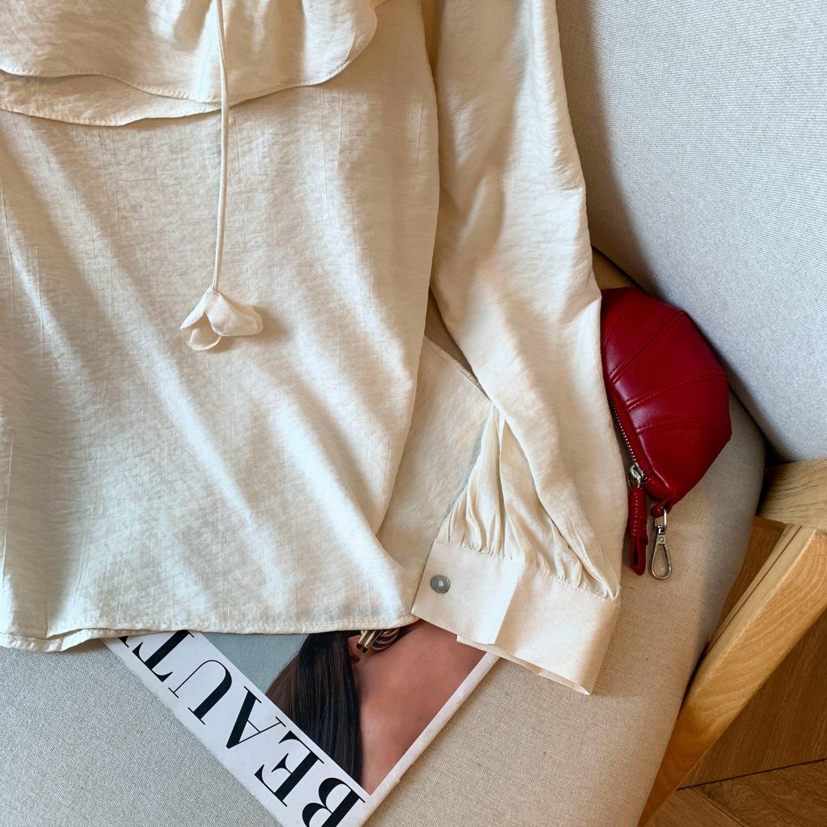 Foto real 2025 principios de otoño nuevo diseño francés camisa de manga larga con volantes y flores para mujer camisa pequeña top holgado