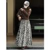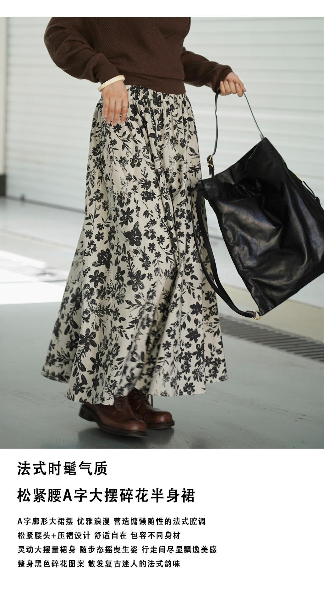 Nueva falda larga acampanada con estampado floral de temperamento francés a la moda de principios de otoño para mujer