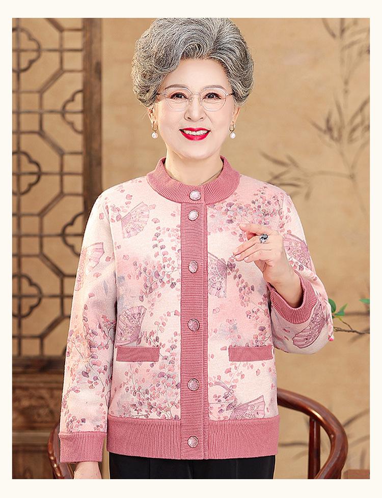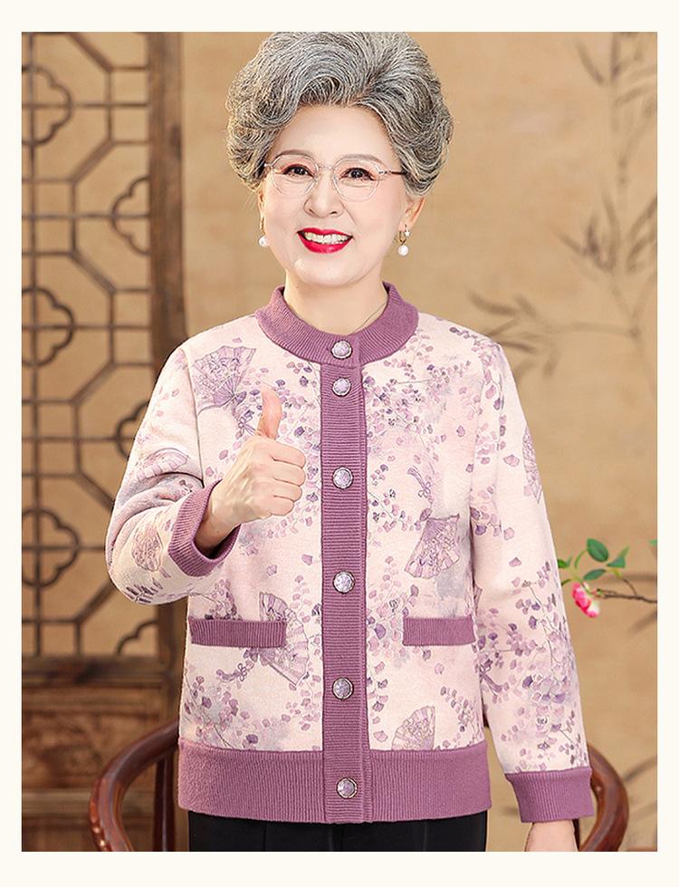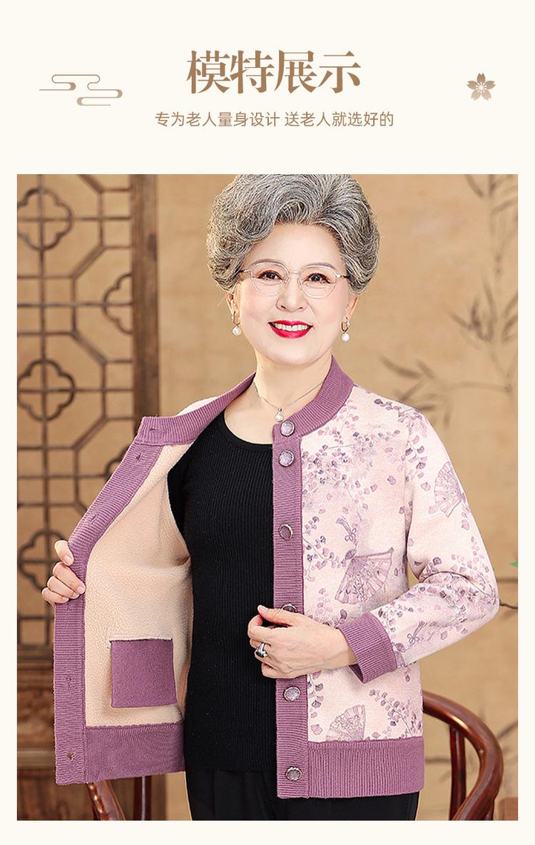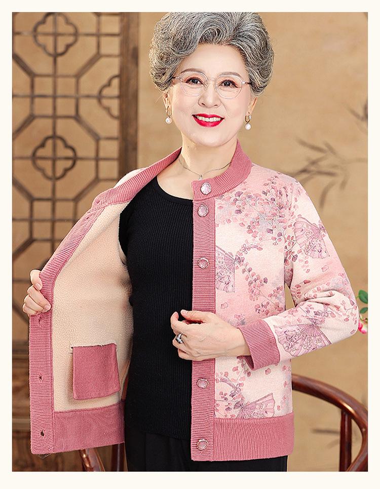 Suéter cárdigan de mediana edad y para ancianos, ropa de invierno para abuela, top cálido grueso con terciopelo, ropa exterior de otoño e invierno para mujer