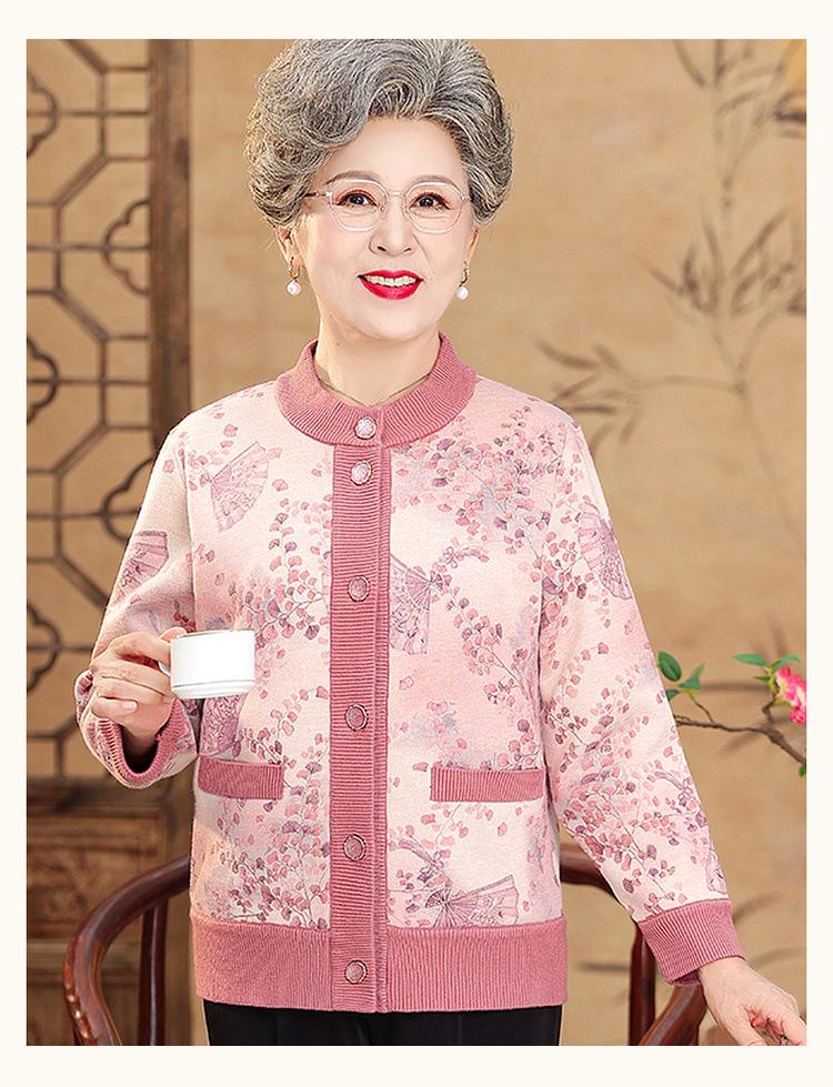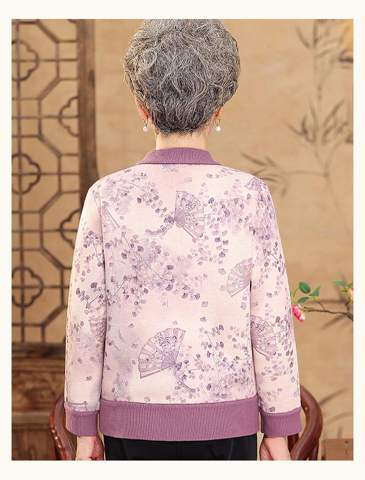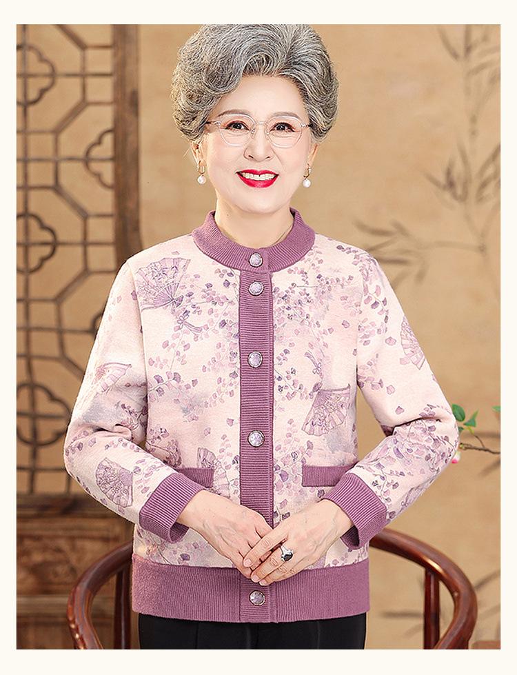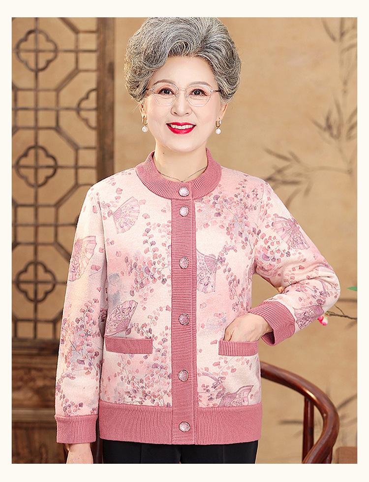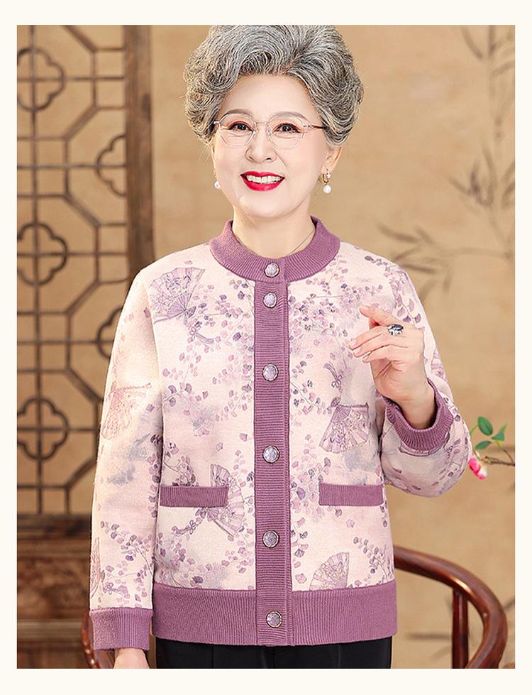 Suéter cárdigan de mediana edad y para ancianos, ropa de invierno para abuela, top cálido grueso con terciopelo, ropa exterior de otoño e invierno para mujer