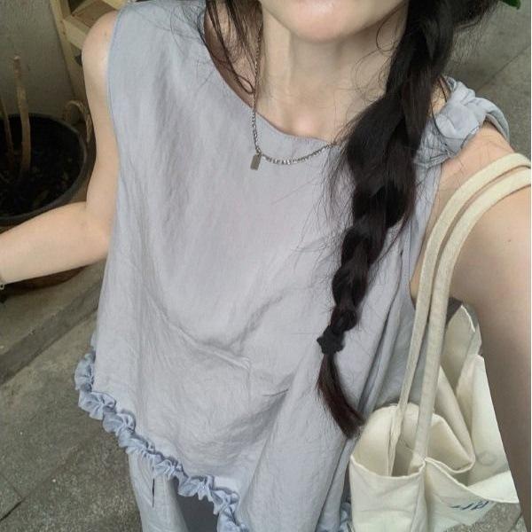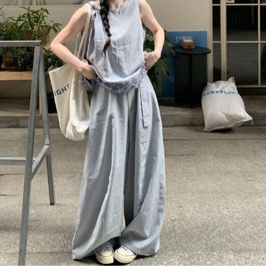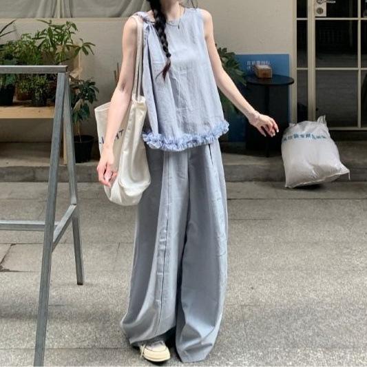 Popular Traje Casual Cómodo para Mujer Verano 2025 Nuevo Top Chaleco sin Mangas Pantalones de Pierna Ancha Conjunto de Dos Piezas Moderno