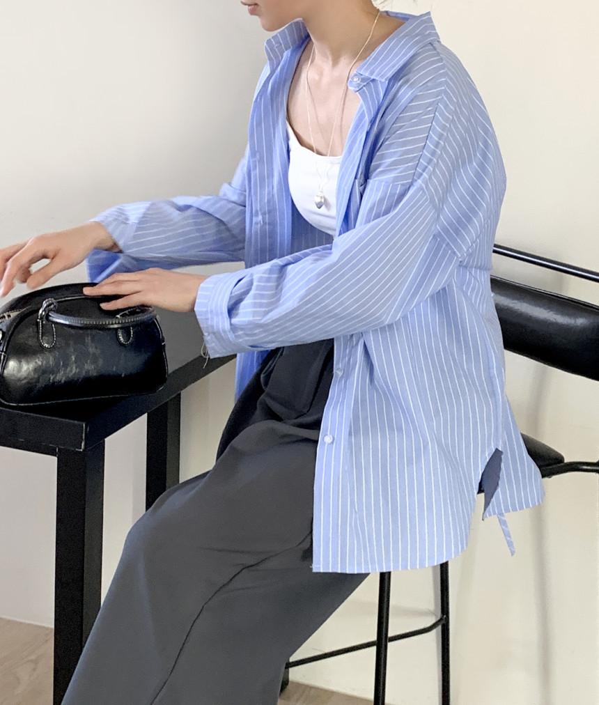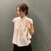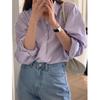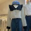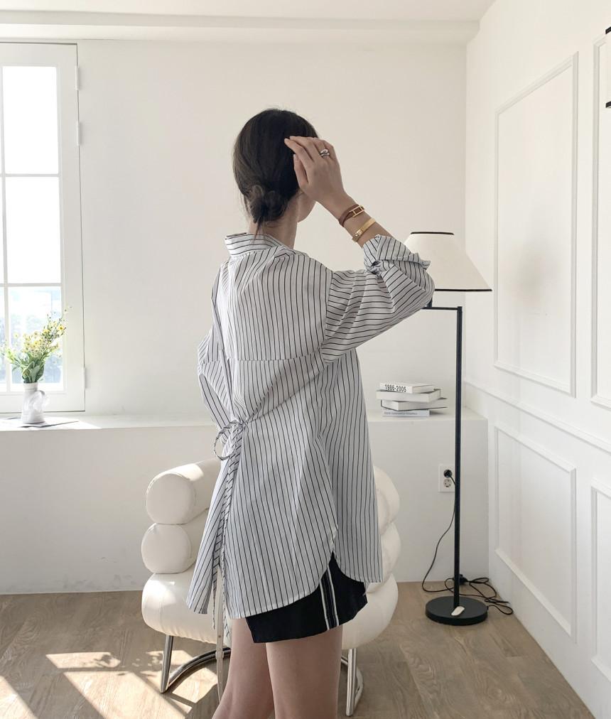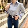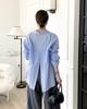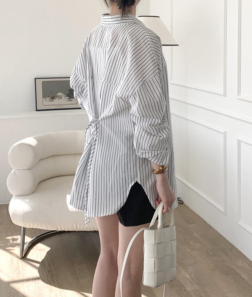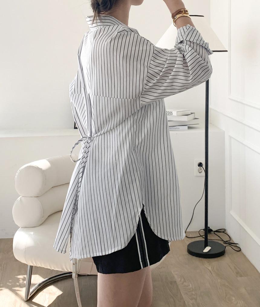 Chic coreano 2025 nuevo otoño diseño francés camisa rayada con abertura trasera y lazo ropa de mujer